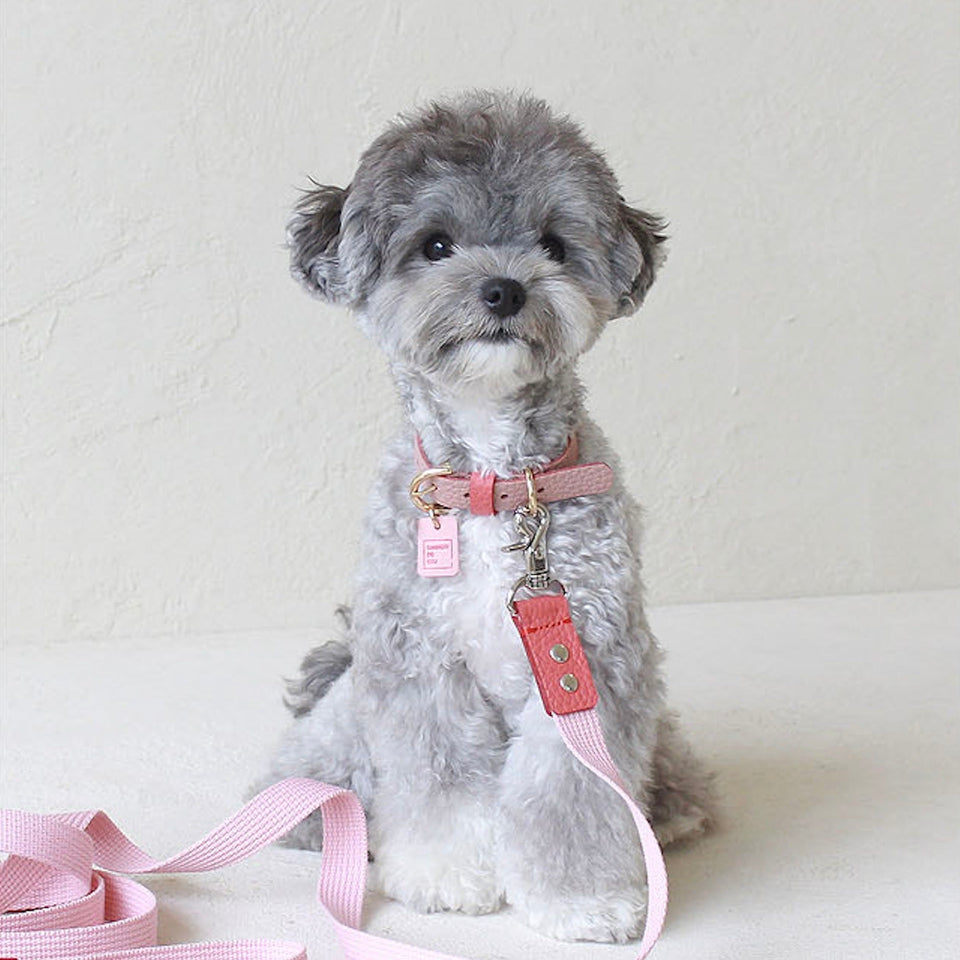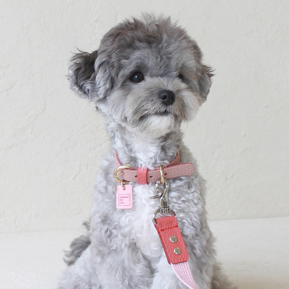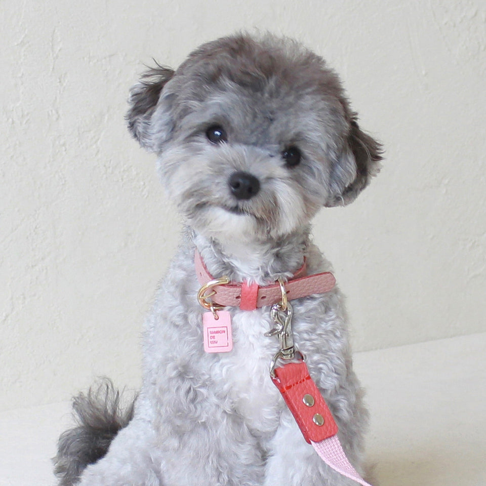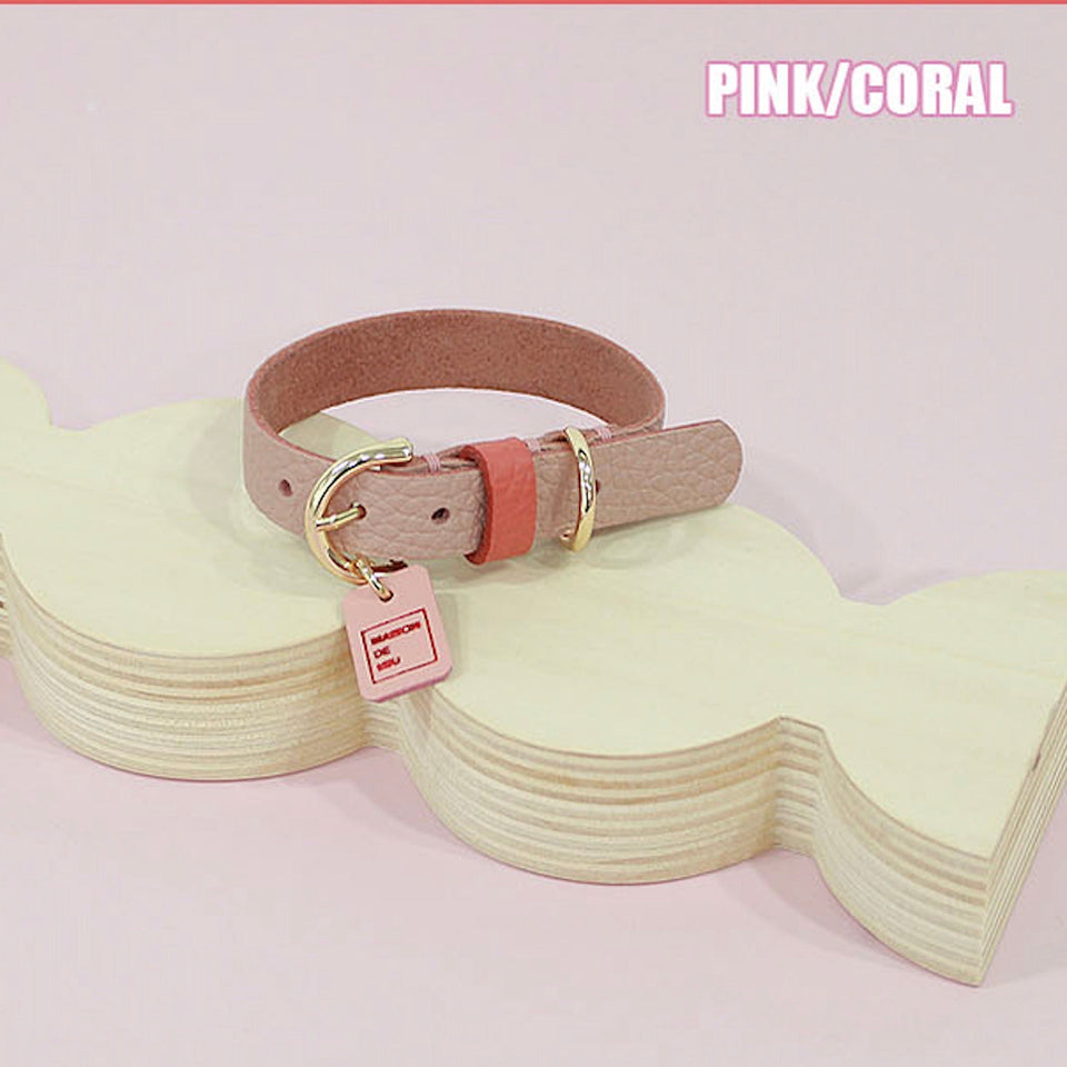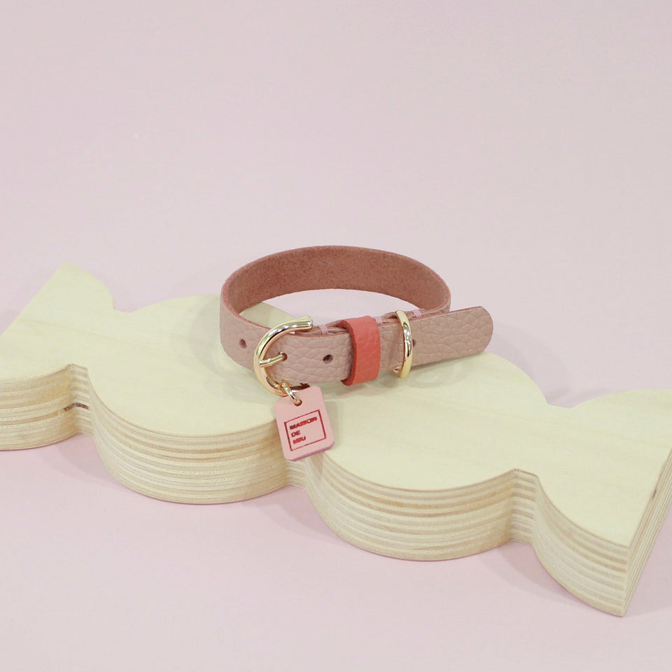 牛革100%くすみピンクベースの首輪にコーラルのループがワンポイントでアクセントになった高級感たっぷりのカラーセンス抜群なmaison de miuらしい首輪♡