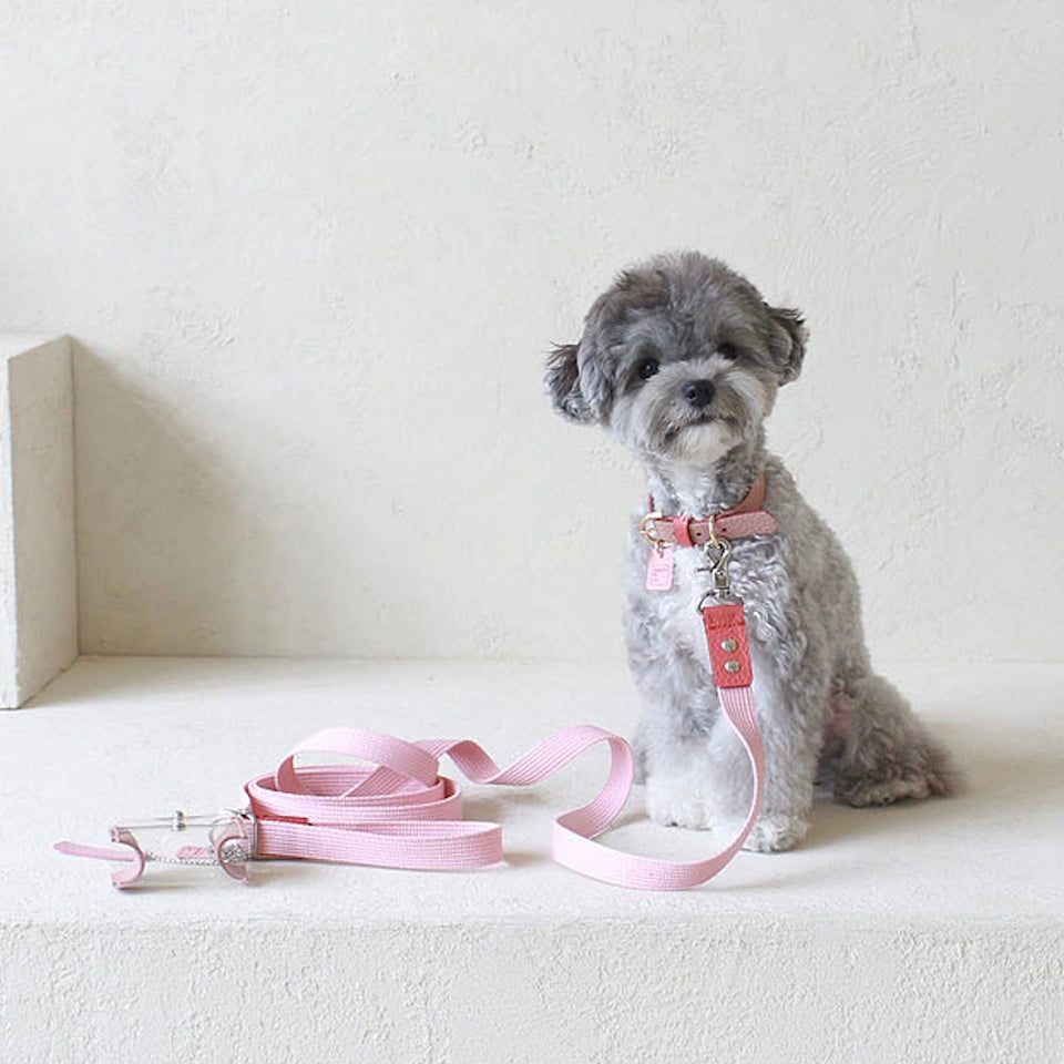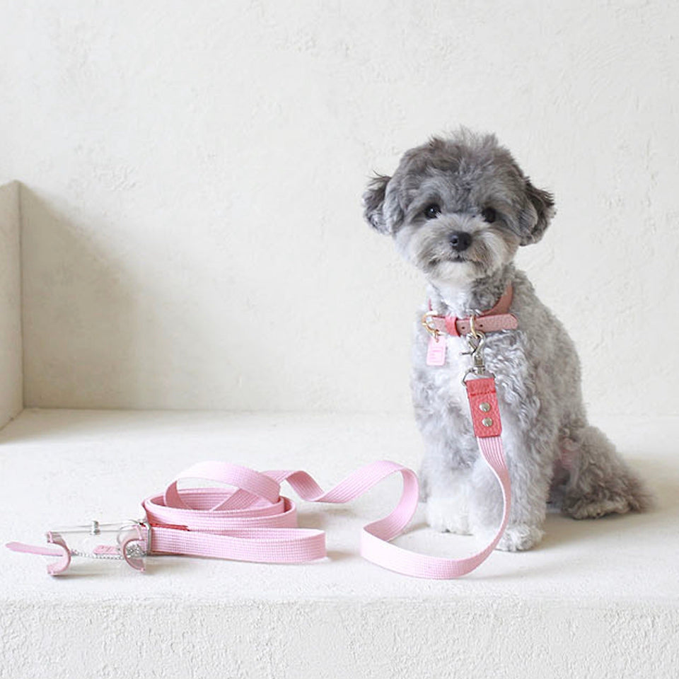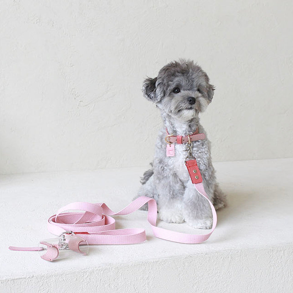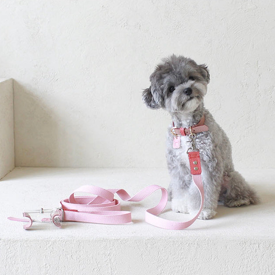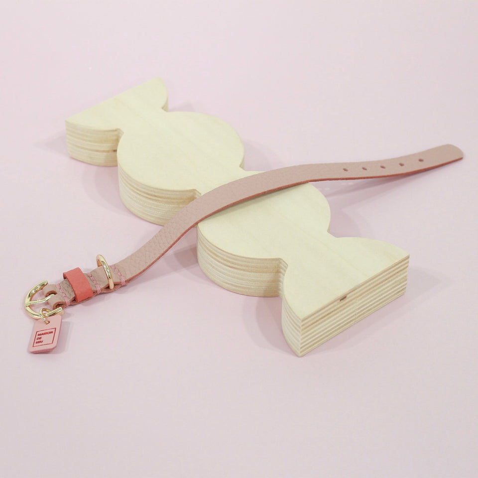 牛革100%くすみピンクベースの首輪にコーラルのループがワンポイントでアクセントになった高級感たっぷりのカラーセンス抜群なmaison de miuらしい首輪♡