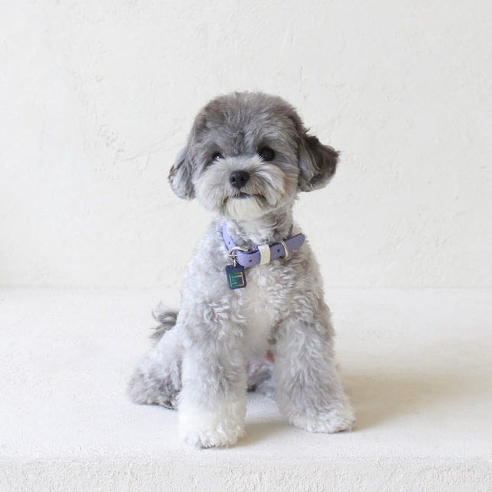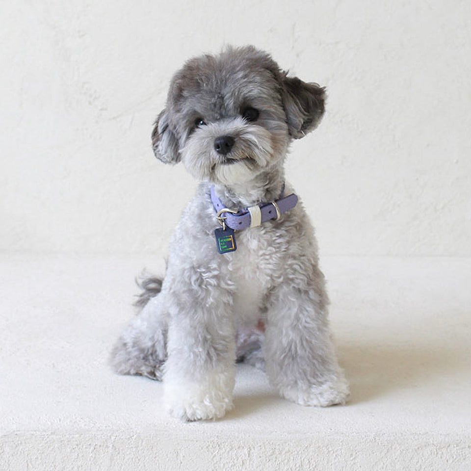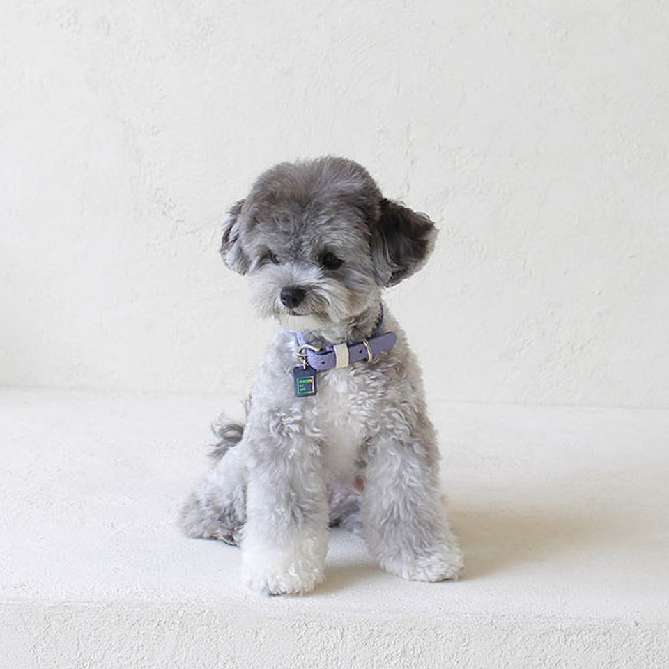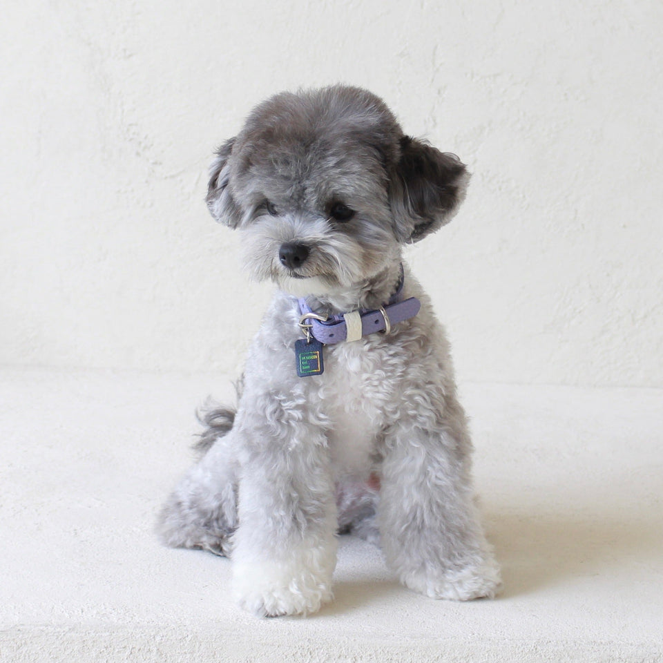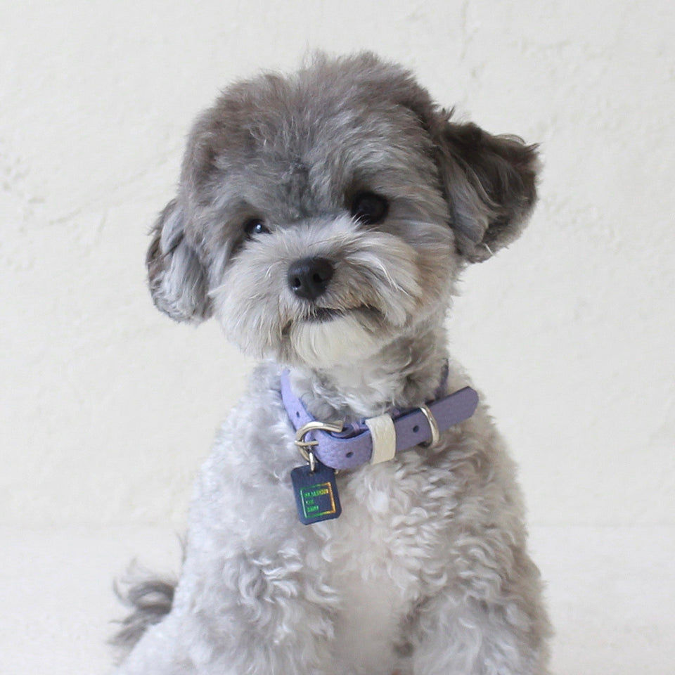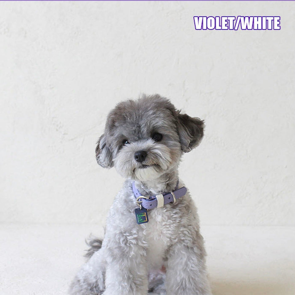 牛革100%バイオレットベースの首輪にアイボリーのループがワンポイントでアクセントになった高級感たっぷりのカラーセンス抜群なmaison de miuらしい首輪♡