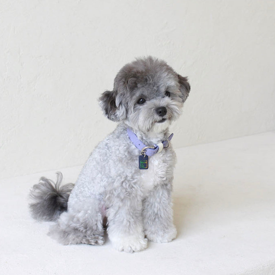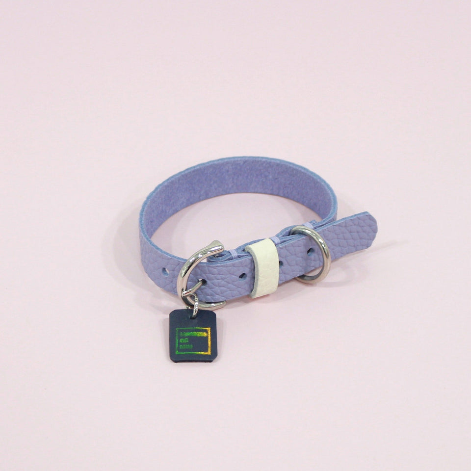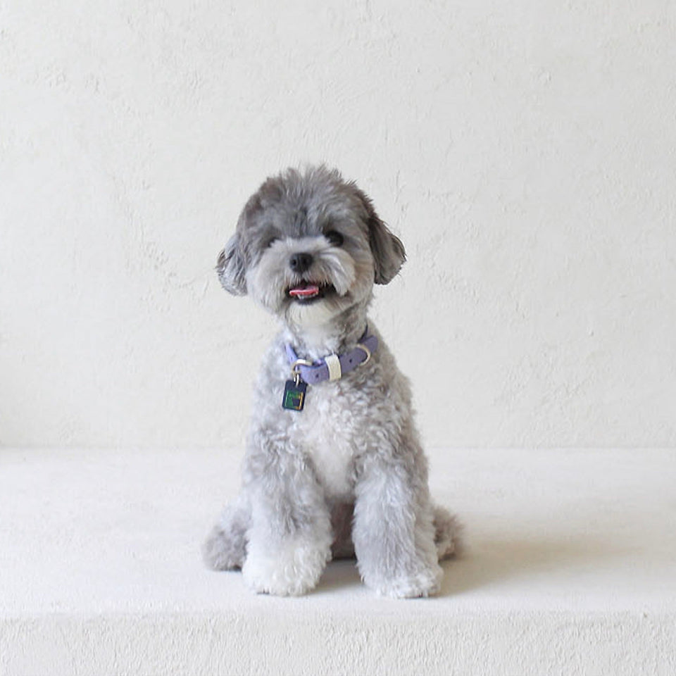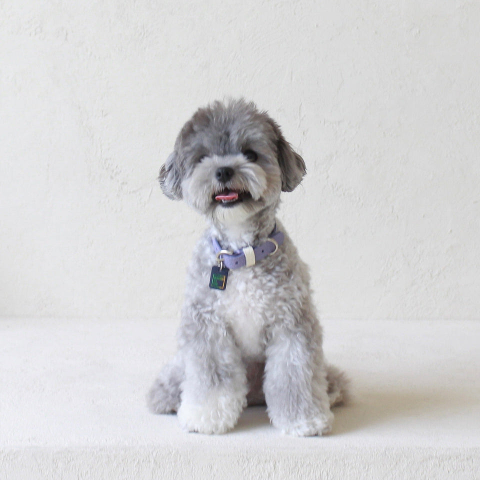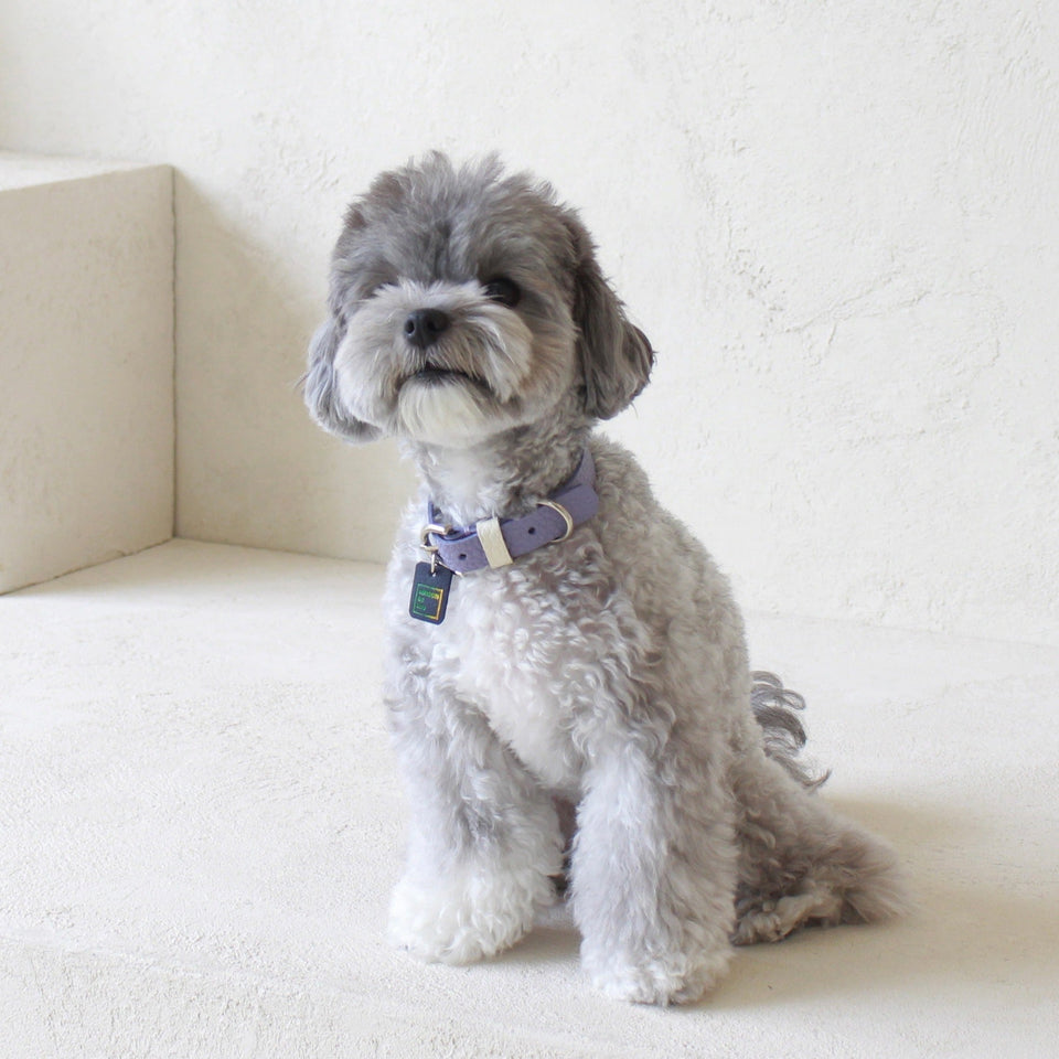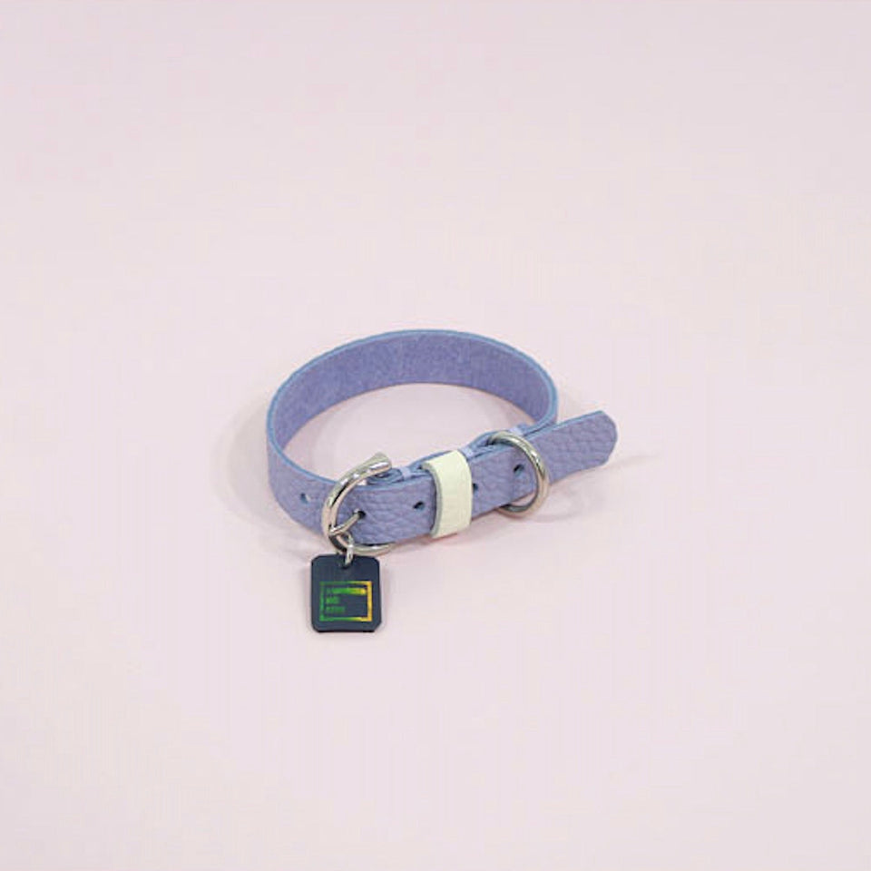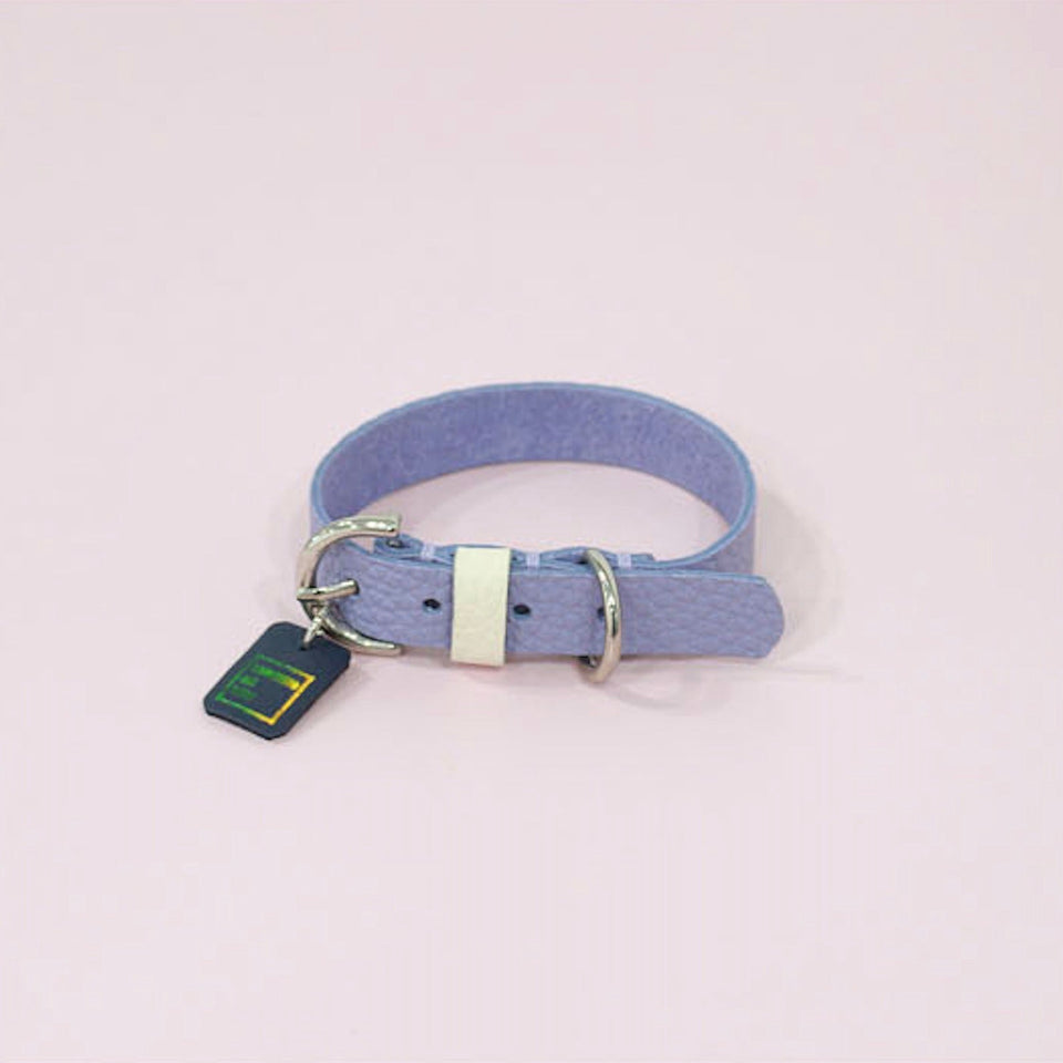 牛革100%バイオレットベースの首輪にアイボリーのループがワンポイントでアクセントになった高級感たっぷりのカラーセンス抜群なmaison de miuらしい首輪♡