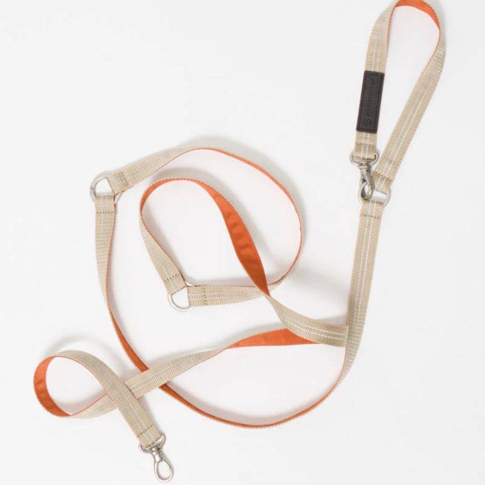 『夜の散歩も安心!リフレクトテープ付きで、様々な形にトランスフォームできる便利なリード』