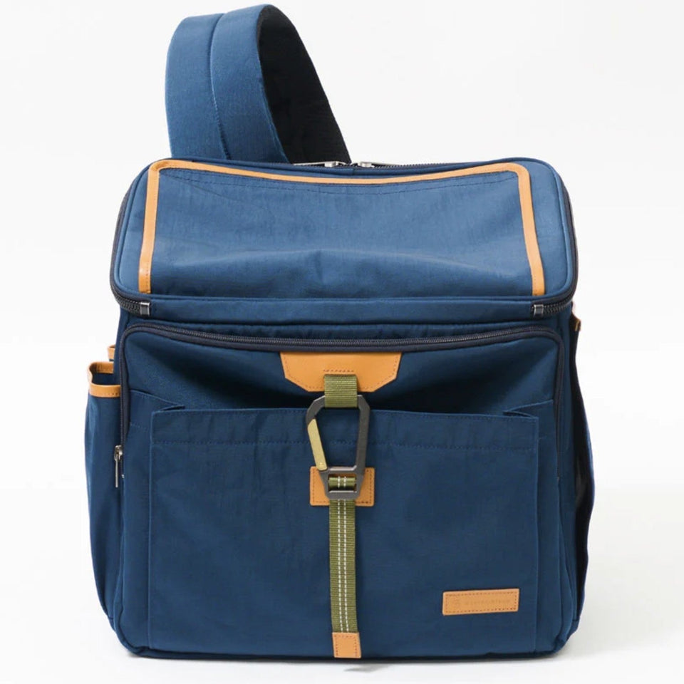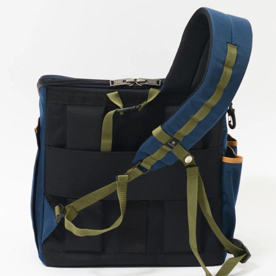 リュックとは違いワンショルダー仕様になっており、後ろに背負って使用し、電車等で椅子に座る際にバッグを傾けることなく前に背負い直すことが可能です。