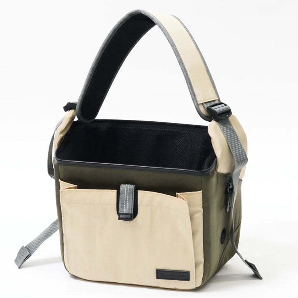 両サイドにアジャスターがついているので、オーナー様の身長やペットを入れた時のバランスに合わせて持ちやすいように長さを細かく調整ができ、体型の異なる方と兼用される際や厚手のアウターの時期にも問題なくご使用頂けます。