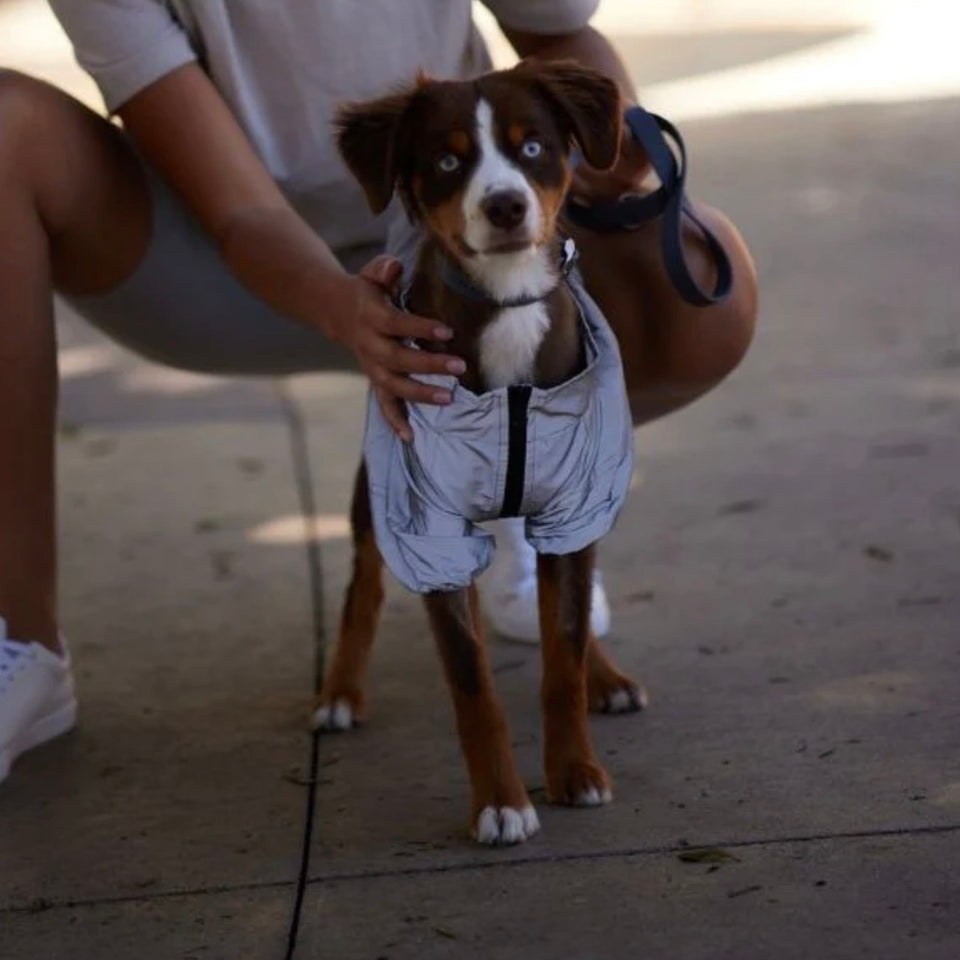 デザイン面でもたくさんのポイントがあり、超軽量、防水コーティング、お腹の下の防水ジッパー、究極の快適さのためのメッシュ裏地、ほとんどの犬のサイズに対応できるドローストリングの裾、袖の裾の周りの伸縮性、リードを通す用の穴があります!