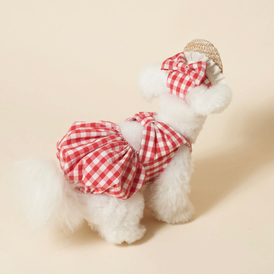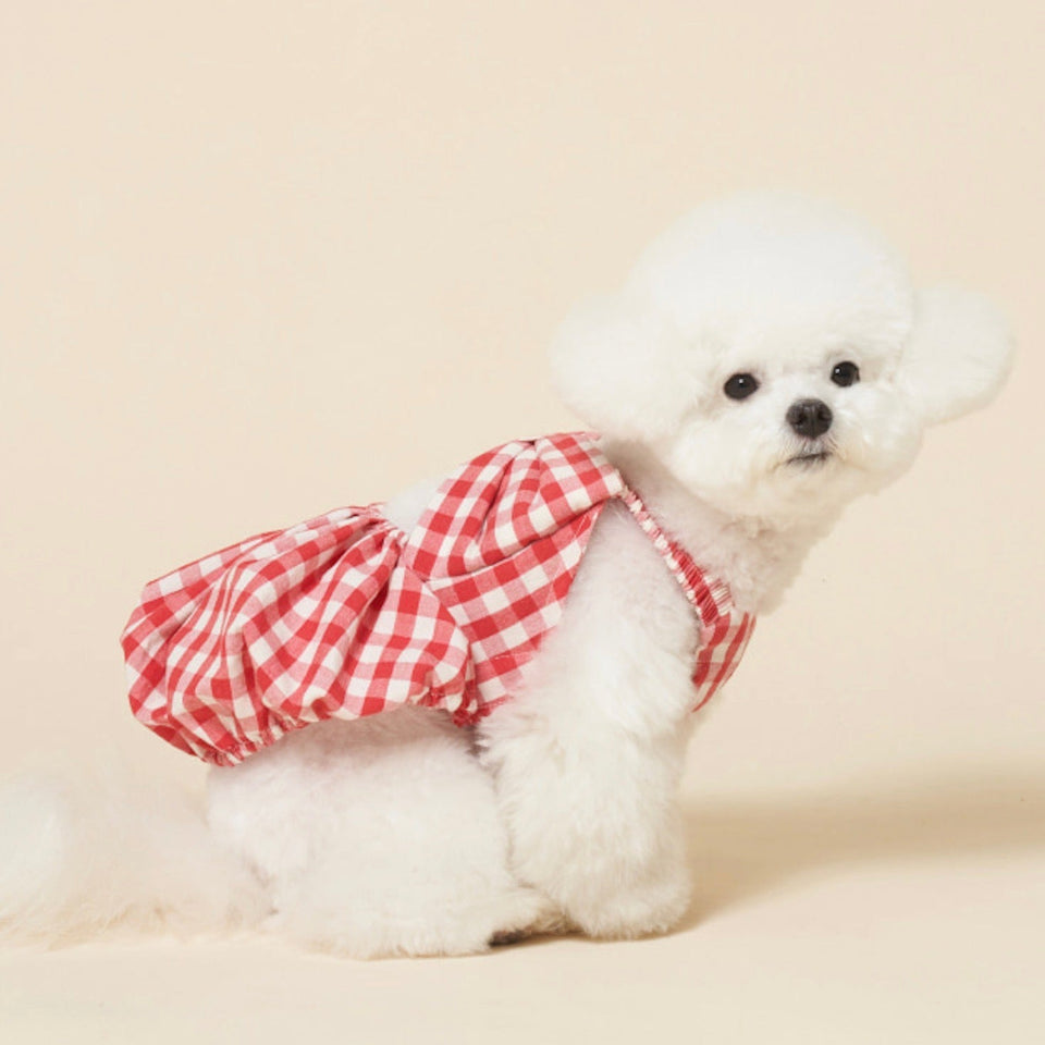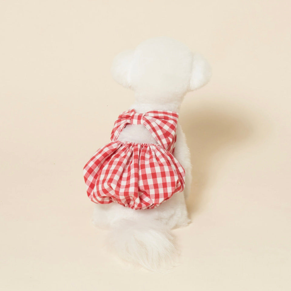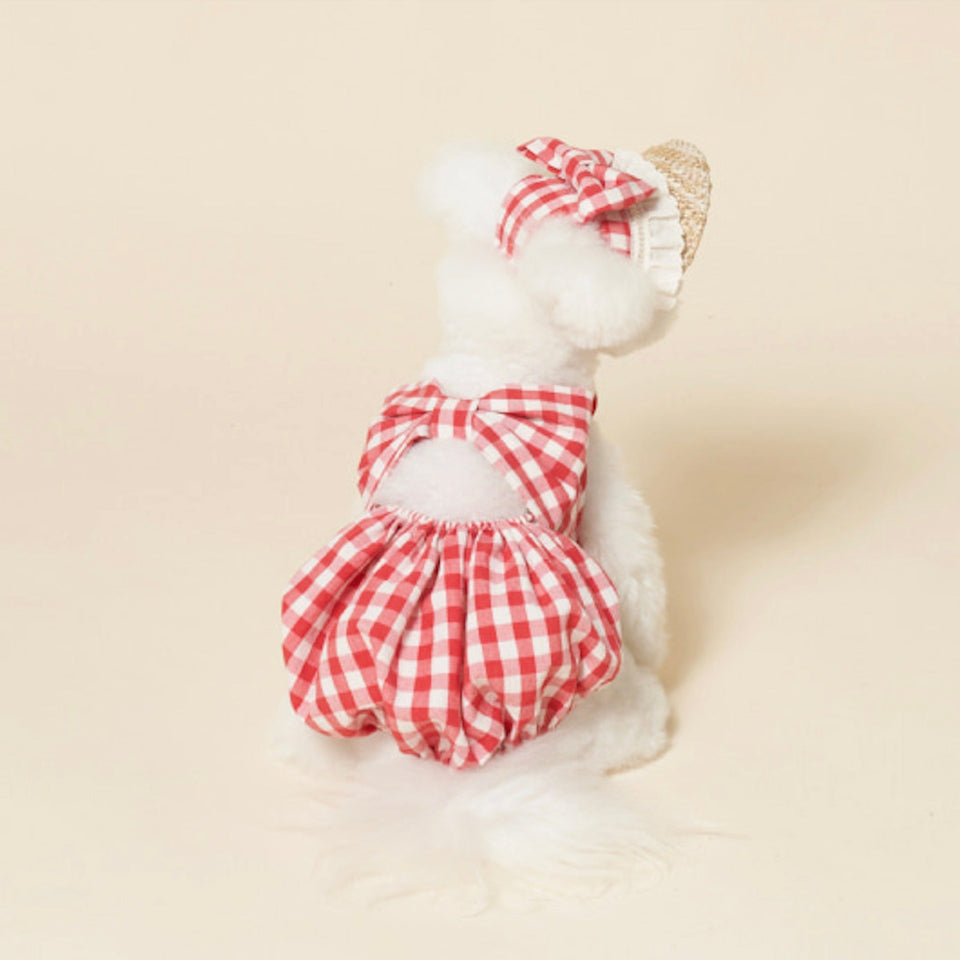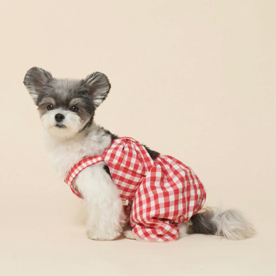 ※予約販売【meaningless】Check ribbon pumpkin overalls(Red)