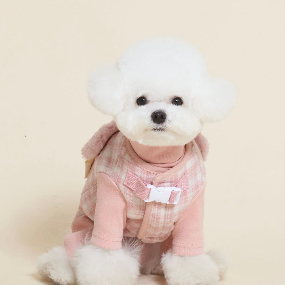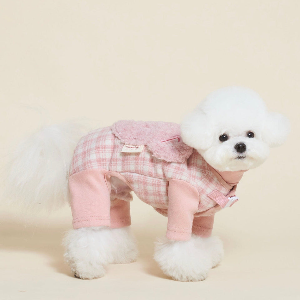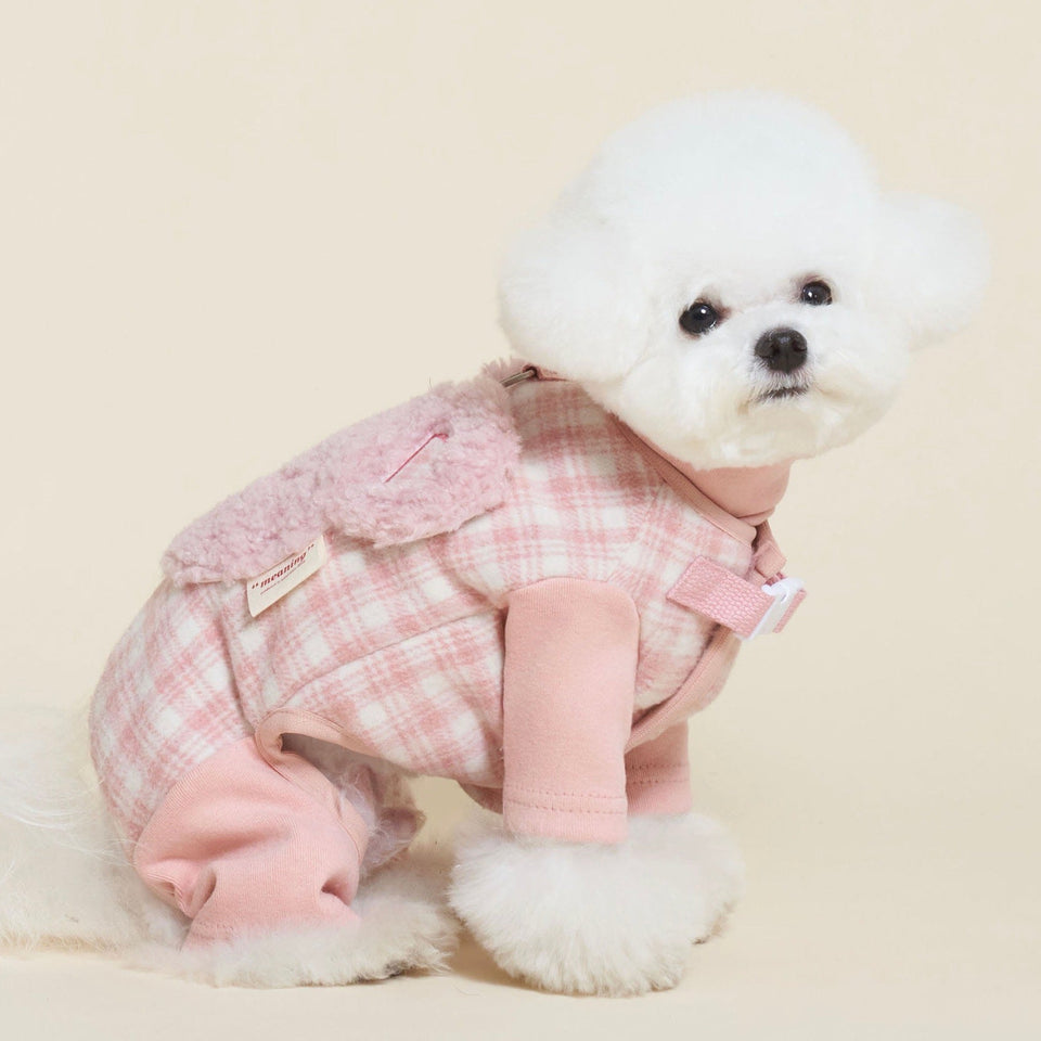 『GOSOMIの立体的な顔が可愛く、保温性も抜群の機能性も兼ね備えたチェックオールインワン』