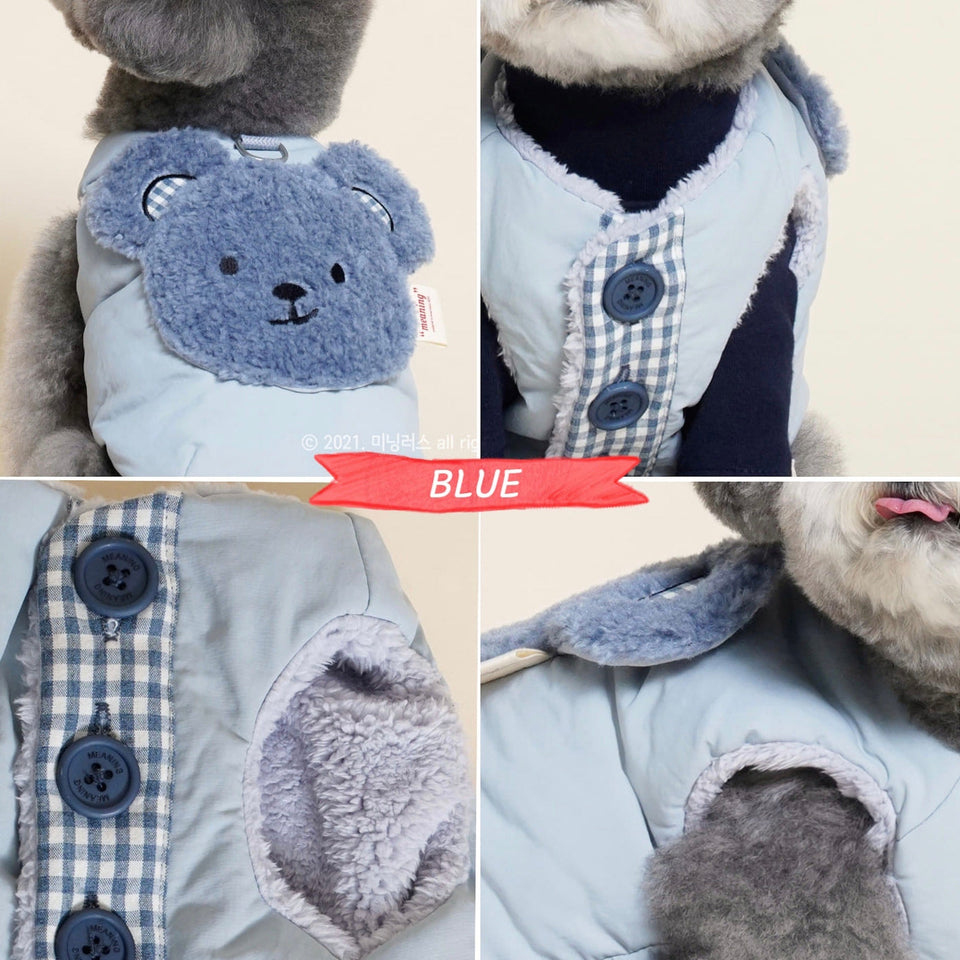 耳や前たて部分のチェック使いがさりげなく、よりくまちゃんの可愛さを引き出しているデザインです!