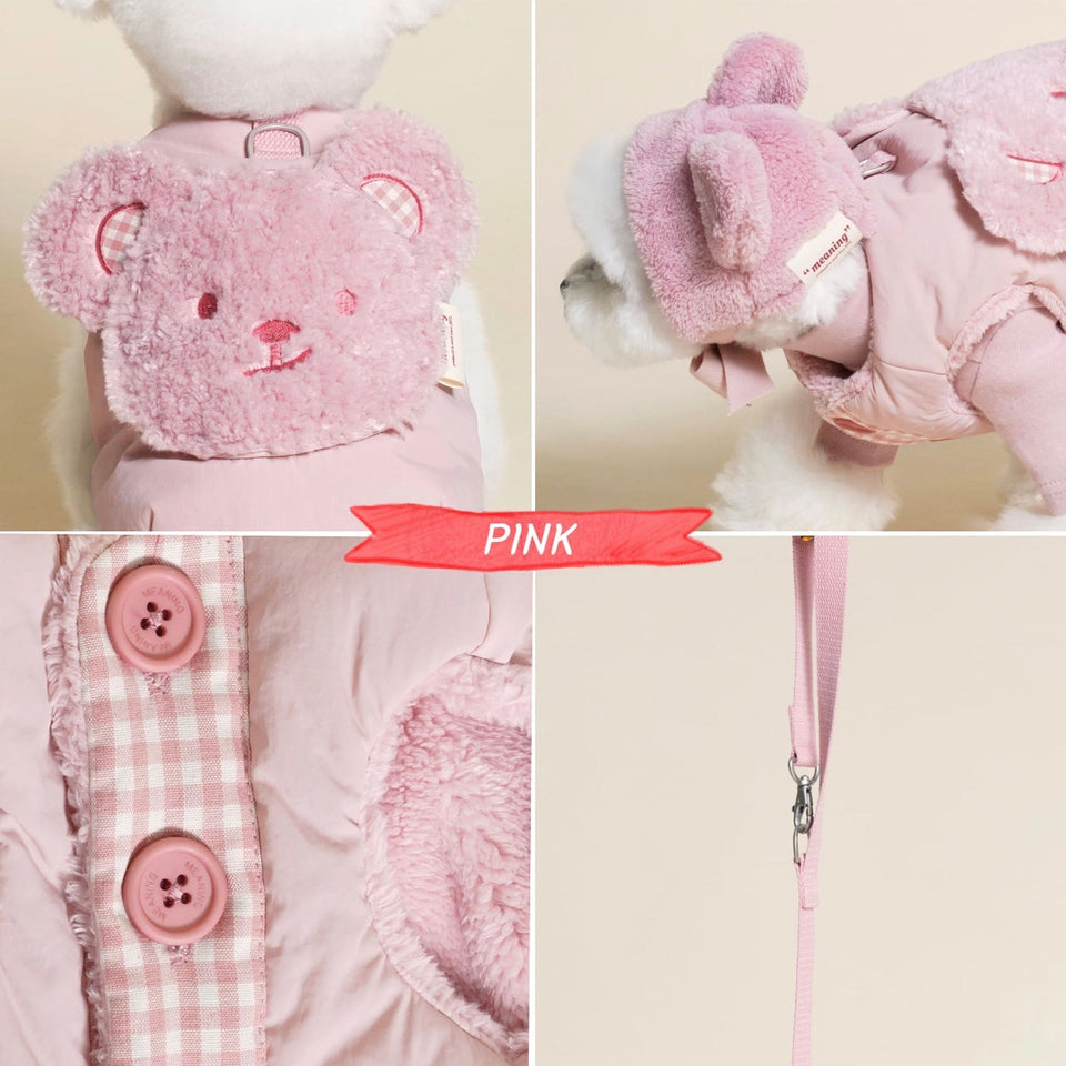 耳や前たて部分のチェック使いがさりげなく、よりくまちゃんの可愛さを引き出しているデザインです!