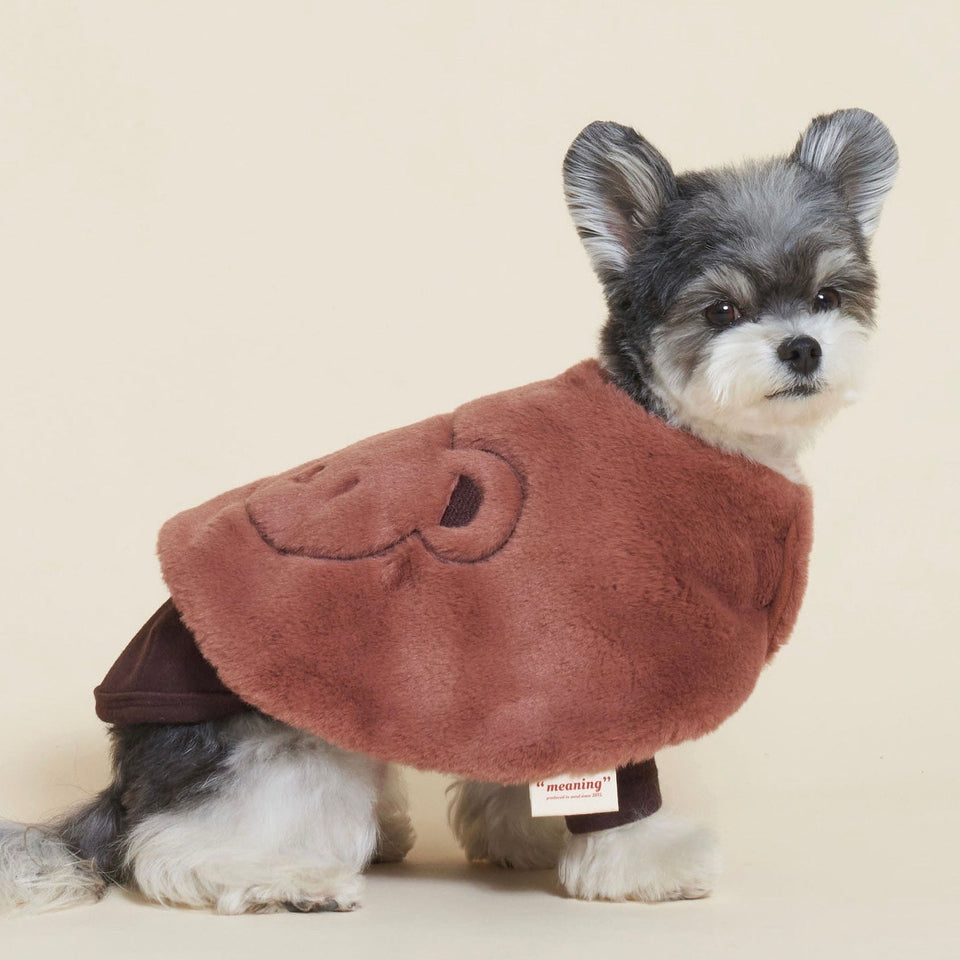 羽織るだけで暖かなマントは大胆にGOSOMIの顔を刺繍したデザインで、素材もボアのふわふわがとっても可愛い♡