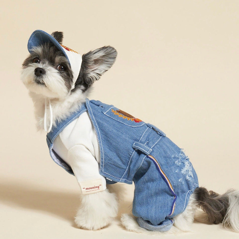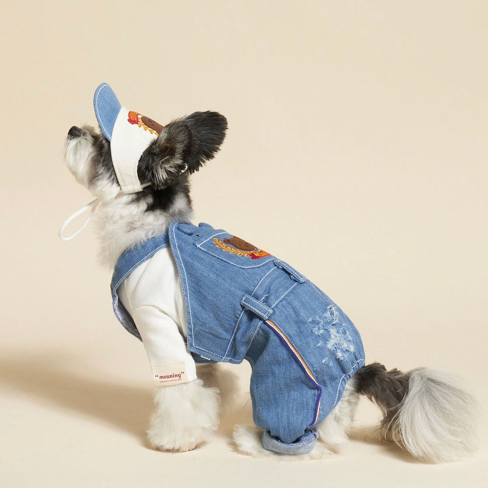 『ダメージ加工など細かな加工ディテールにもこだわり抜いたデニムオーバーオール』