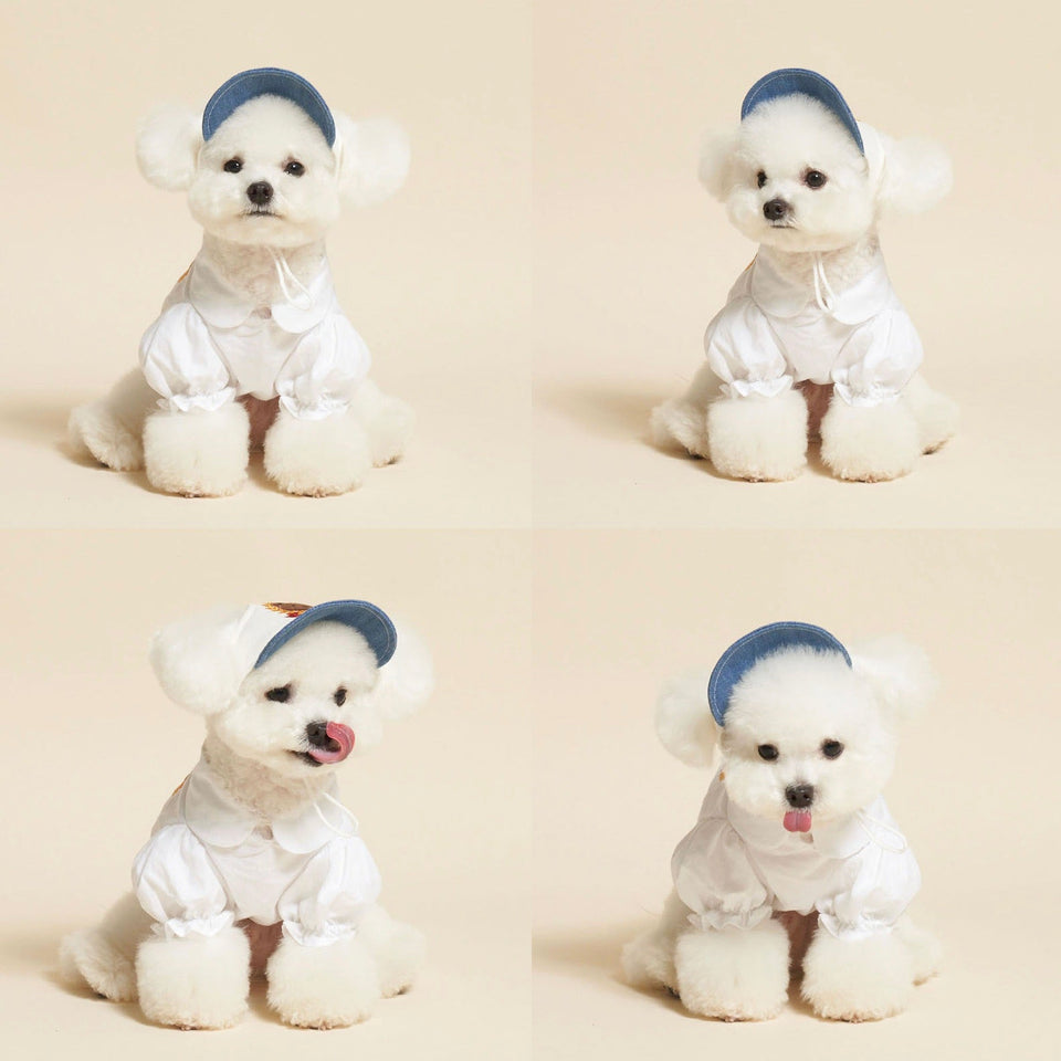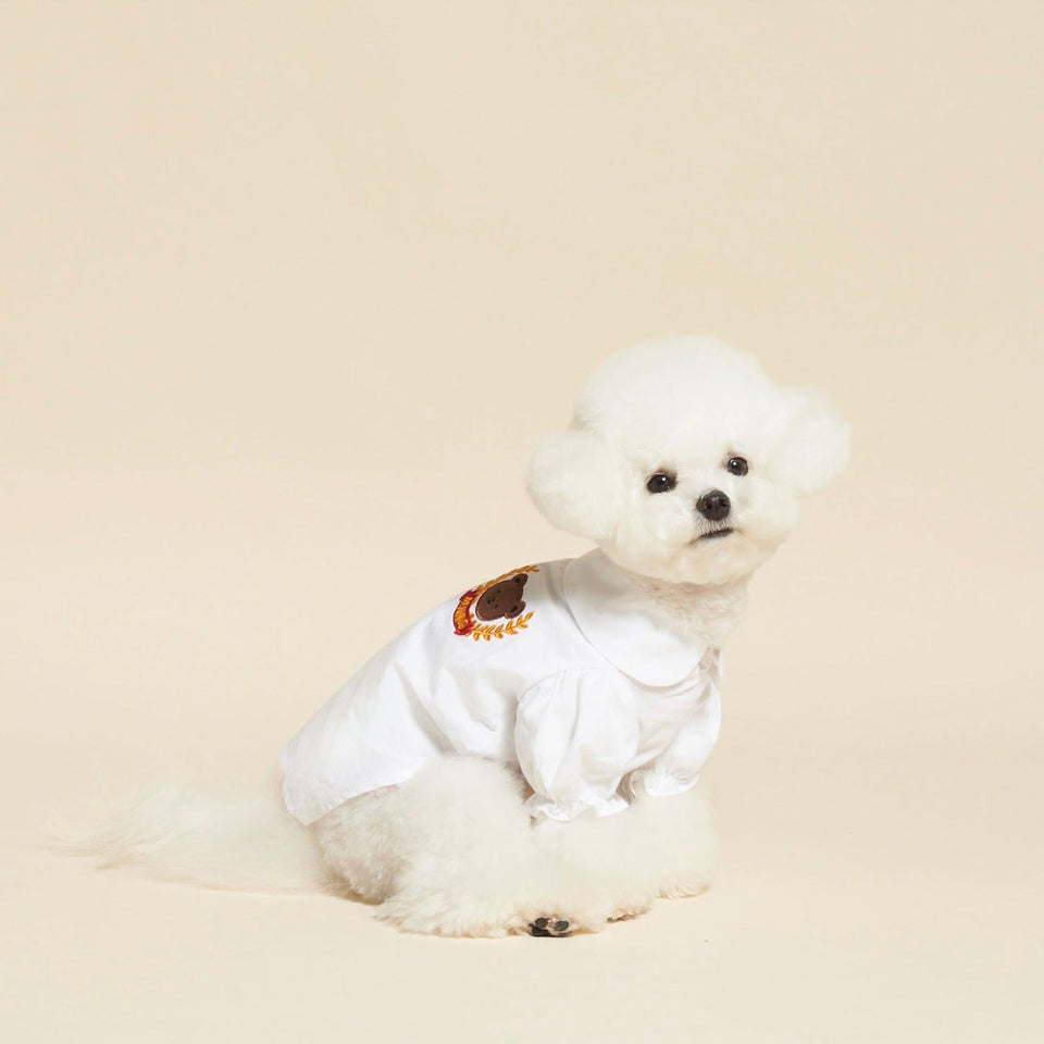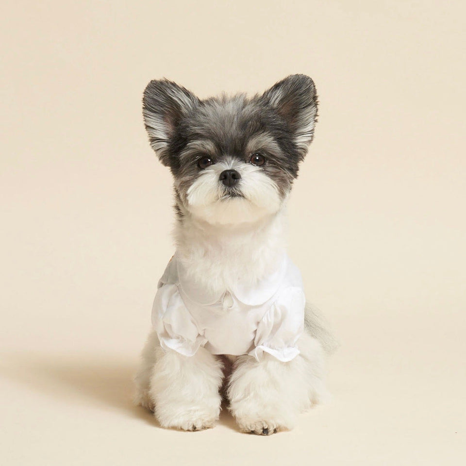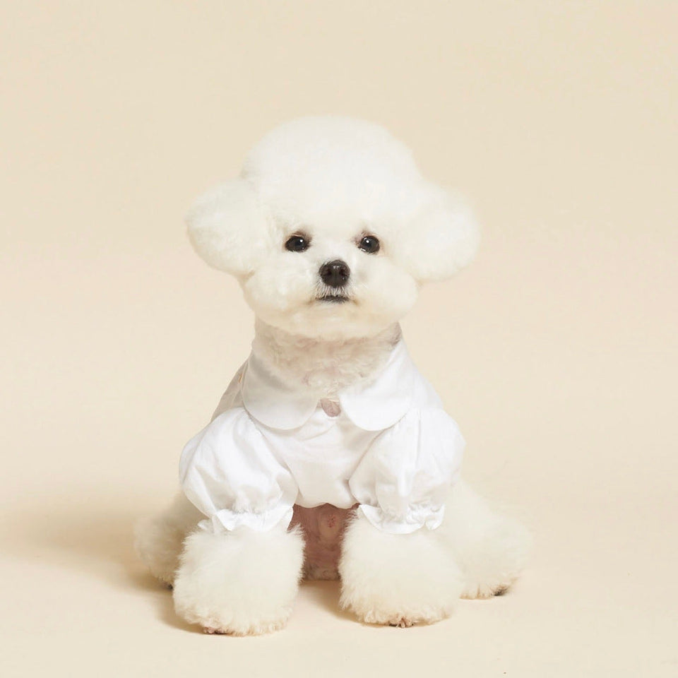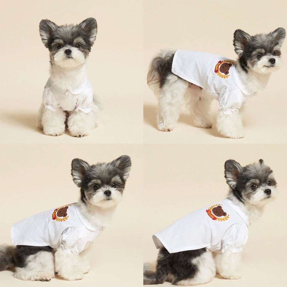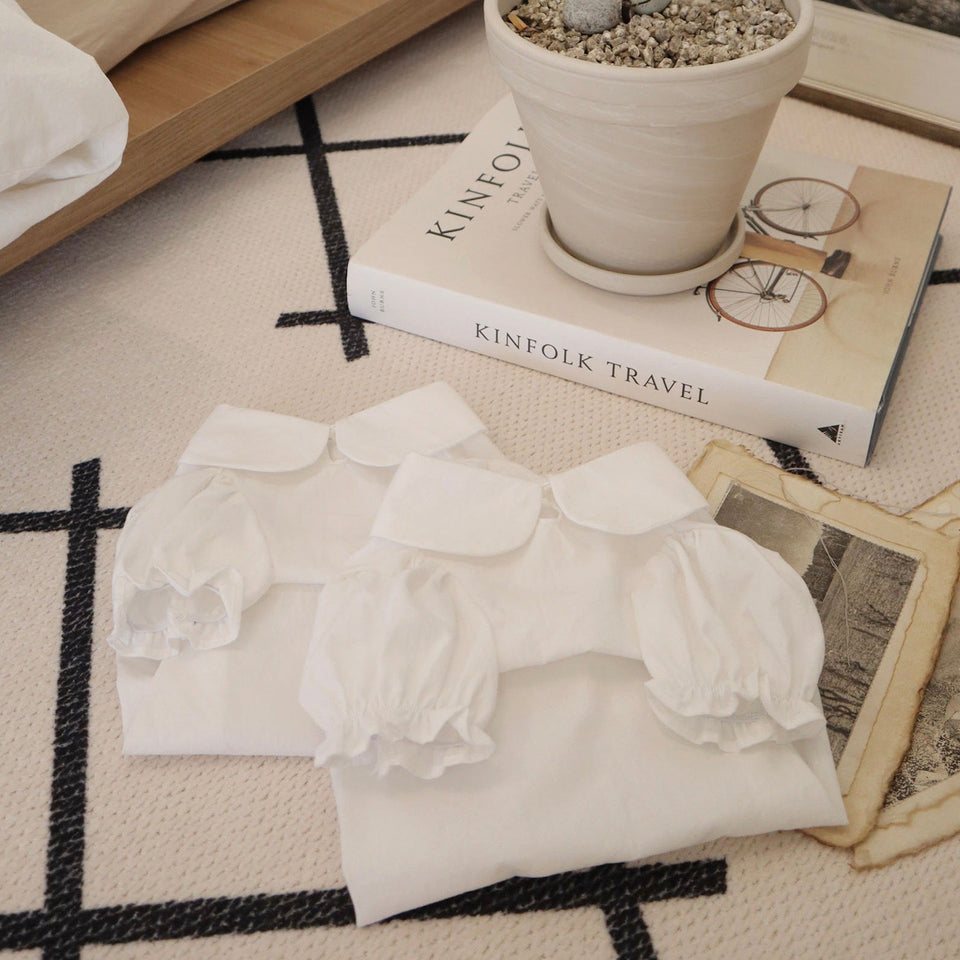 丸襟と首元のボタン、パフ袖がラブリーなスクールルックを演出!