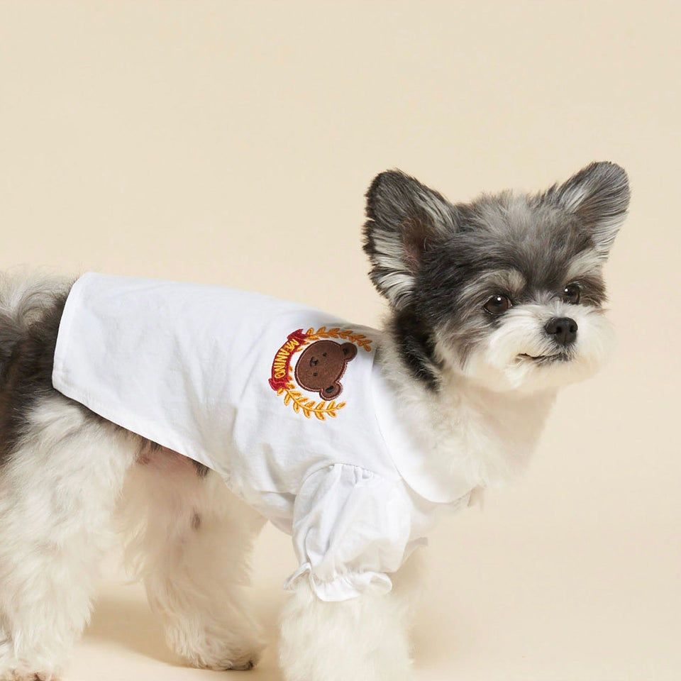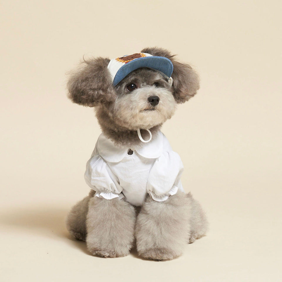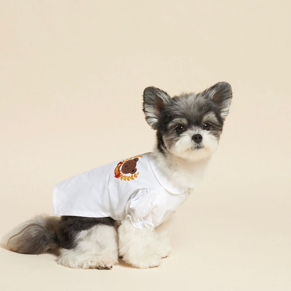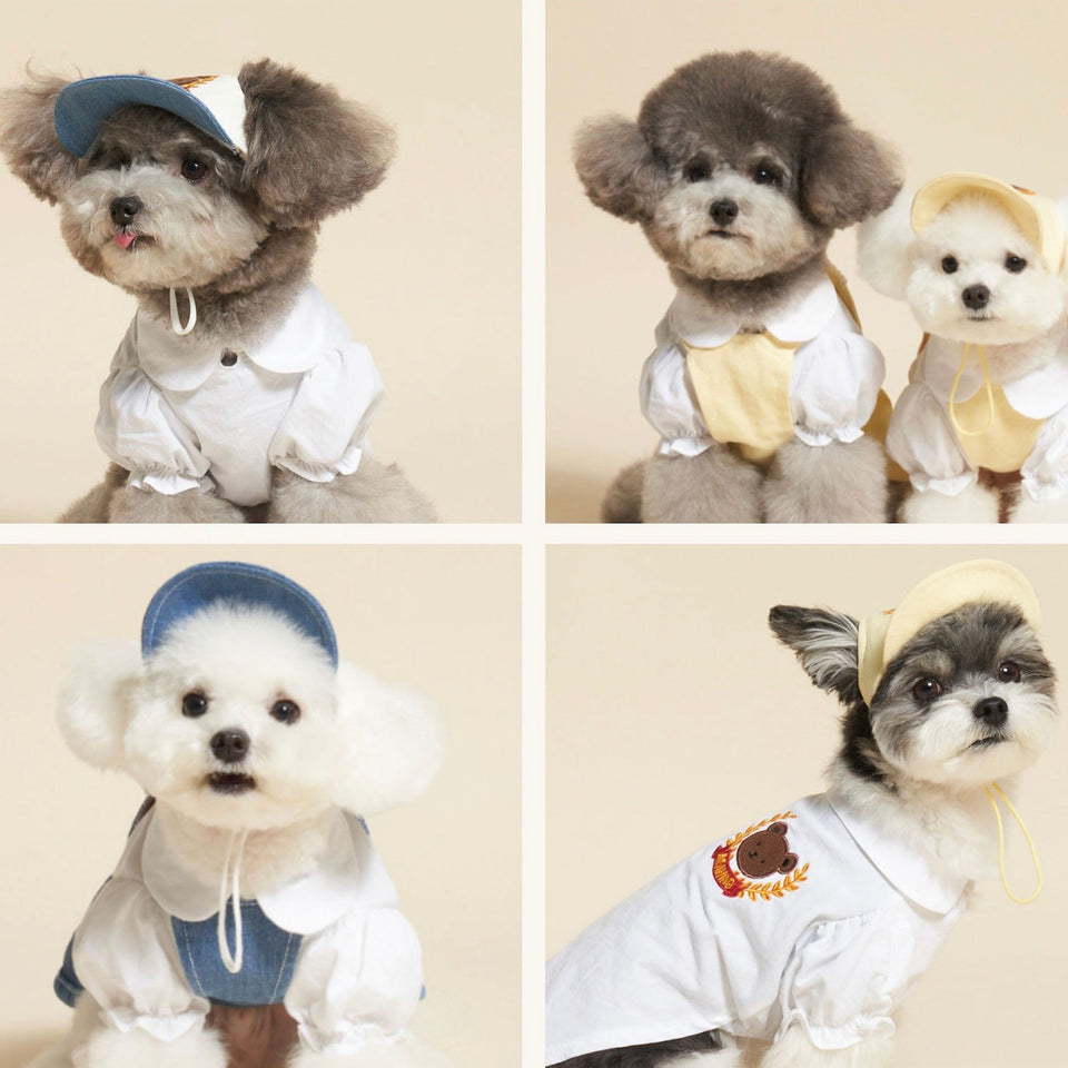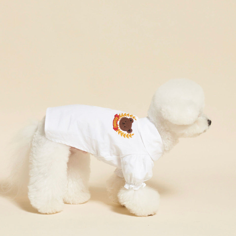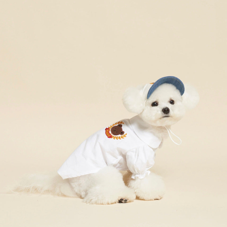 丸襟と首元のボタン、パフ袖がラブリーなスクールルックを演出!