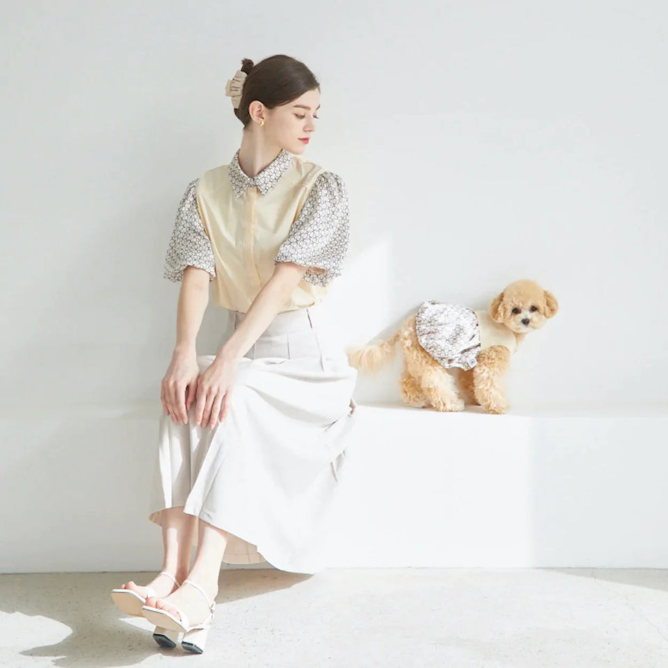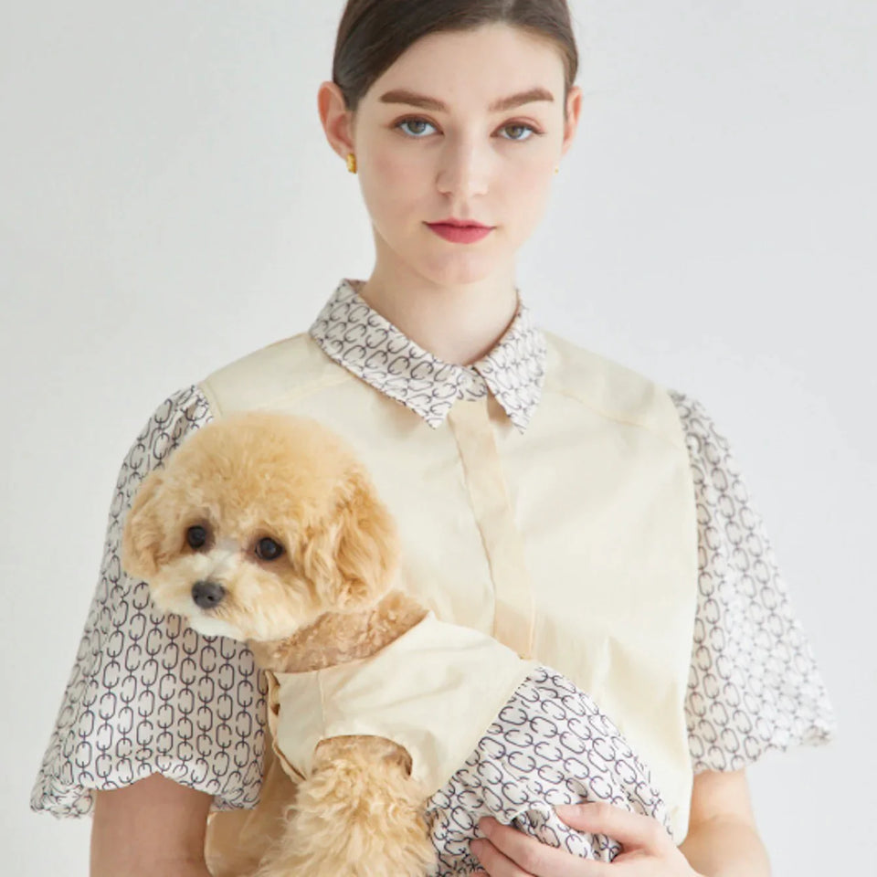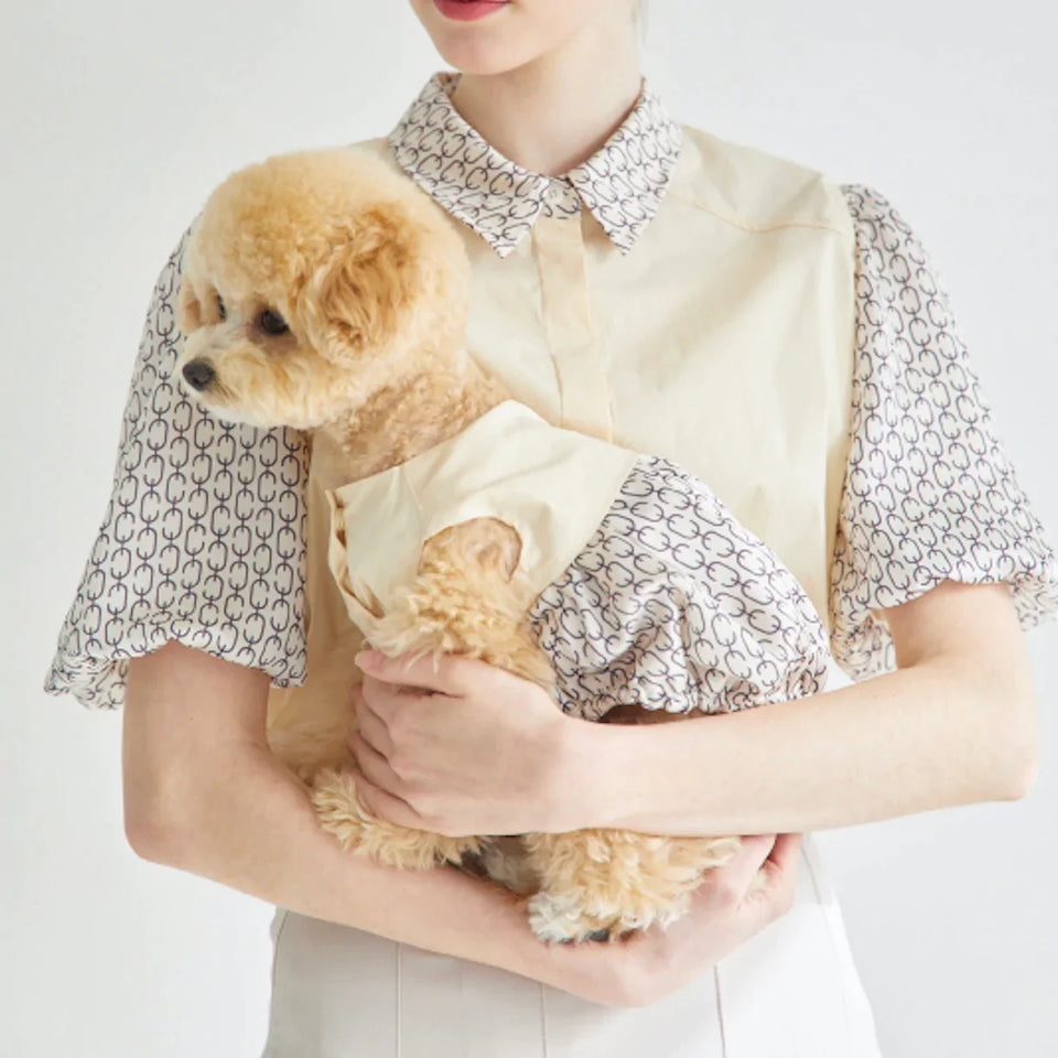 別売の愛犬用の『モダンバルーンワンピース』とSETでご着用いただくととってもおしゃれで洗練されたツインルックになりますので、おすすめです!