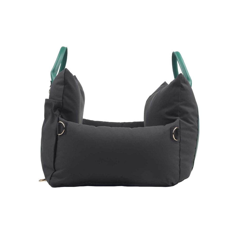 ベッドの背面には、座席に固定できるように紐が付いているのでシートベルトに通して車の助手席に簡単に装着が可能!