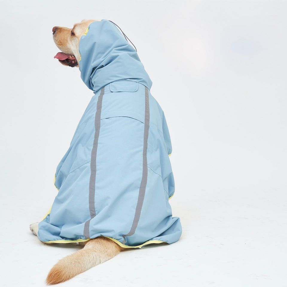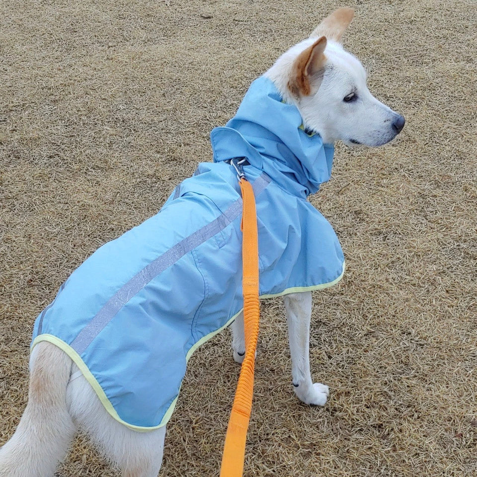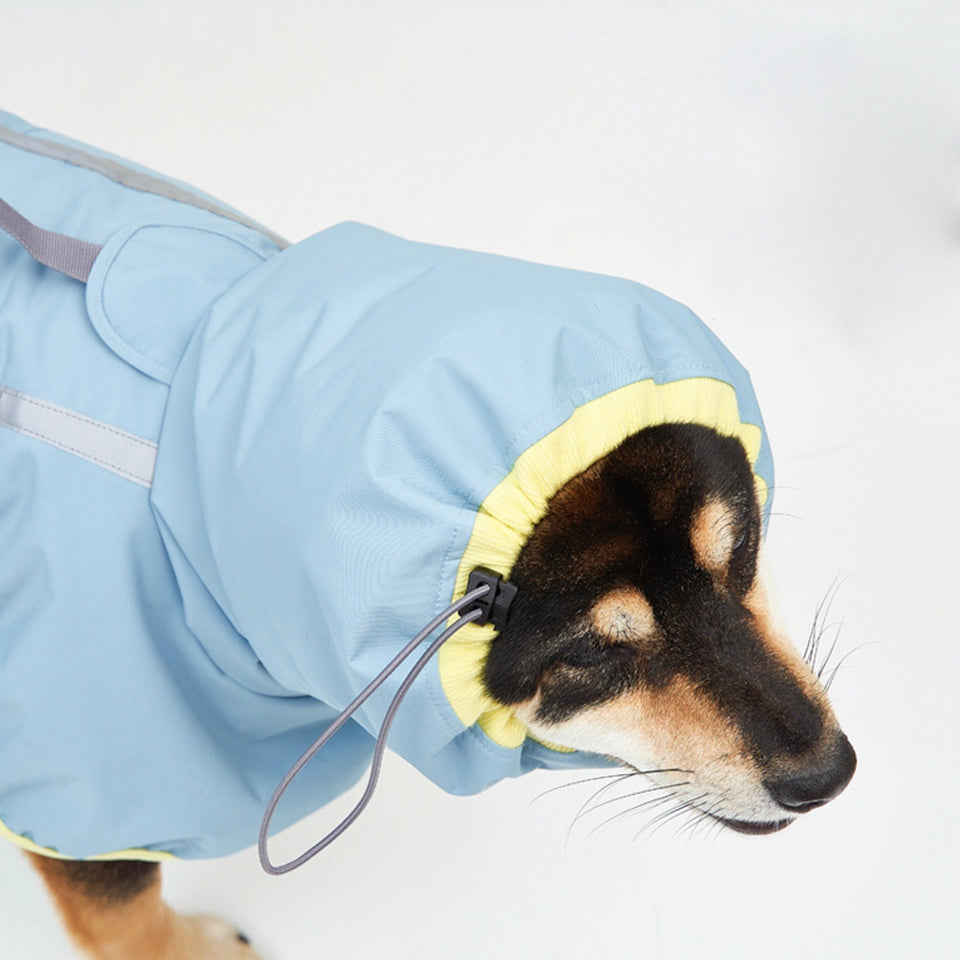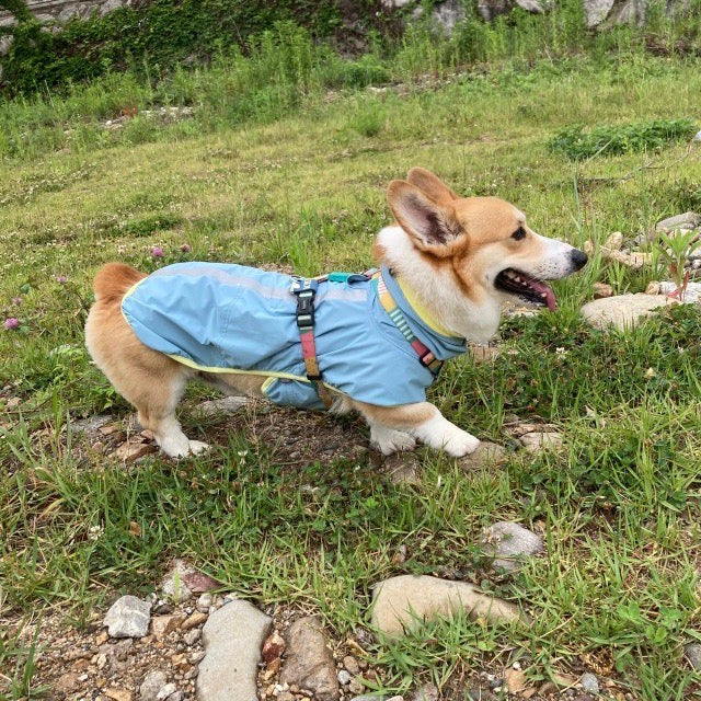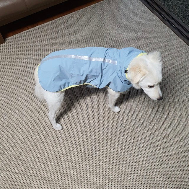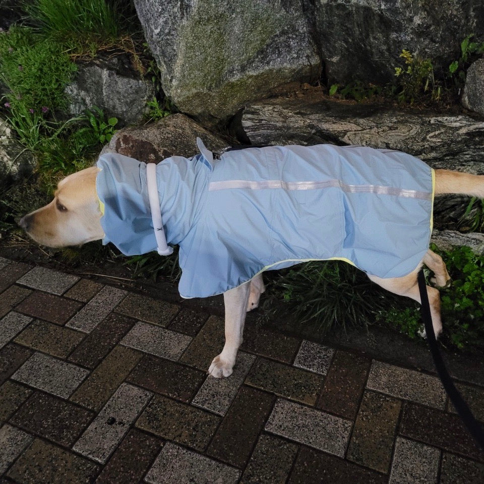 ④胸から下腹部まで包み込むので愛犬を効果的に保護して、雨水が跳ねてお腹に飛ぶのを防げるので散歩後のケアがより簡単になります。