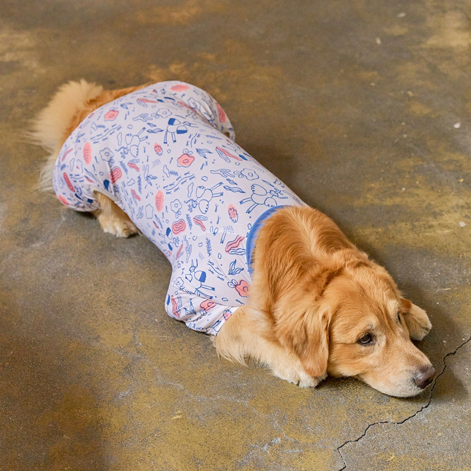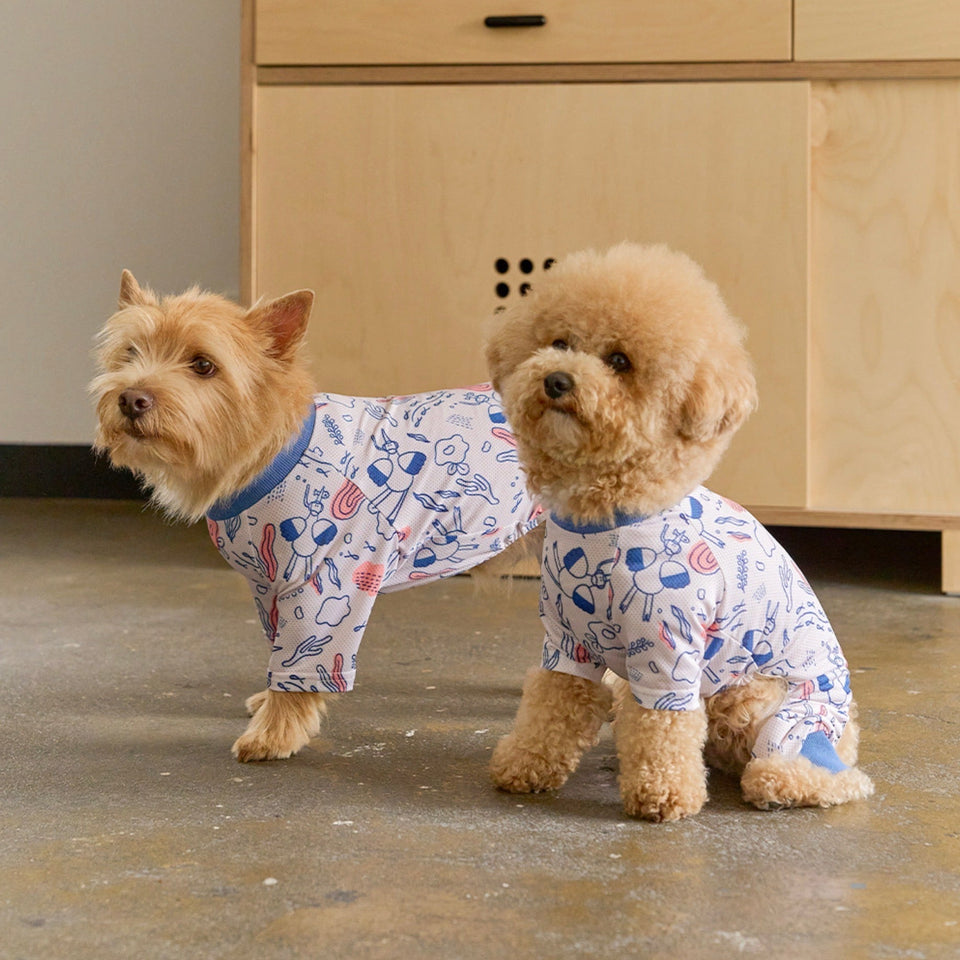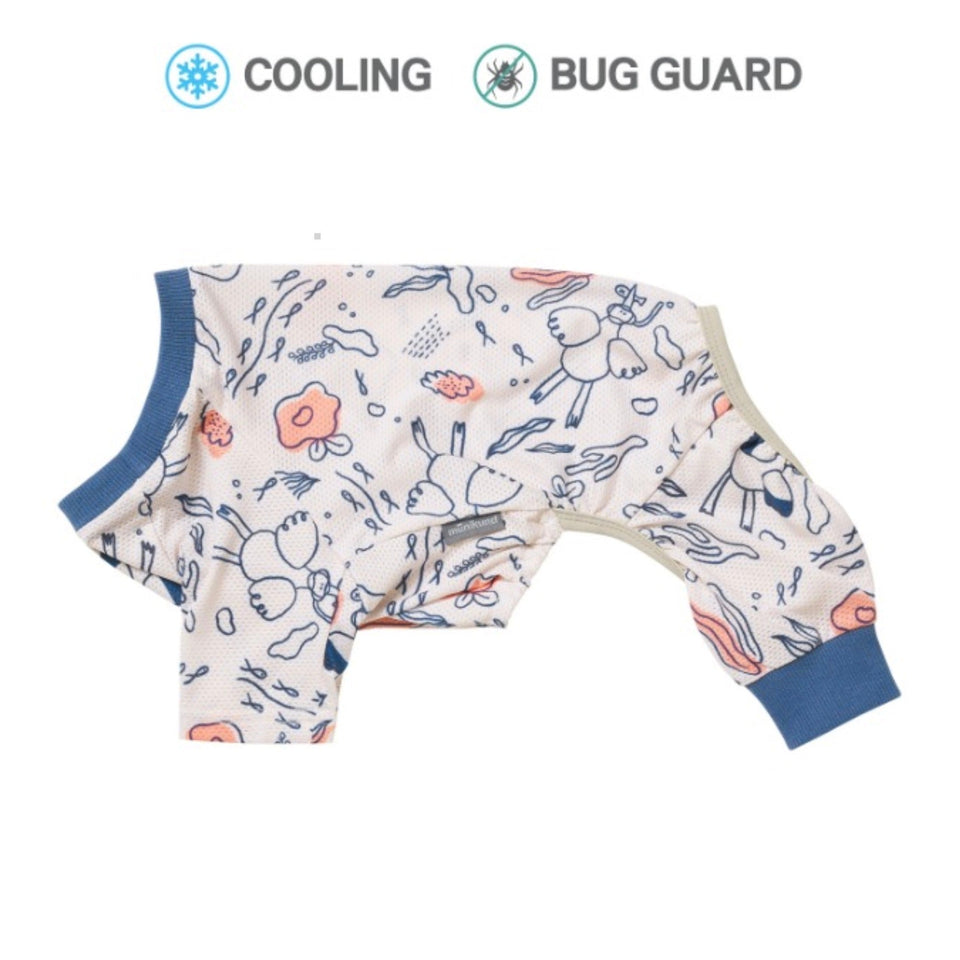 「Bug Guard All in one」は軍服やアウトドアウェアなどに使用される特殊加工技術とエアクール素材を適用した生地を使用しており、ダニや蚊などの害虫被害を予防しながら、冷感機能を兼ね備えた夏場の快適で安全なお散歩やお出掛けをして頂くための機能性衣類です。