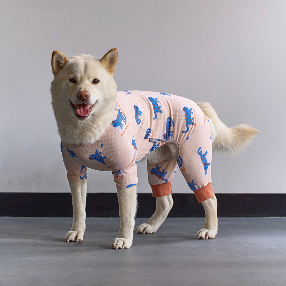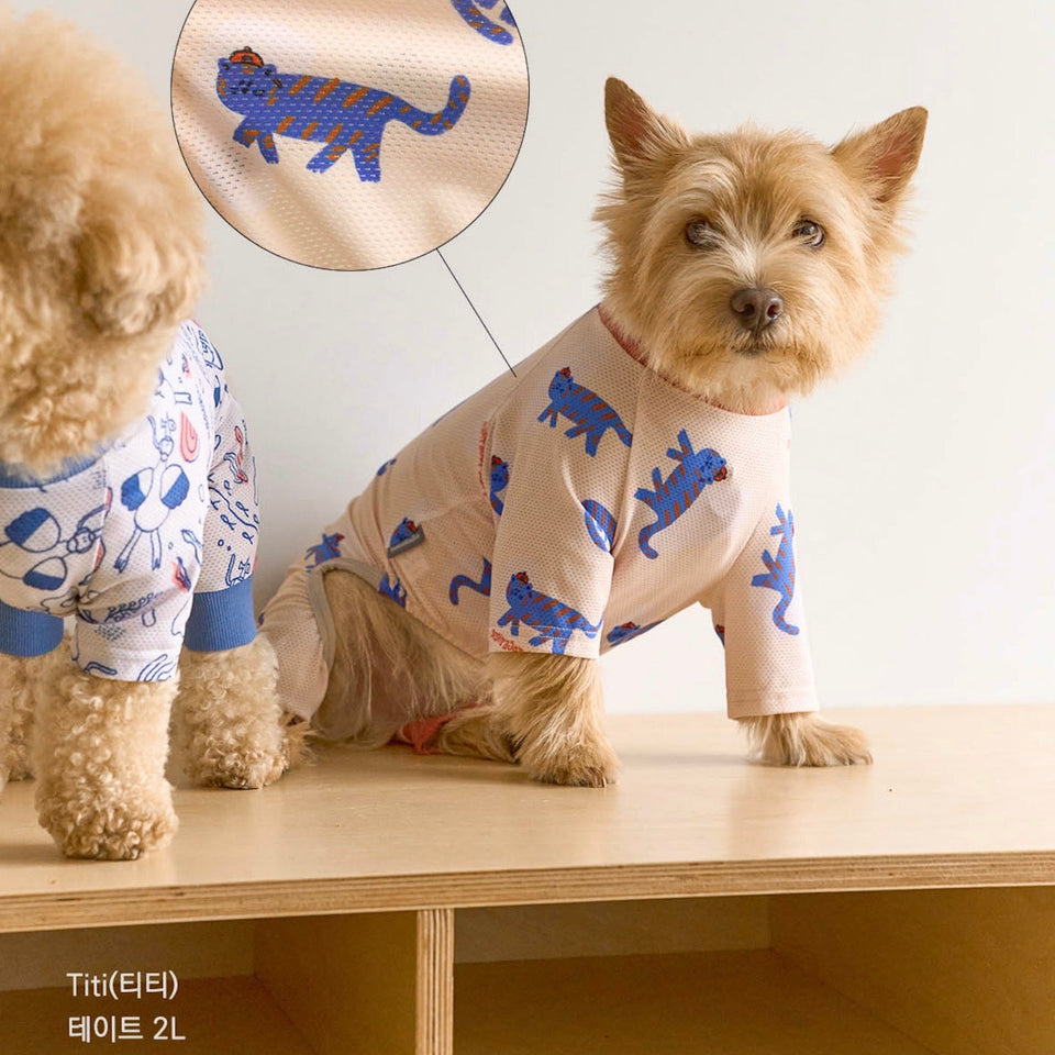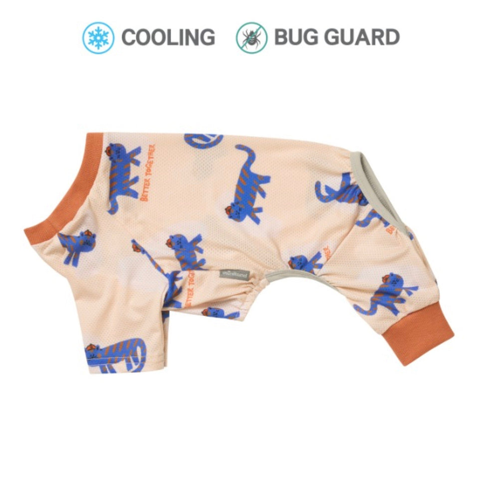 「Bug Guard All in one」は軍服やアウトドアウェアなどに使用される特殊加工技術とエアクール素材を適用した生地を使用しており、ダニや蚊などの害虫被害を予防しながら、冷感機能を兼ね備えた夏場の快適で安全なお散歩やお出掛けをして頂くための機能性衣類です。