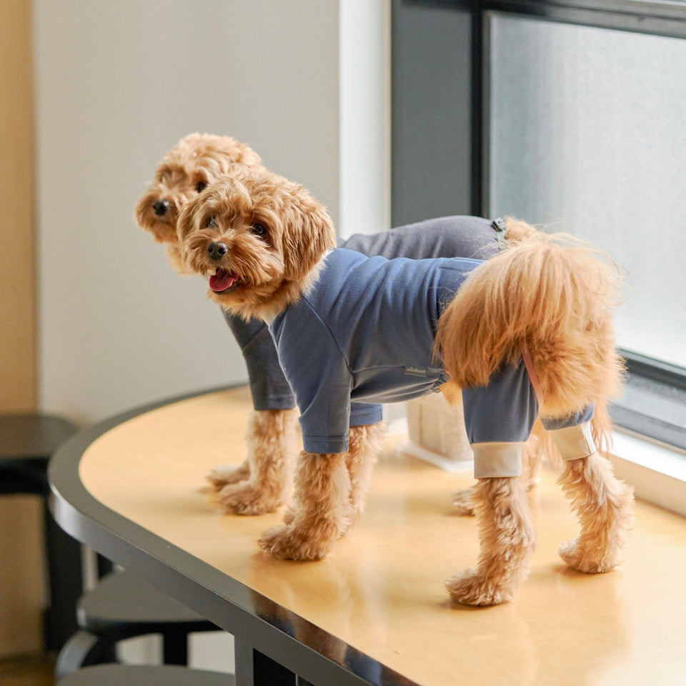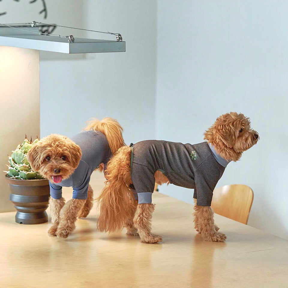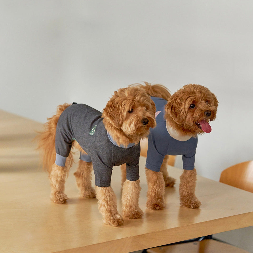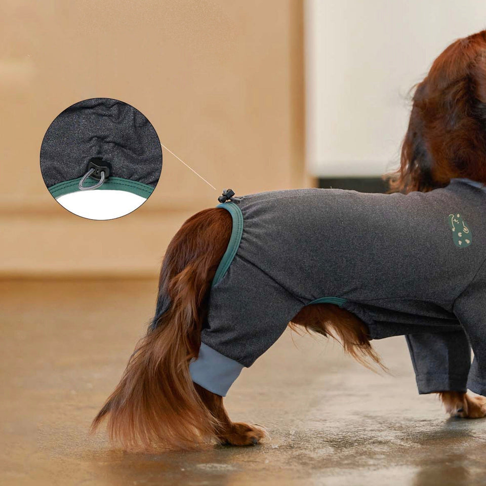 ④犬体工学に基づいたUラインパターンで、これまでオールインワンを着用すると尻尾が押されてしまって窮屈だったわんちゃんも快適に着用できます!