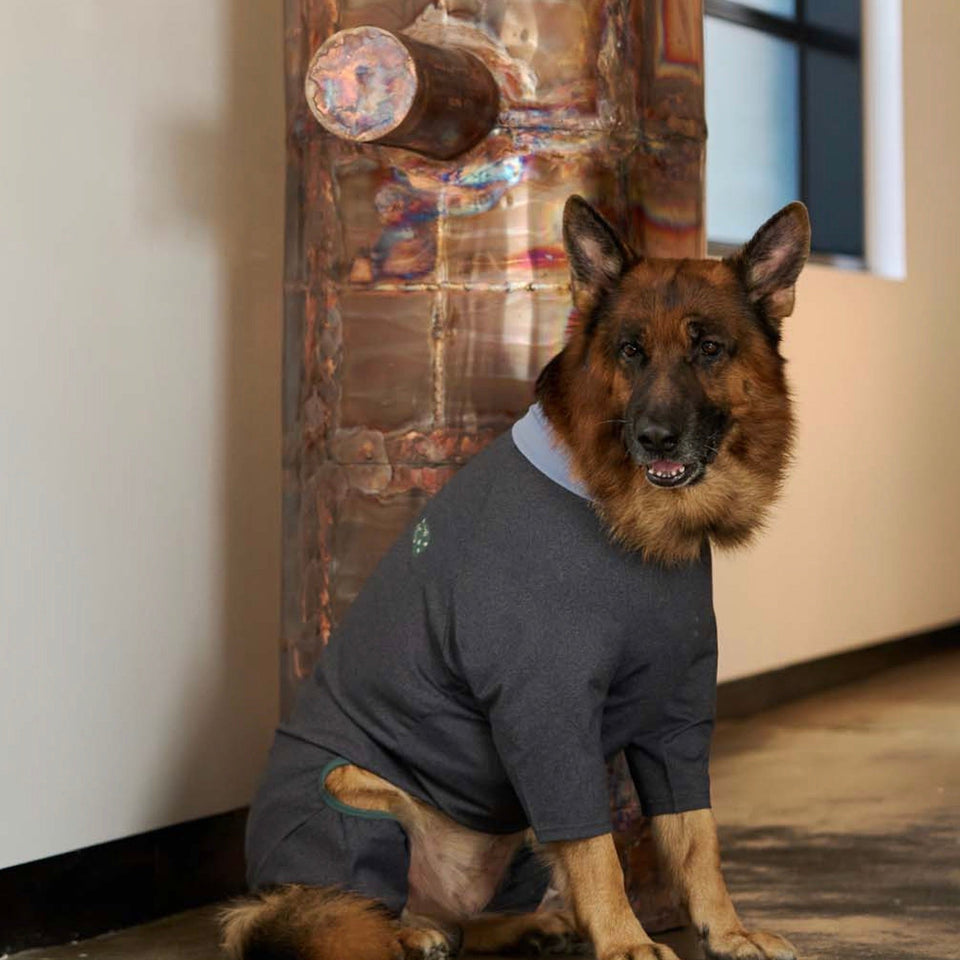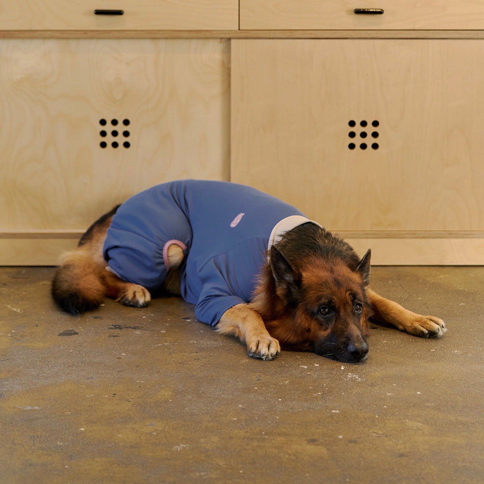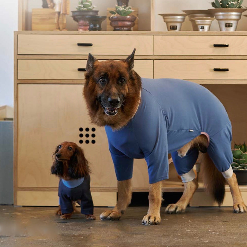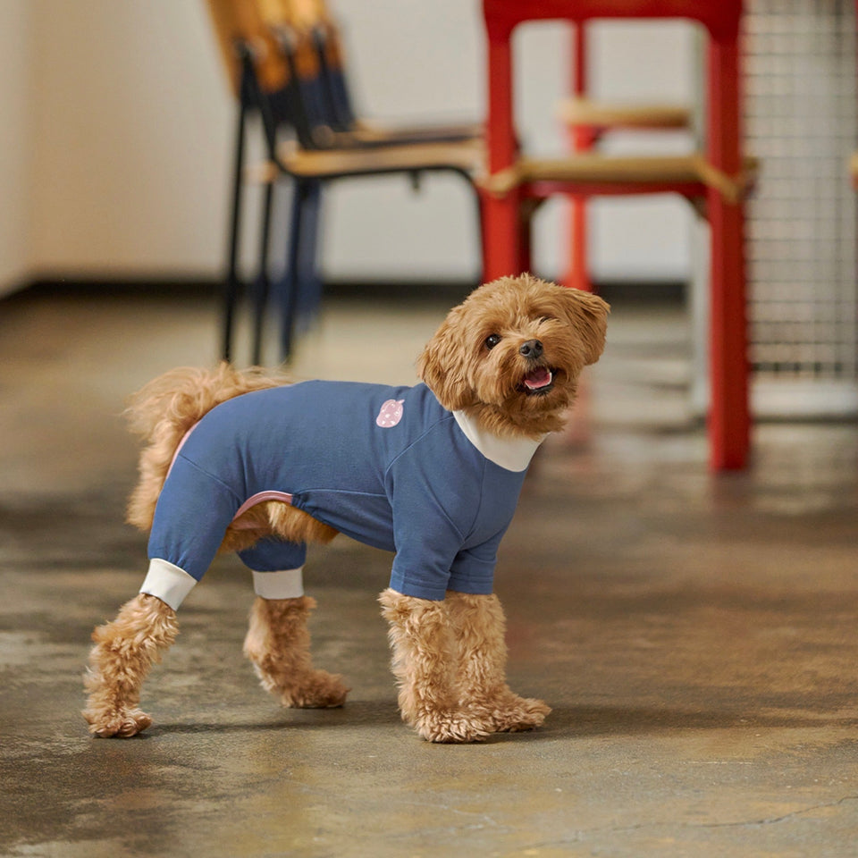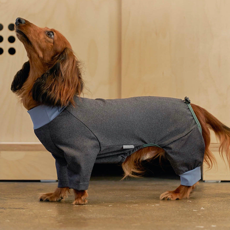 ④犬体工学に基づいたUラインパターンで、これまでオールインワンを着用すると尻尾が押されてしまって窮屈だったわんちゃんも快適に着用できます!