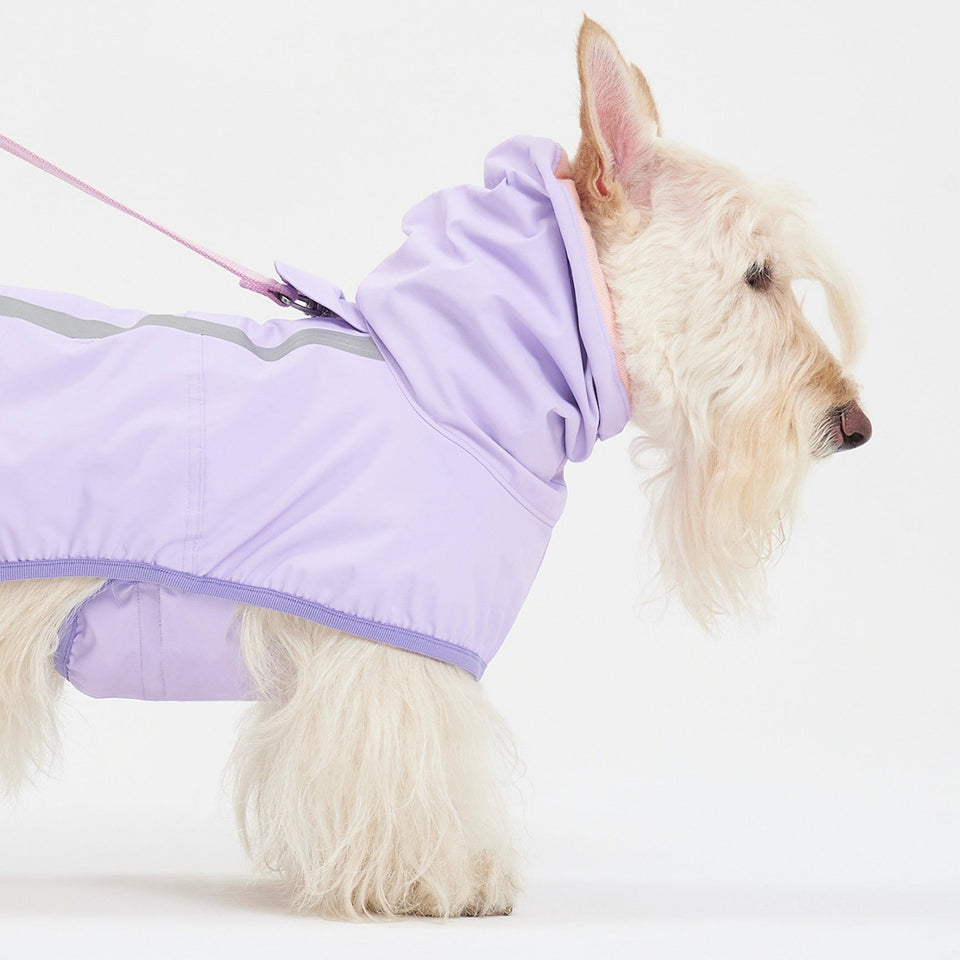 ④胸から下腹部まで包み込むので愛犬を効果的に保護して、雨水が跳ねてお腹に飛ぶのを防げるので散歩後のケアがより簡単になります。