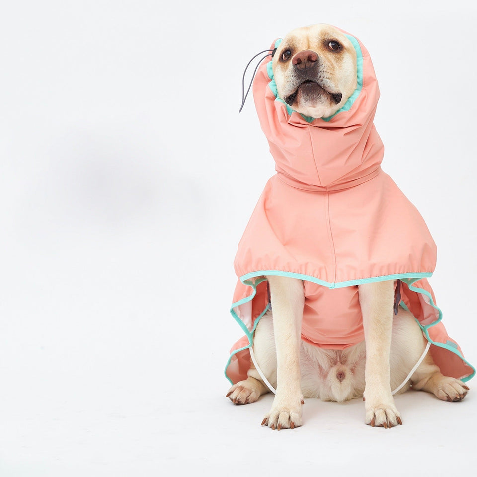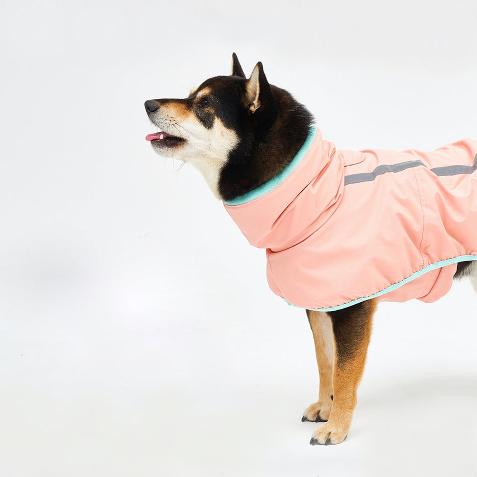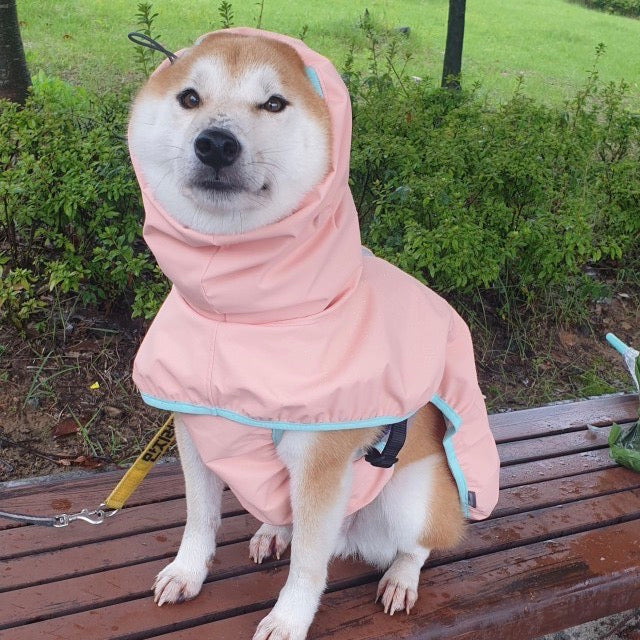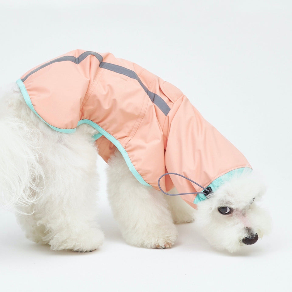 ④胸から下腹部まで包み込むので愛犬を効果的に保護して、雨水が跳ねてお腹に飛ぶのを防げるので散歩後のケアがより簡単になります。