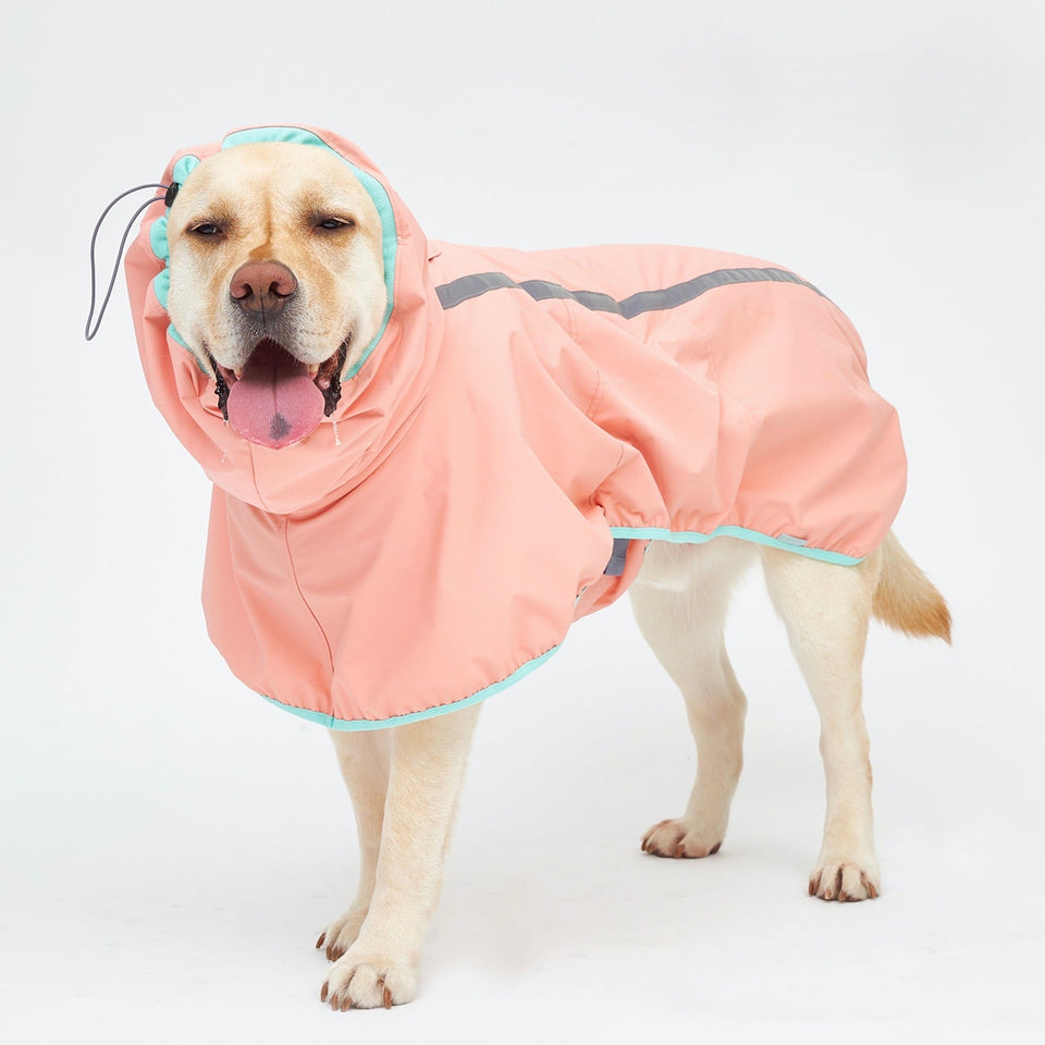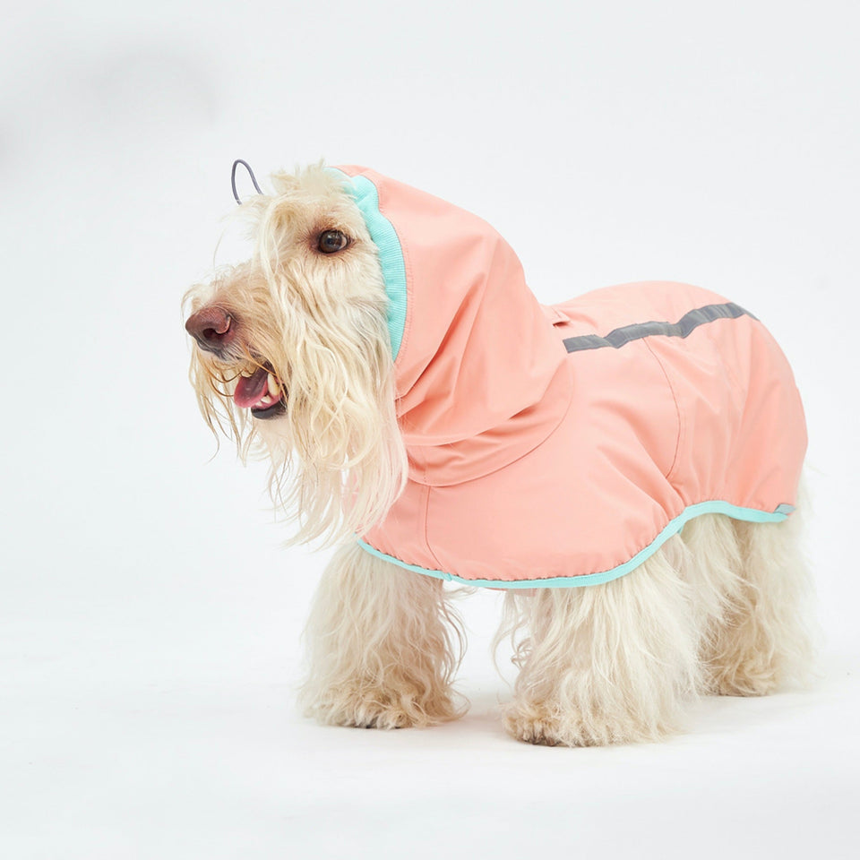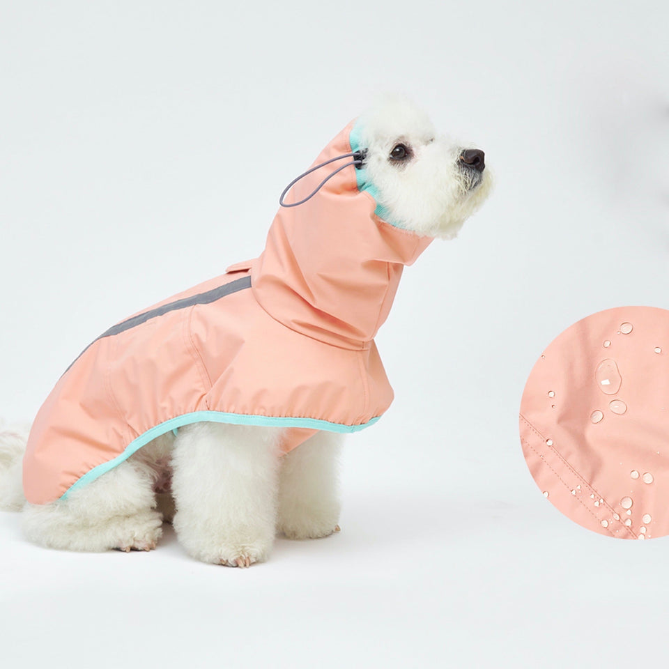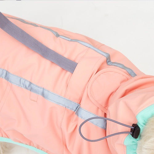 ④胸から下腹部まで包み込むので愛犬を効果的に保護して、雨水が跳ねてお腹に飛ぶのを防げるので散歩後のケアがより簡単になります。
