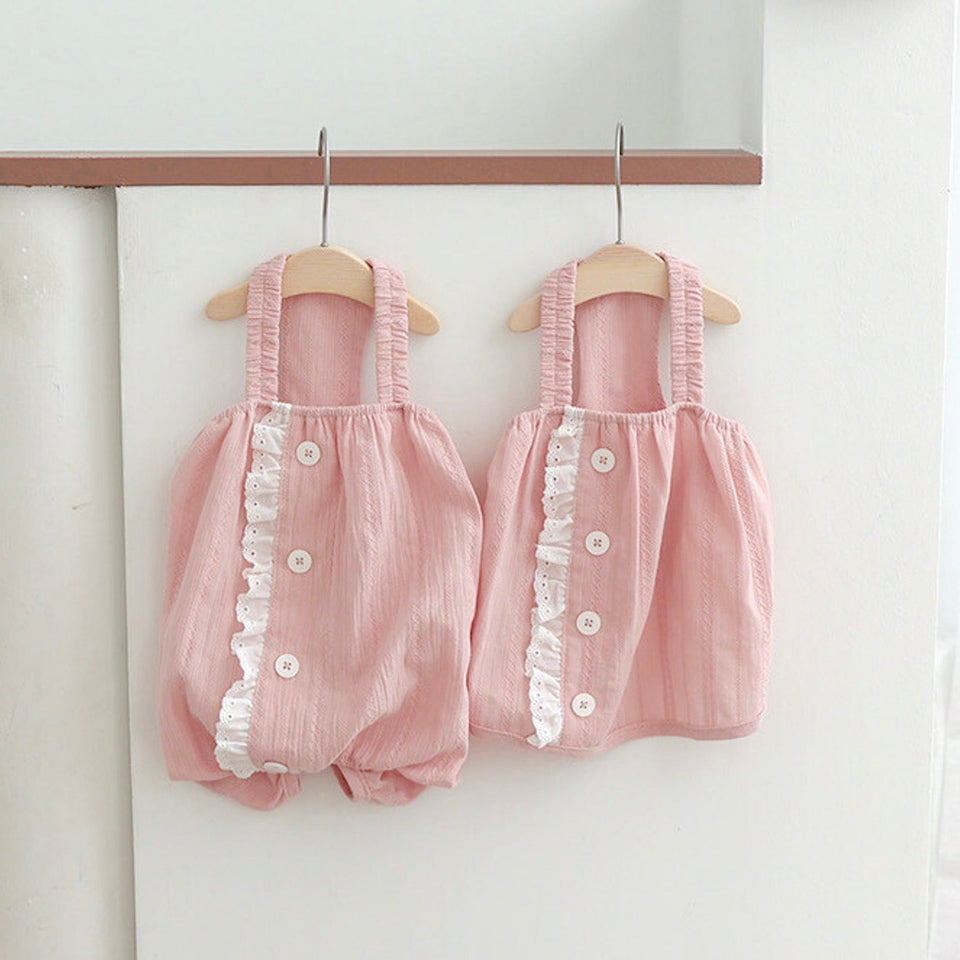 通気性の抜群なコットン100%の生地にレースディティールとボタンで高級感と可愛らしさをプラス!