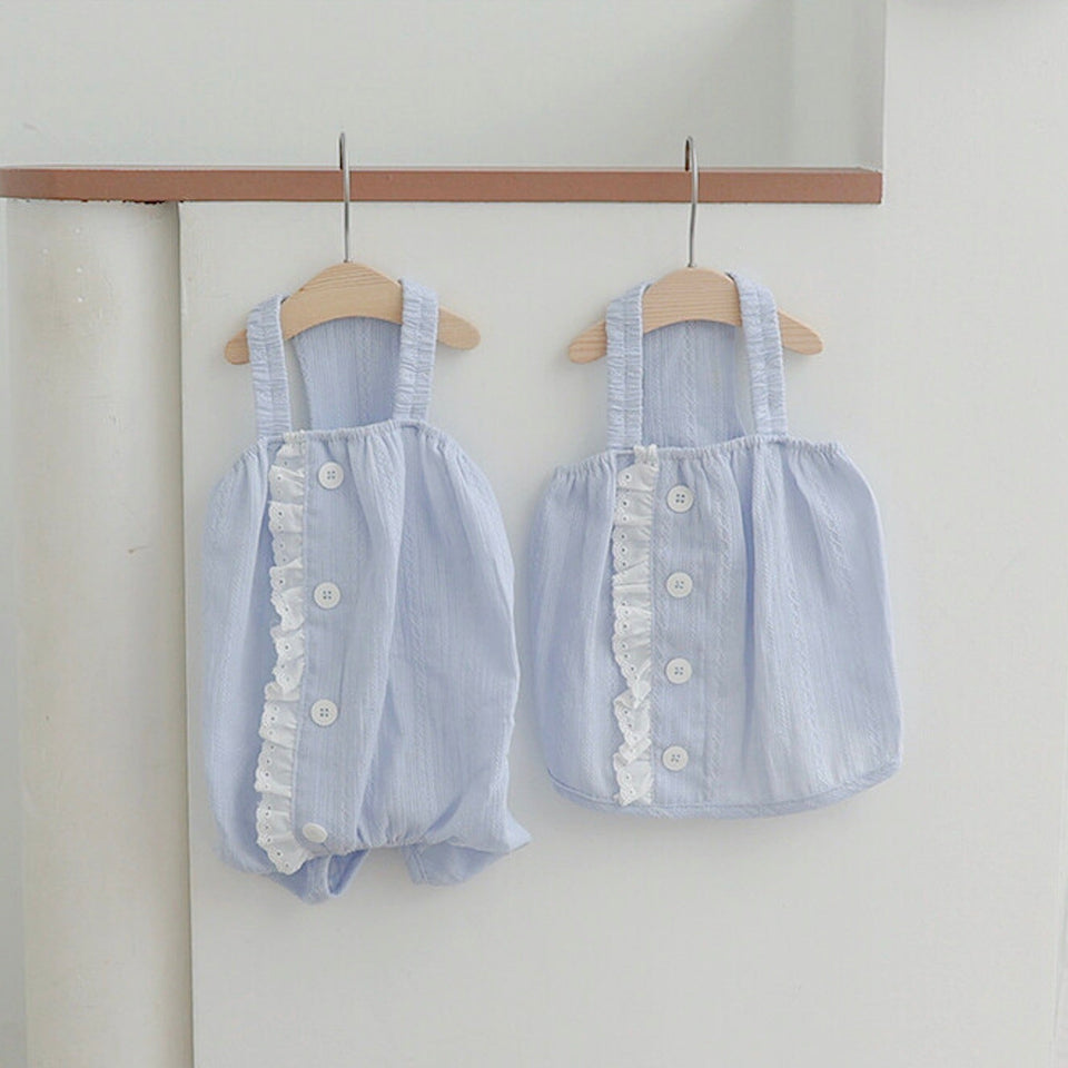 『レースとボタン使いが高級感たっぷりのべべロンパース