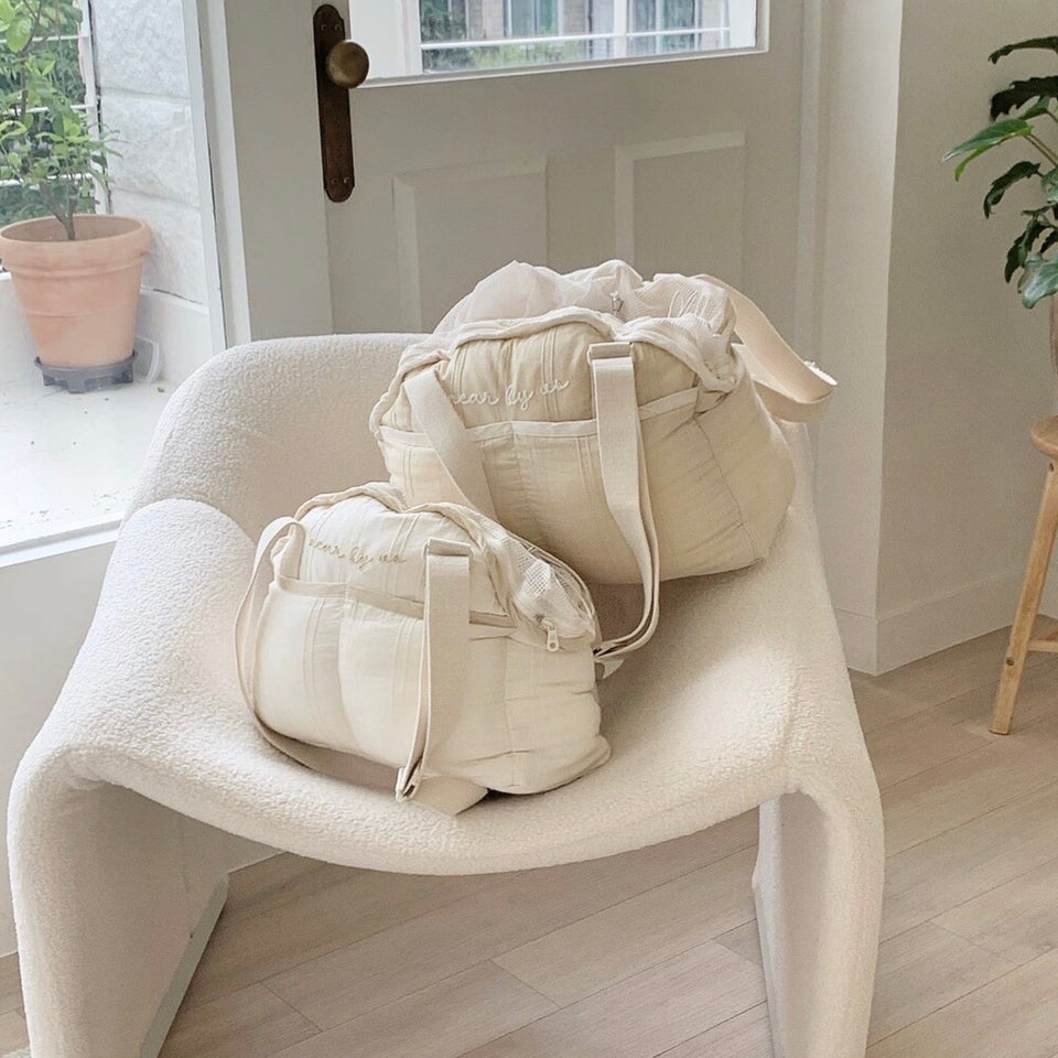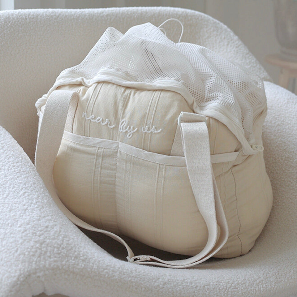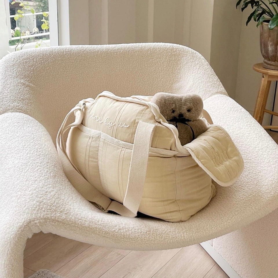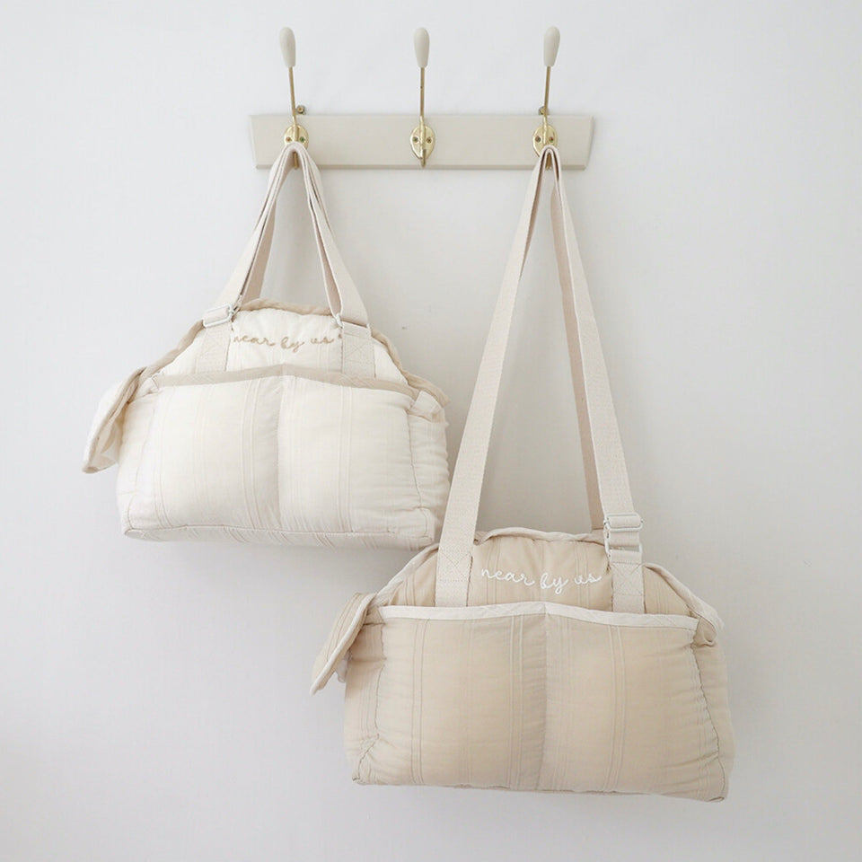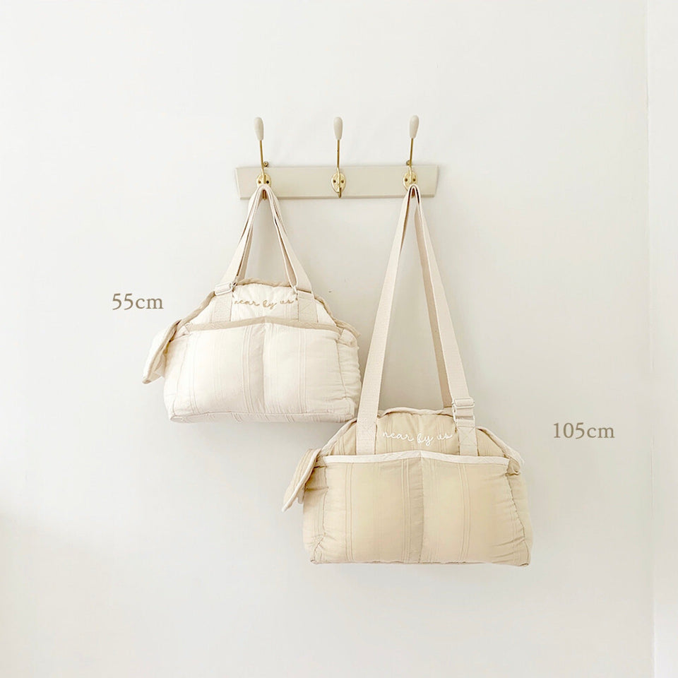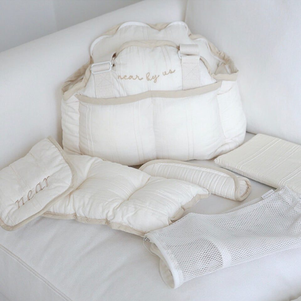 near by us初のキャリーバッグはnear byらしさたっぷりのデザインでクッション型バッグとして作っており、愛犬がどこでも快適に過ごせることを願って作られました!