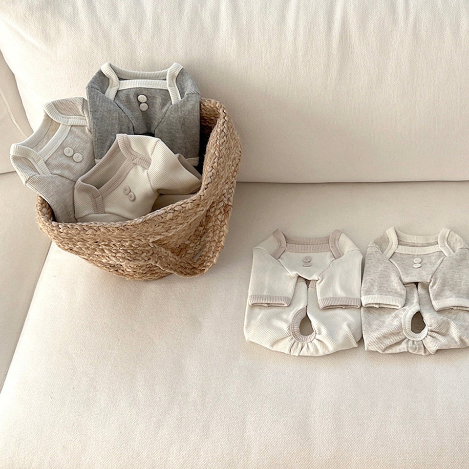 near by us らしい優しくて手触りの良い珍しいミニワッフル生地は優しい色味の配色が可愛く、一年中着用しやすい生地感で洗濯後も変形しにくい丈夫な素材です!
