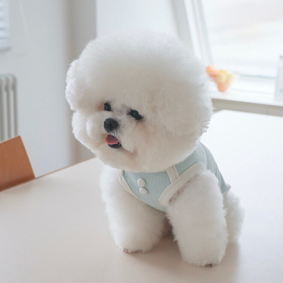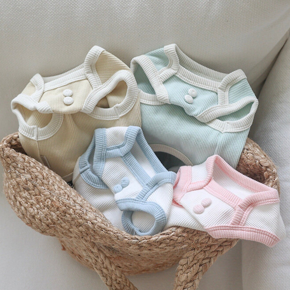 『ミニワッフル生地にボタンディティールの可愛いマシュマロスリーブレス