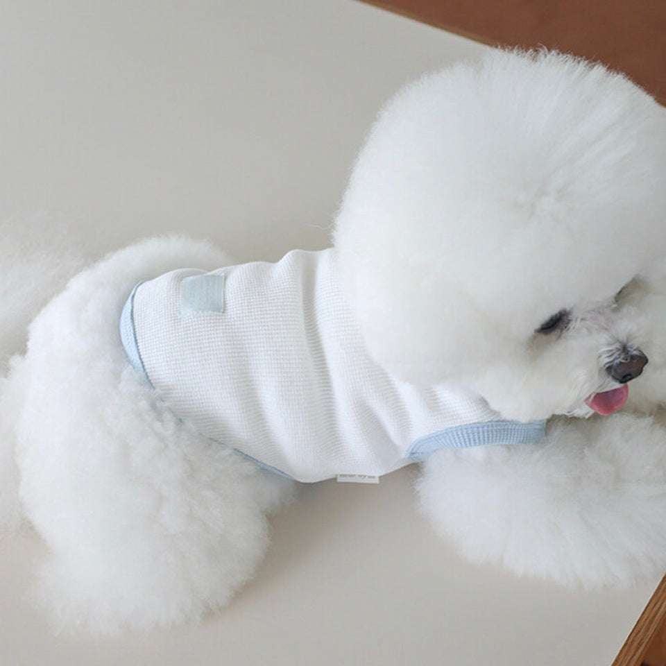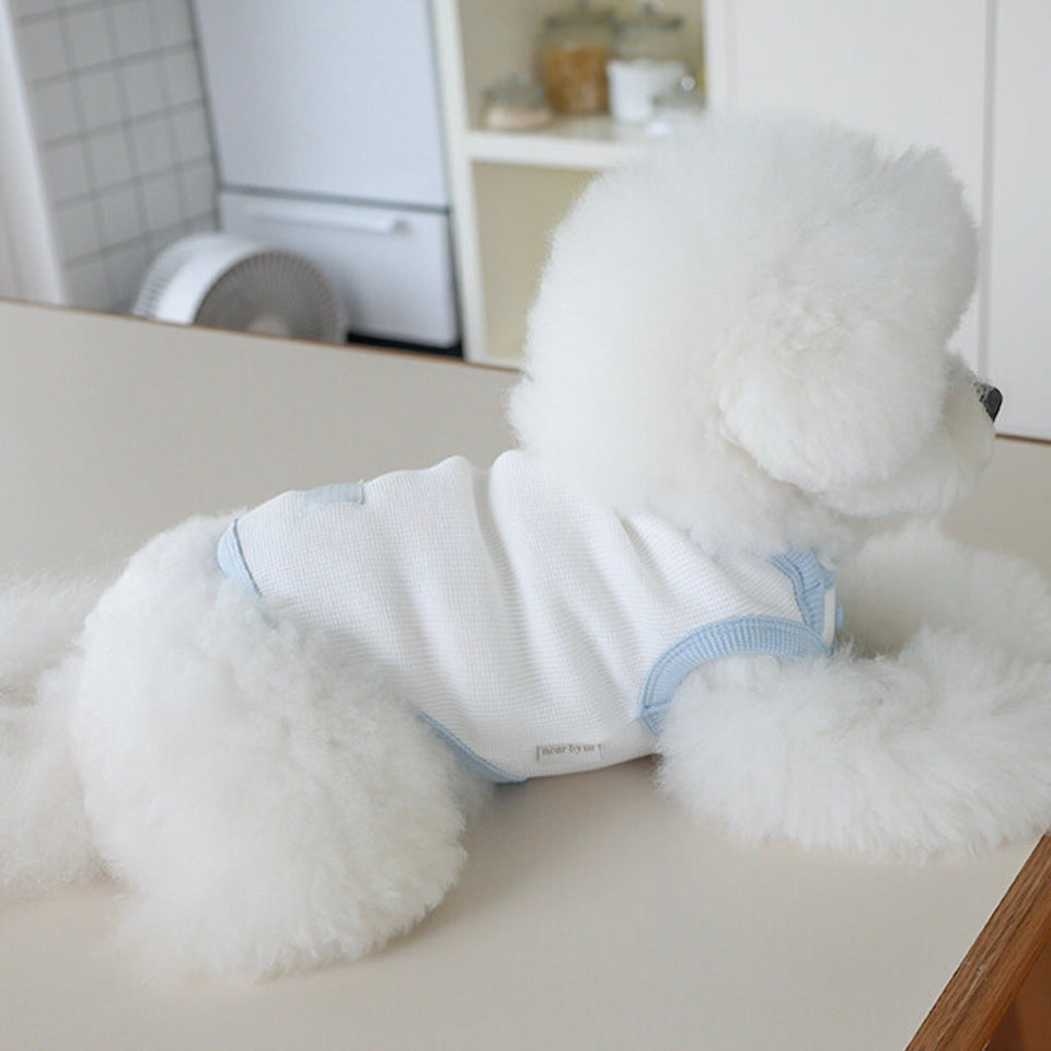 『ミニワッフル生地にボタンディティールの可愛いマシュマロスリーブレス