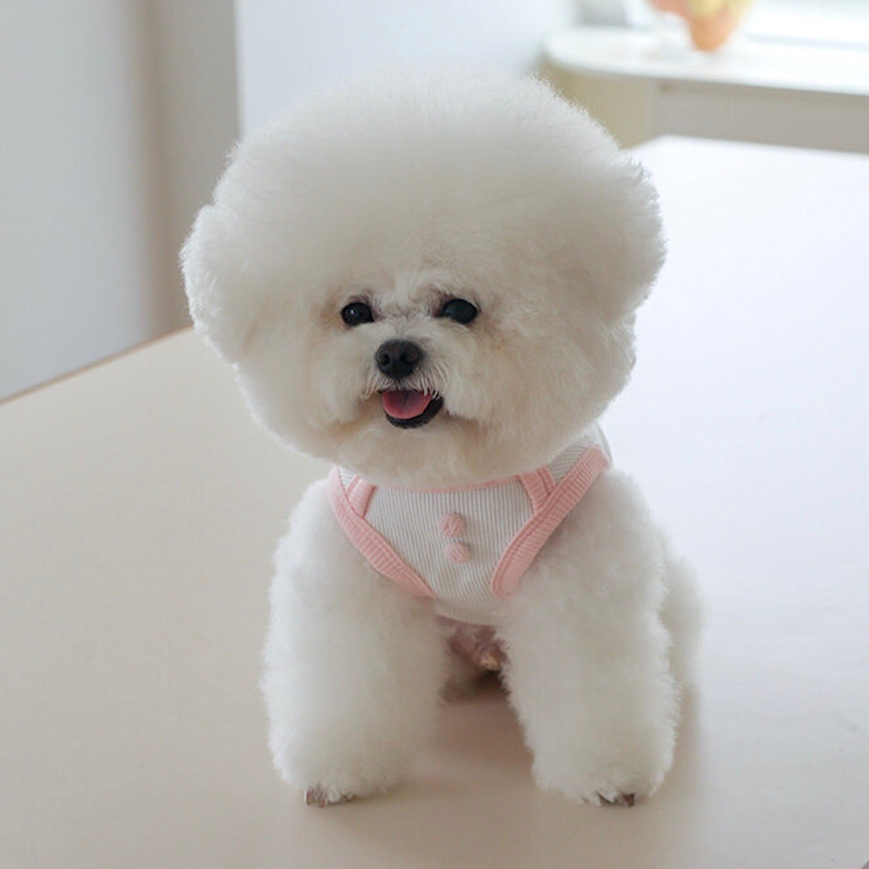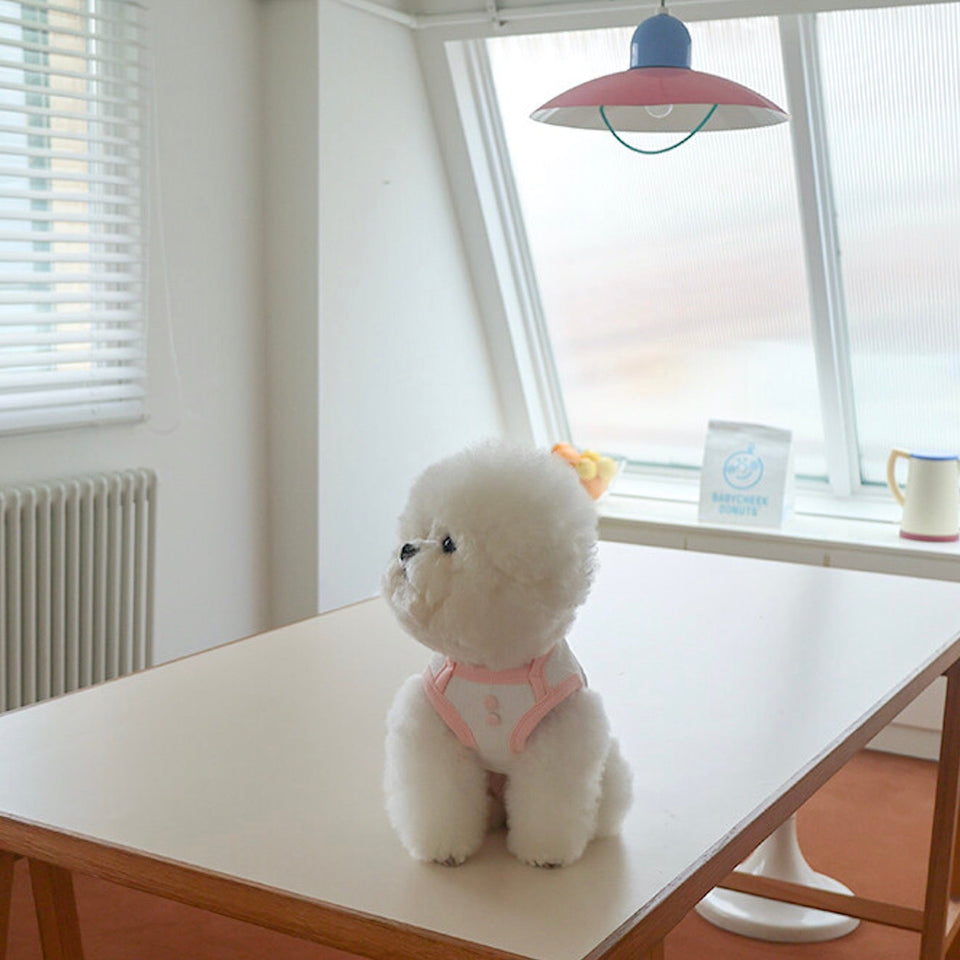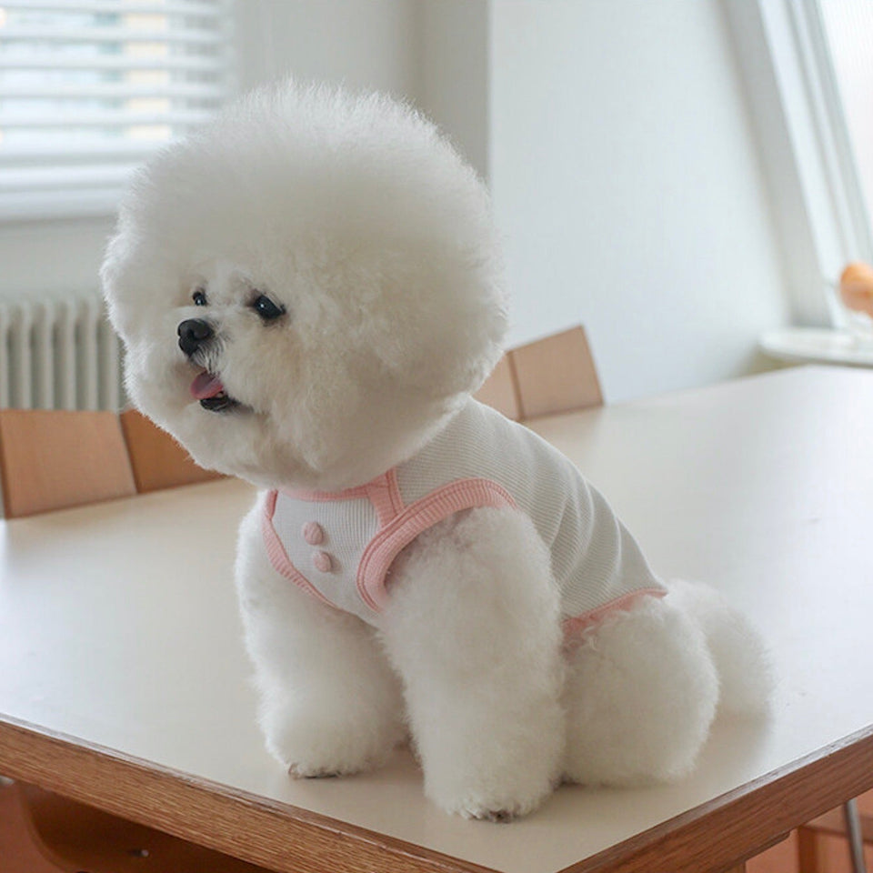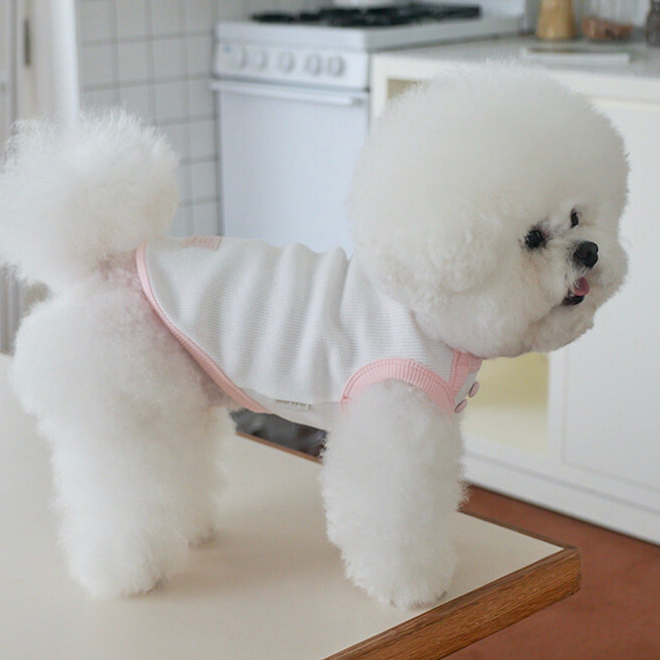 『ミニワッフル生地にボタンディティールの可愛いマシュマロスリーブレス』