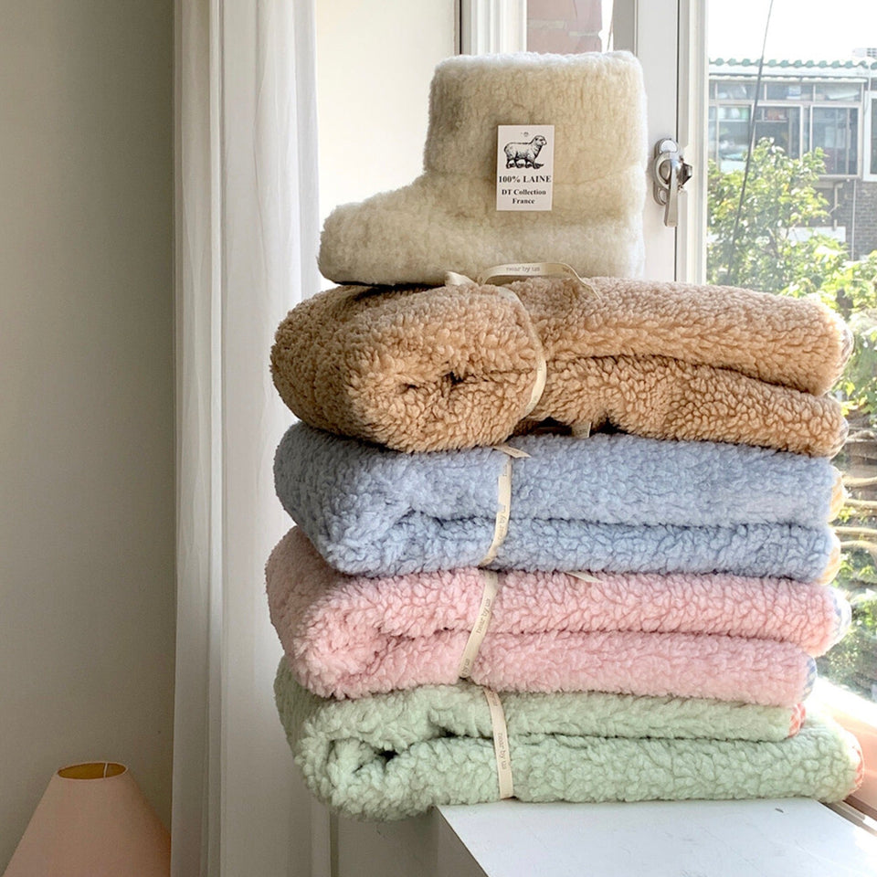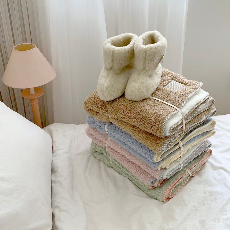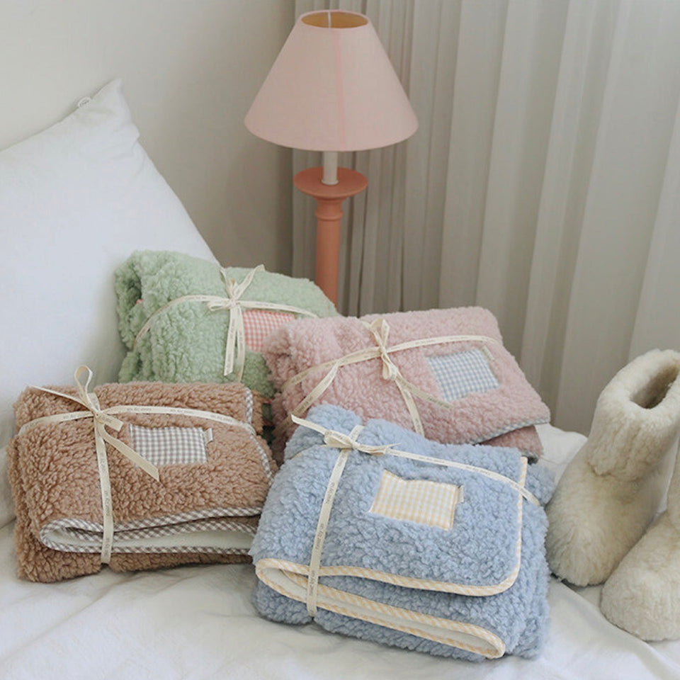 『可愛らしい色味の暖かな防寒用のボアフリースブランケット』