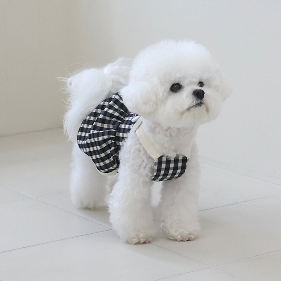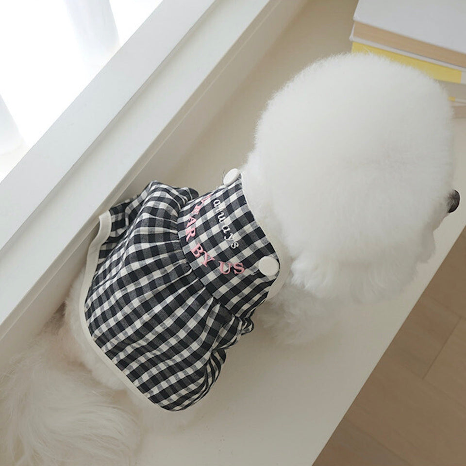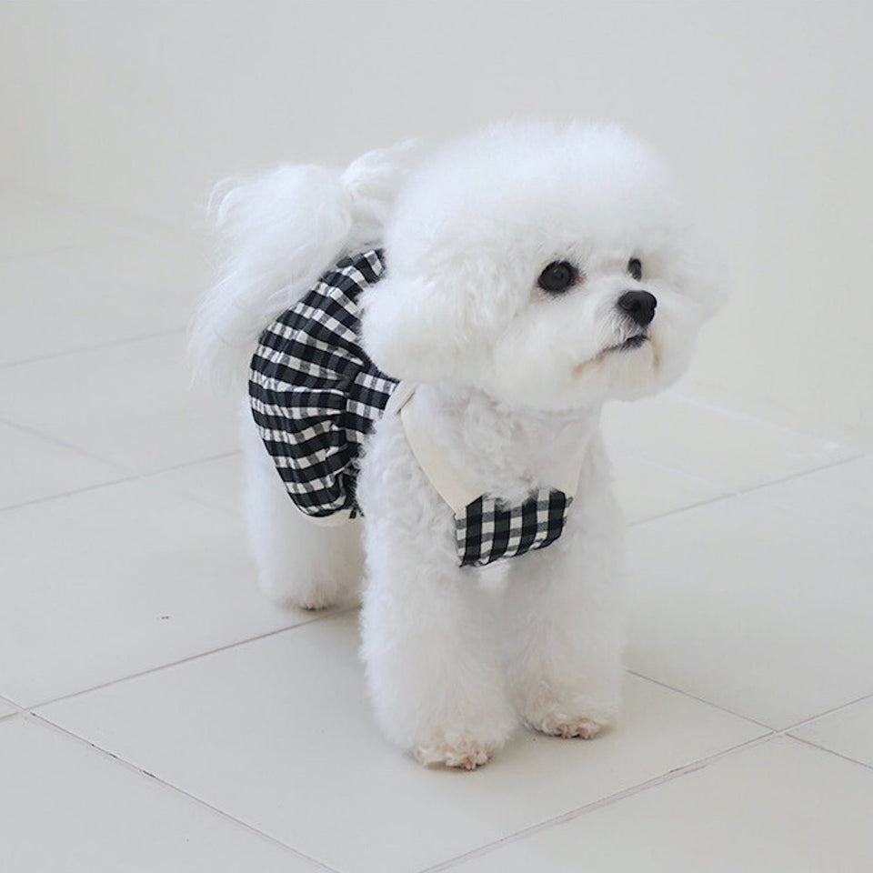 伸縮性はない生地ですが、スカート部分の生地を多くとっているので、ふんわり感が可愛く、さらに愛犬の活動性もしっかりサポートしてくれるデザインとなっています!