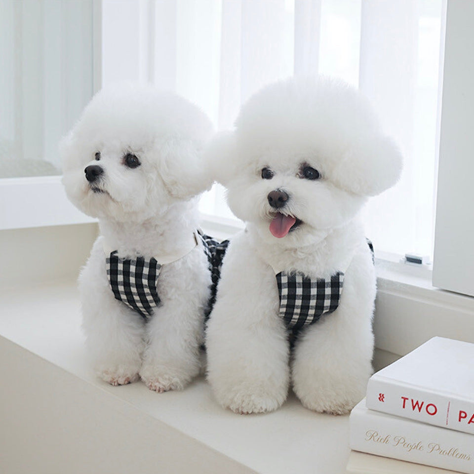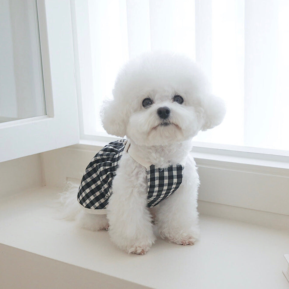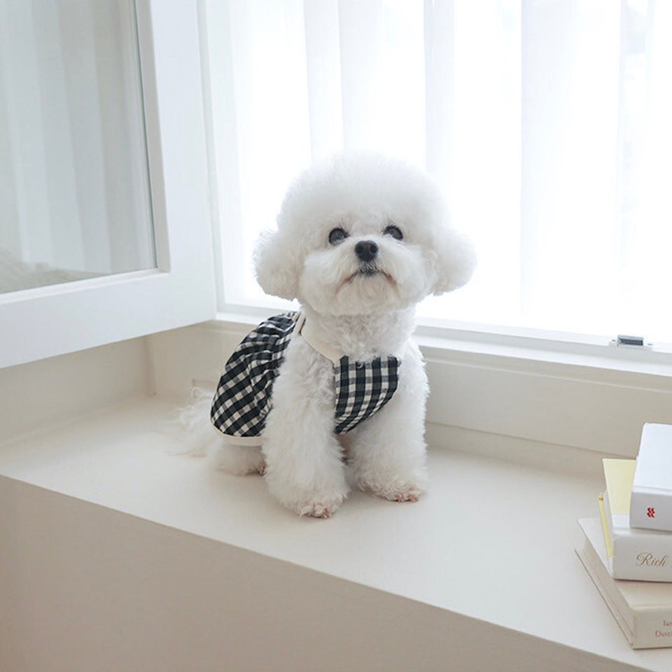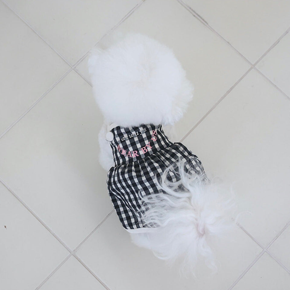 伸縮性はない生地ですが、スカート部分の生地を多くとっているので、ふんわり感が可愛く、さらに愛犬の活動性もしっかりサポートしてくれるデザインとなっています!