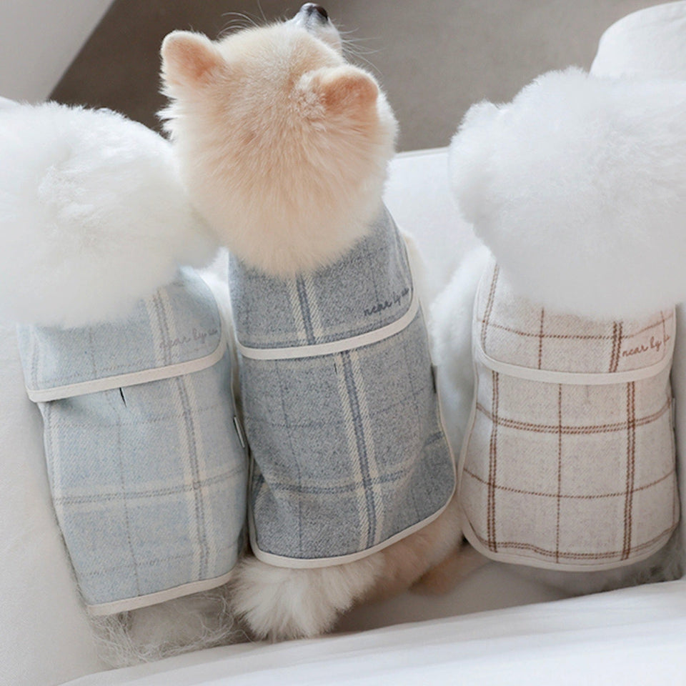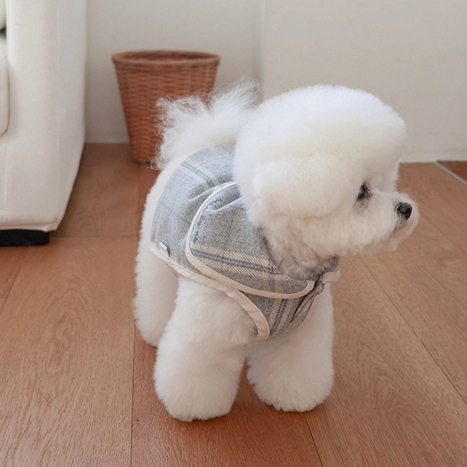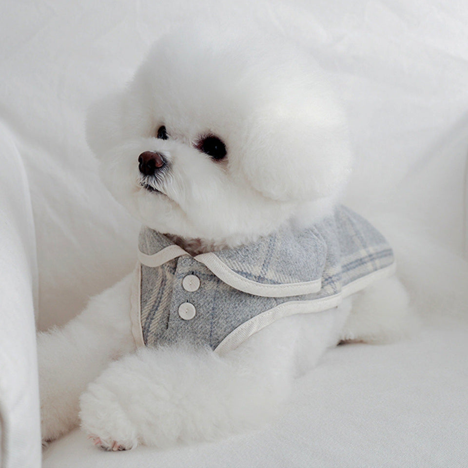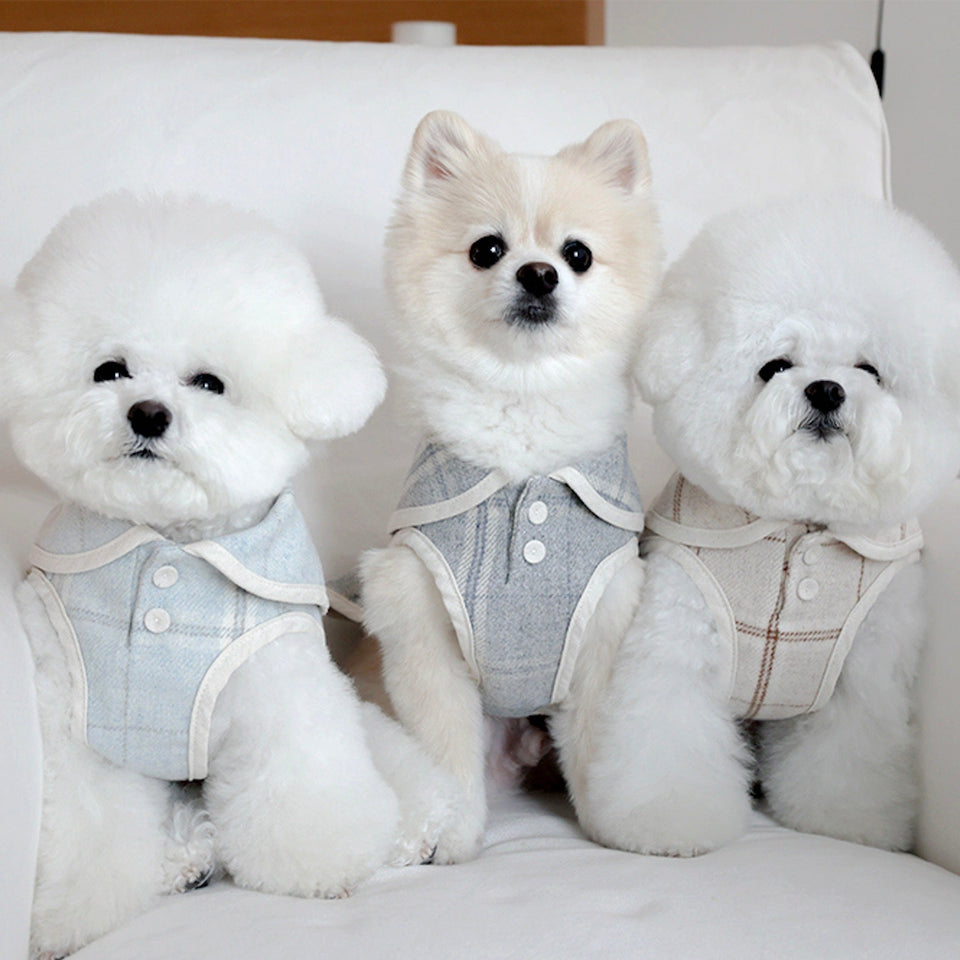 セーラーカラーの襟元にほのかな刺繍がチラリと見える可愛いデザインはボタンで首周りの長さを調整でき、襟の下にはハーネスからリードを通す穴がついており、お散歩などでもデザインをしっかりと見せながらお出かけができます!