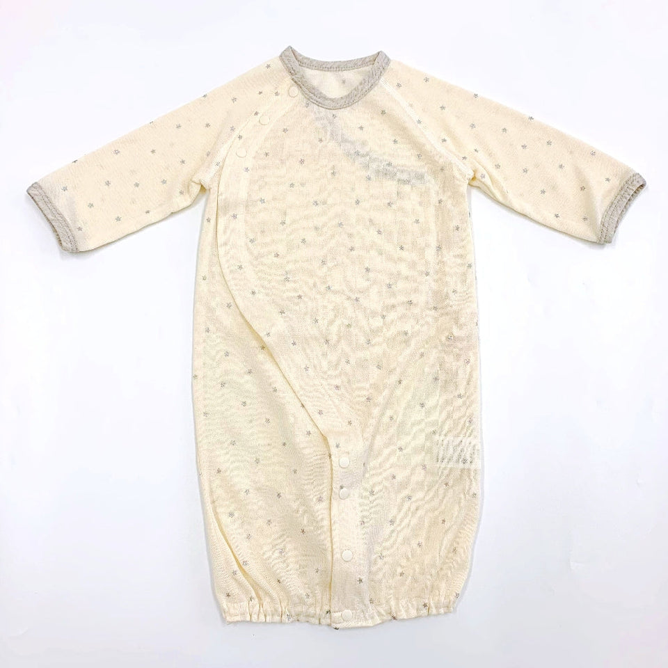 キラっと輝く小さな小さなシルバーの星をたくさんプリントした可愛いベビードレス。