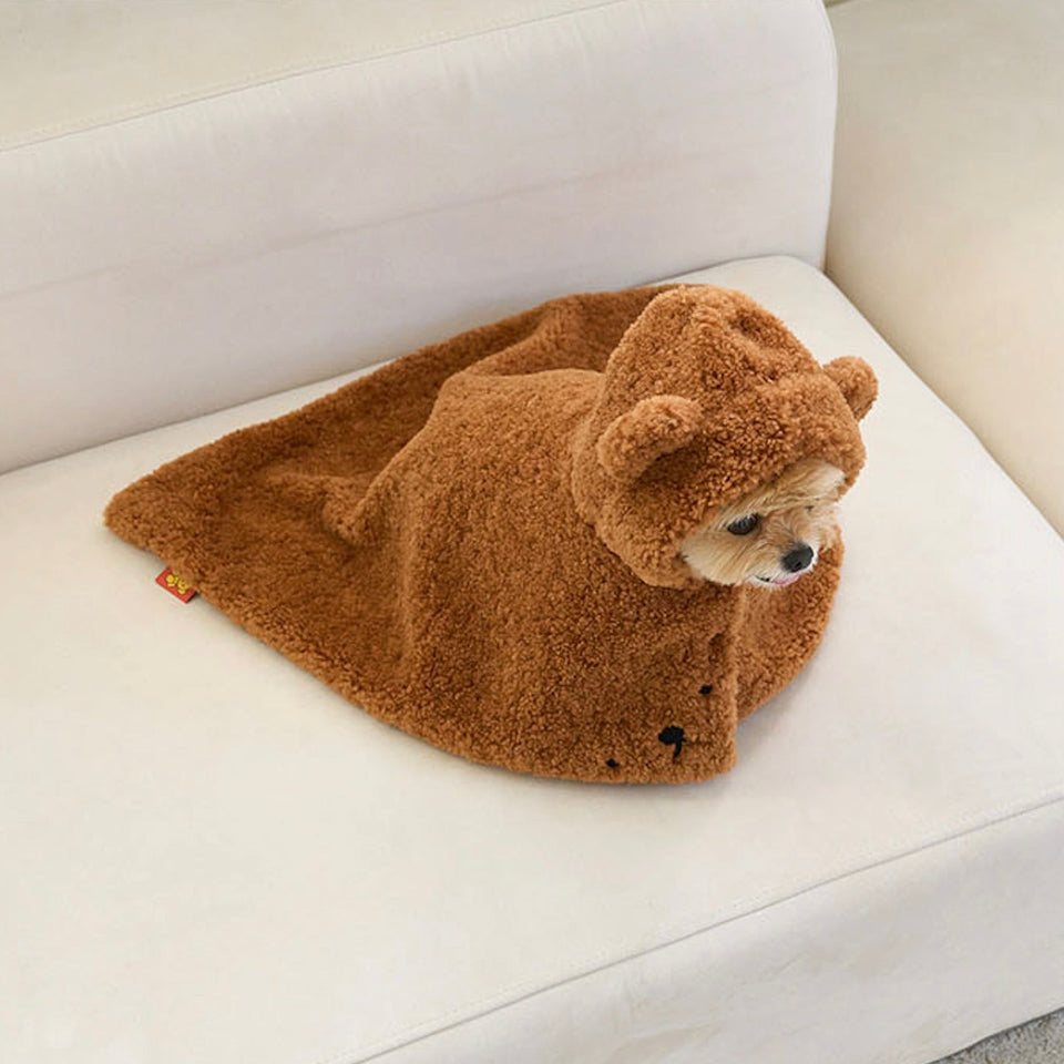 お家の中ではリラックスしてフードを被らずにケープとして、またはブランケットとして使用していただけます!