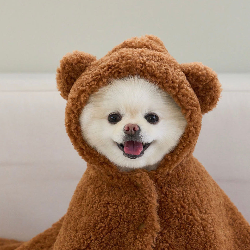 可愛いボリスの耳がついたフードを被れば屋外で使用しても冷たい風から愛犬を守ってくれ、見た目にもとても可愛いデザインです♡