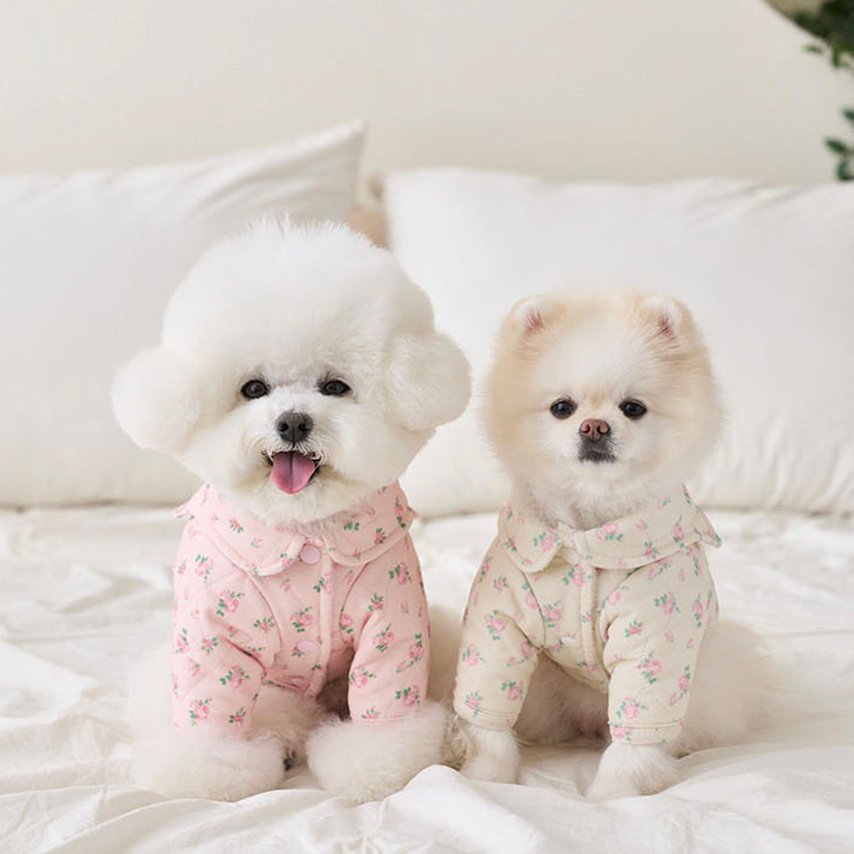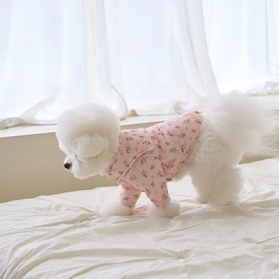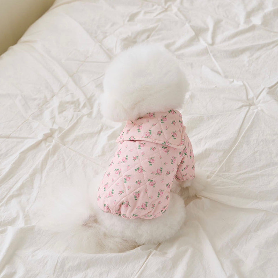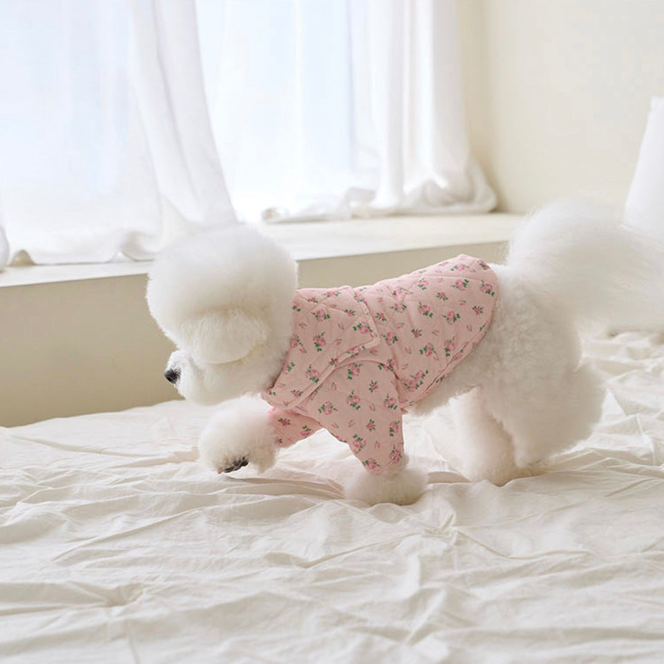 暖かなキルティングで厚みのある生地にフラワープリントが可愛いパディング!