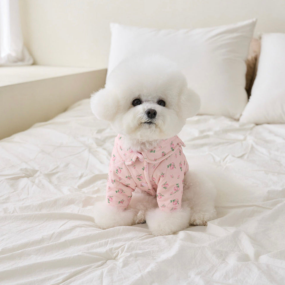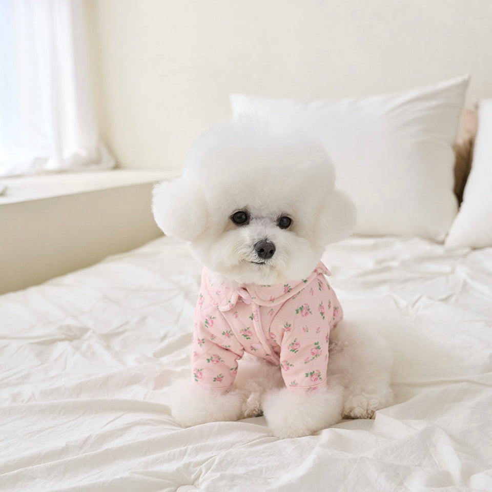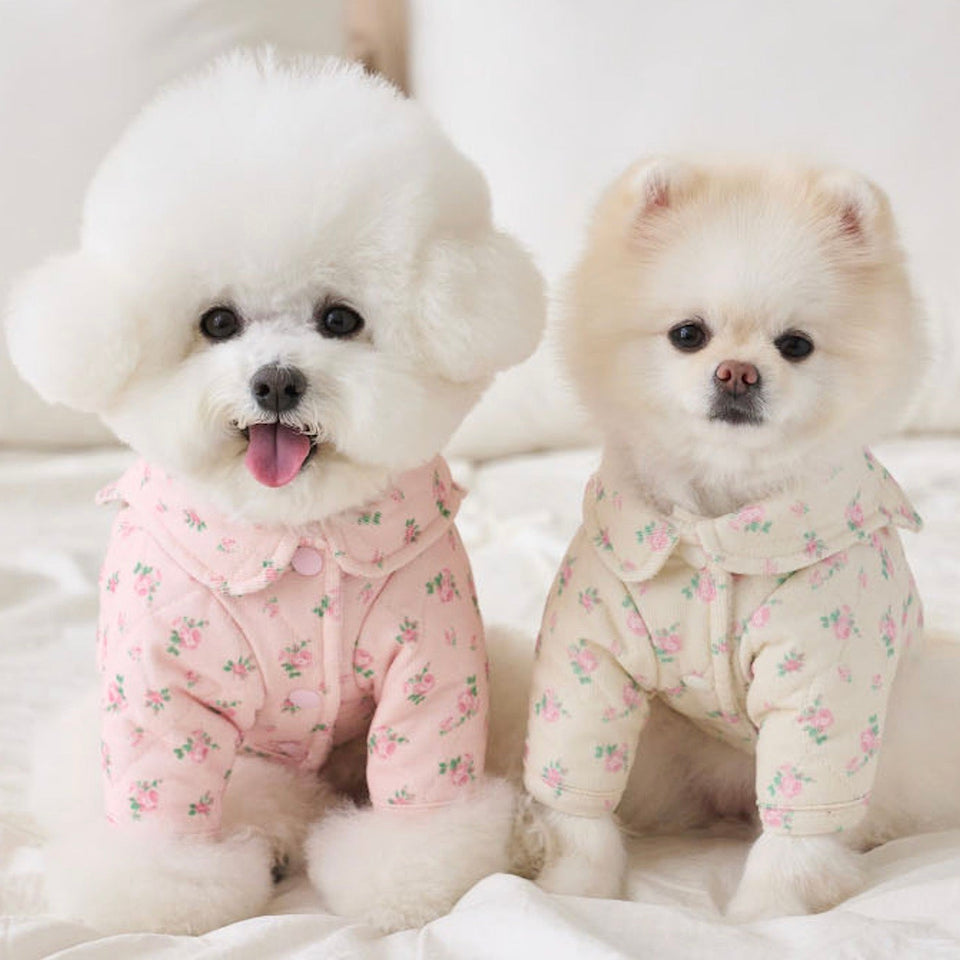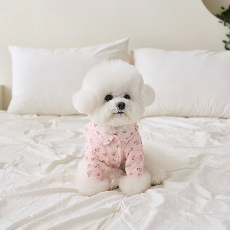 暖かなキルティングで厚みのある生地にフラワープリントが可愛いパディング!