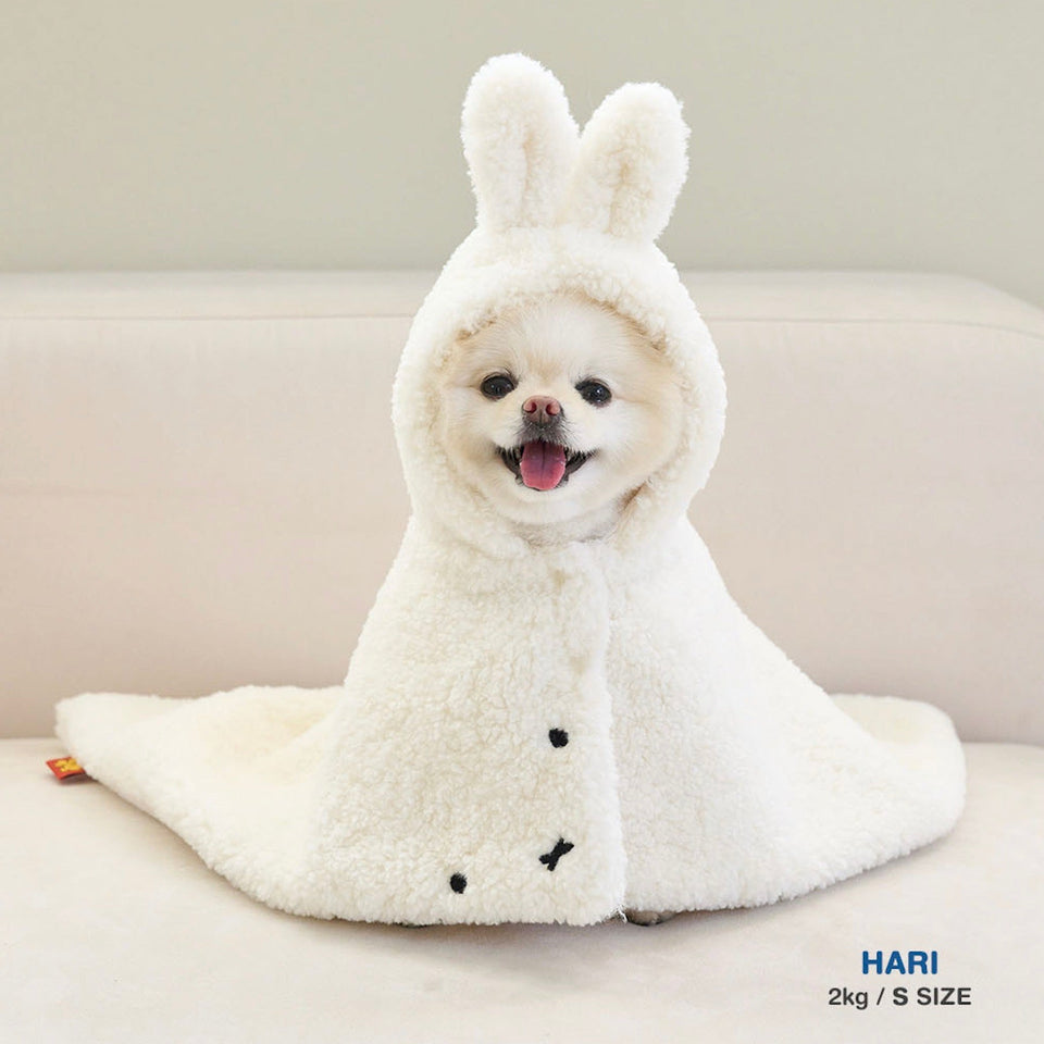 可愛いミッフィーの耳がついたフードを被れば屋外で使用しても冷たい風から愛犬を守ってくれ、見た目にもとても可愛いデザインです♡