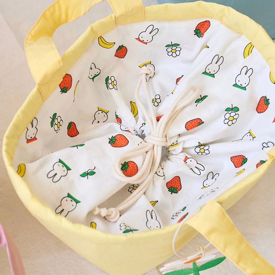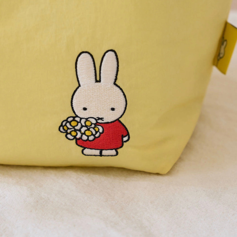 表地はナイロン100%でmiffyの刺繍がワンポイントでとてもシンプルで使いやすく、ポリエチレン100%の裏地はmiffyの総柄になっており、とっても可愛らしくテンションも上がるデザイン!
