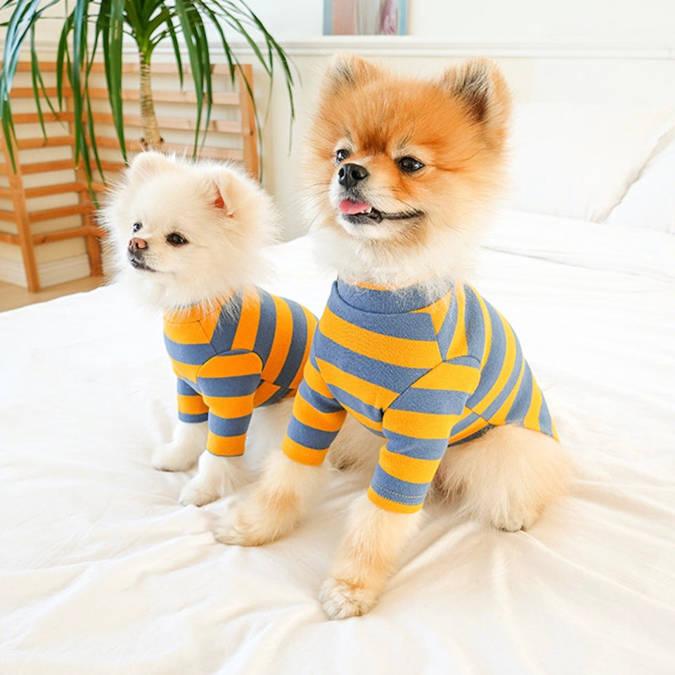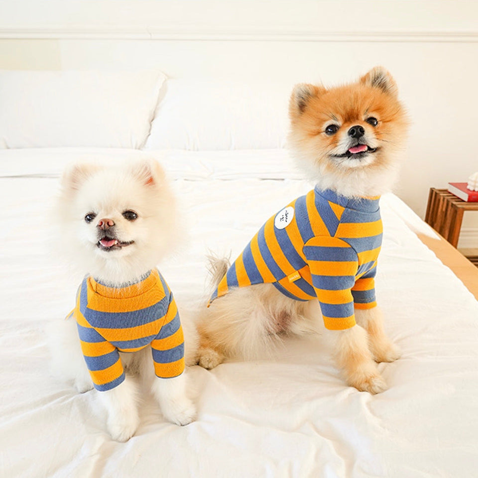 春夏らしい色の組み合わせと太めのボーダー柄が愛犬をより可愛く♡