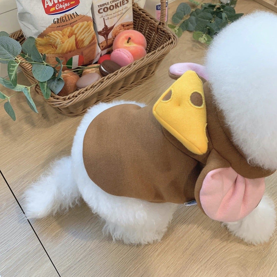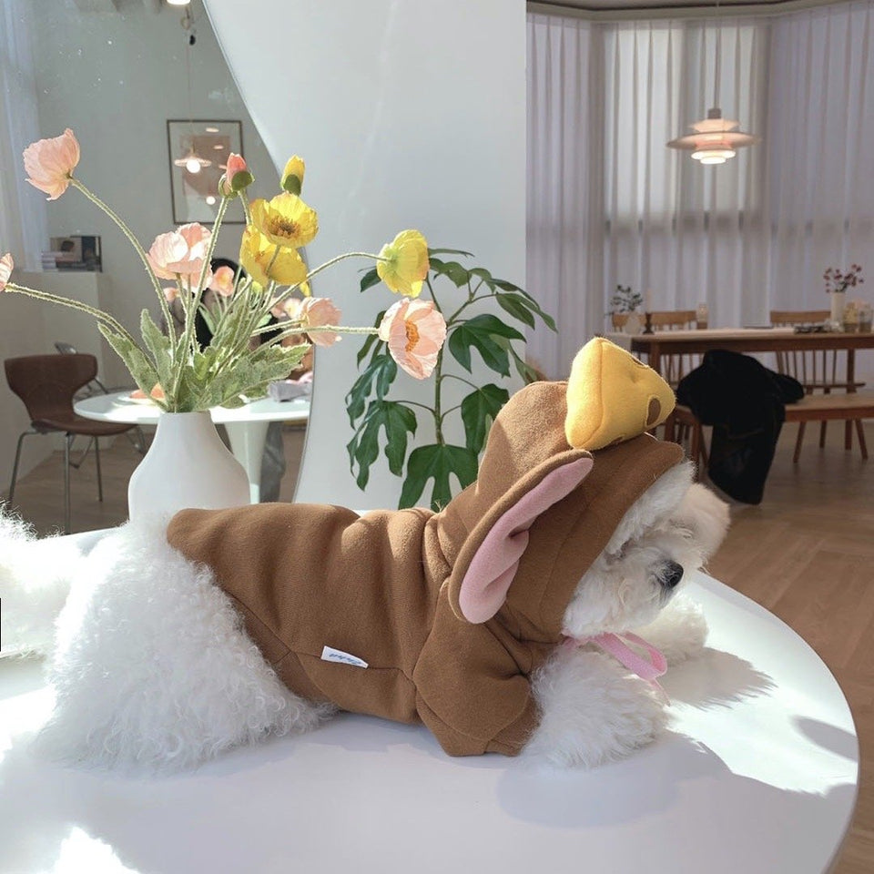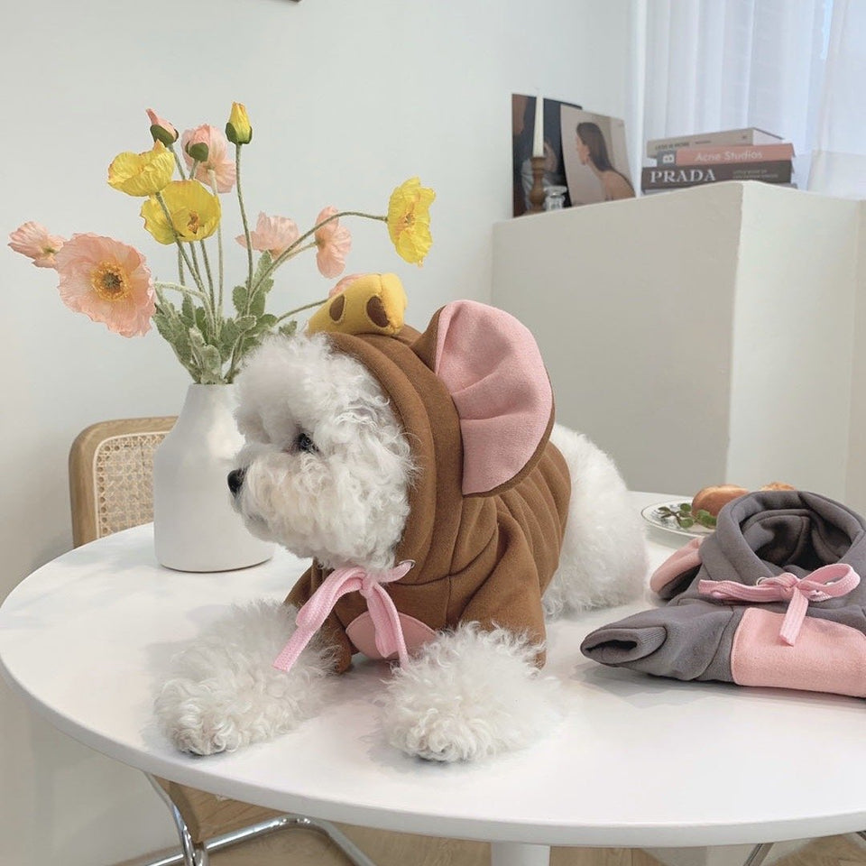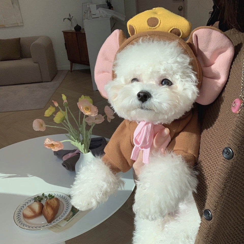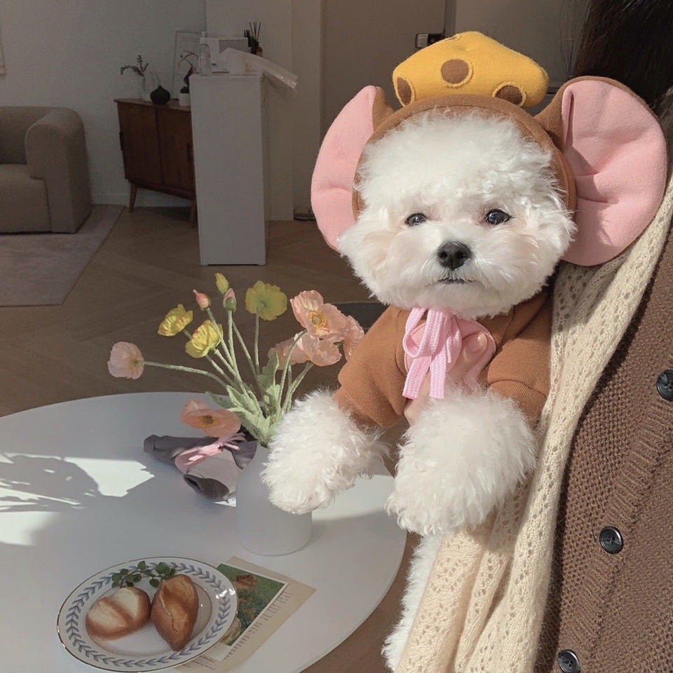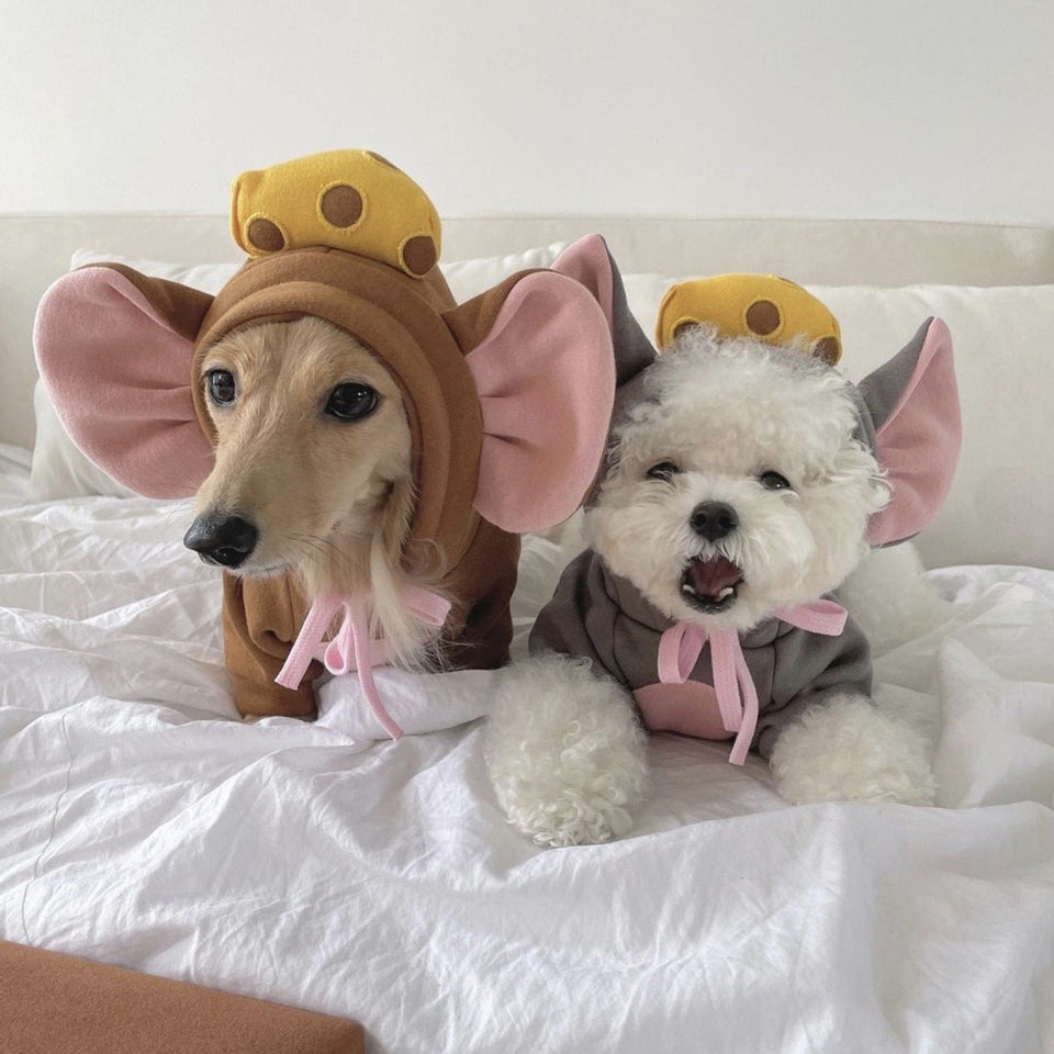 チーズが頭に乗ったネズミのキャラクターパーカーはチーズと耳つきのフードもお腹の部分の色が切り替わっている部分も首元のリボンもデザインの細部までがとってもキュート♡