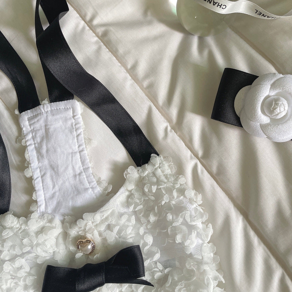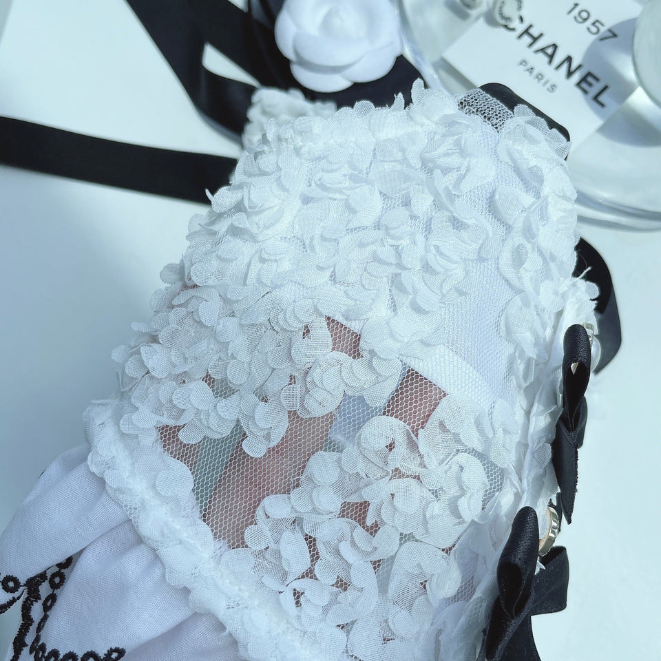 リボンやパールボタン、レース、刺繍などエレガンスな要素を全て詰め込んでいます!
