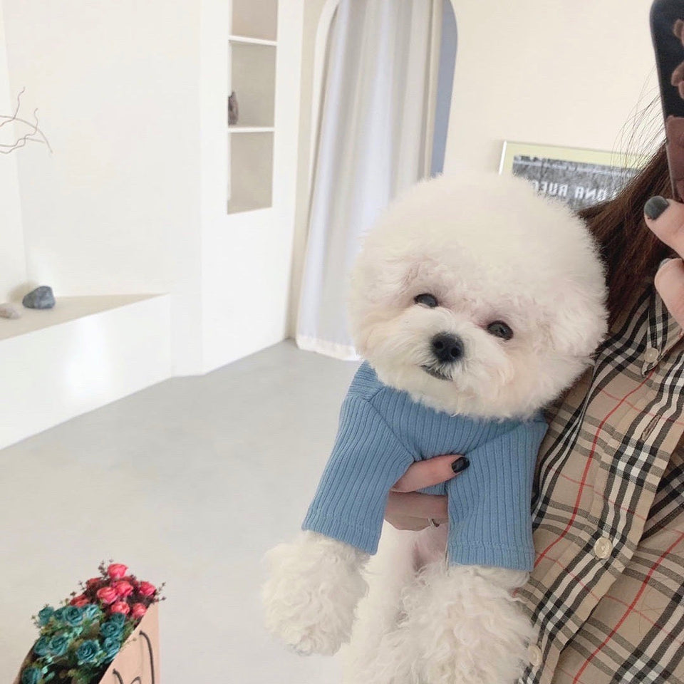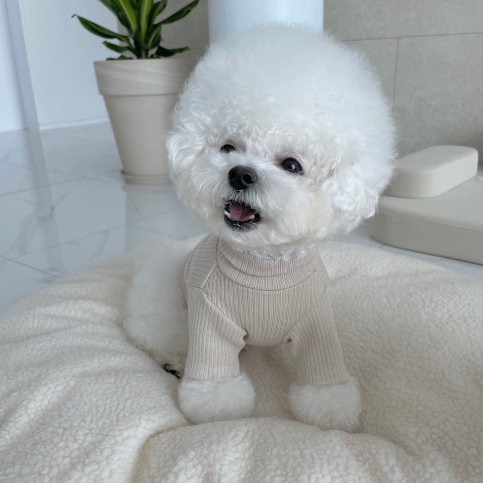 タートルネック部分は長くし過ぎず、一折してちょうどよくなるような長さで作られており、首の長くない愛犬にもぴったりの一枚です!