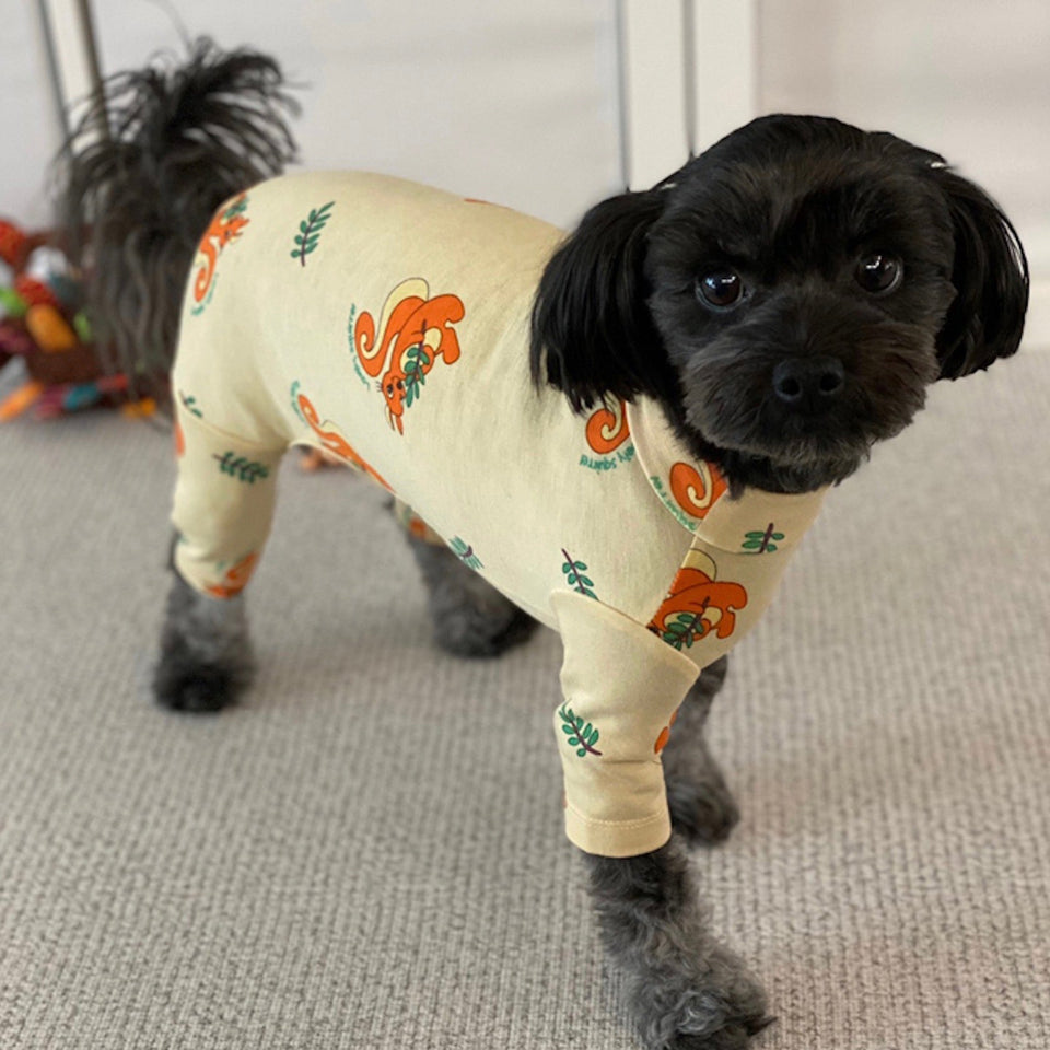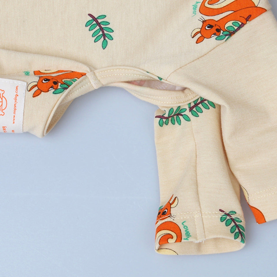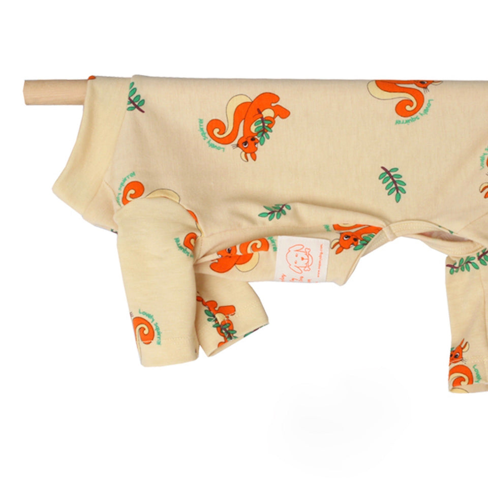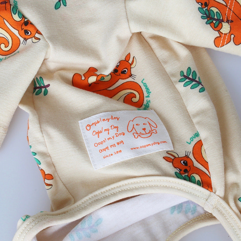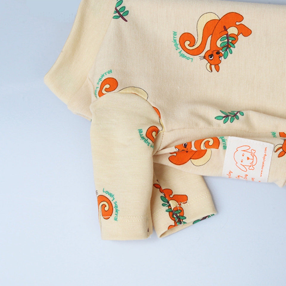 全体にプリントされたリスとリーフのプリントが可愛くアクセントになった着心地良いデザインです!