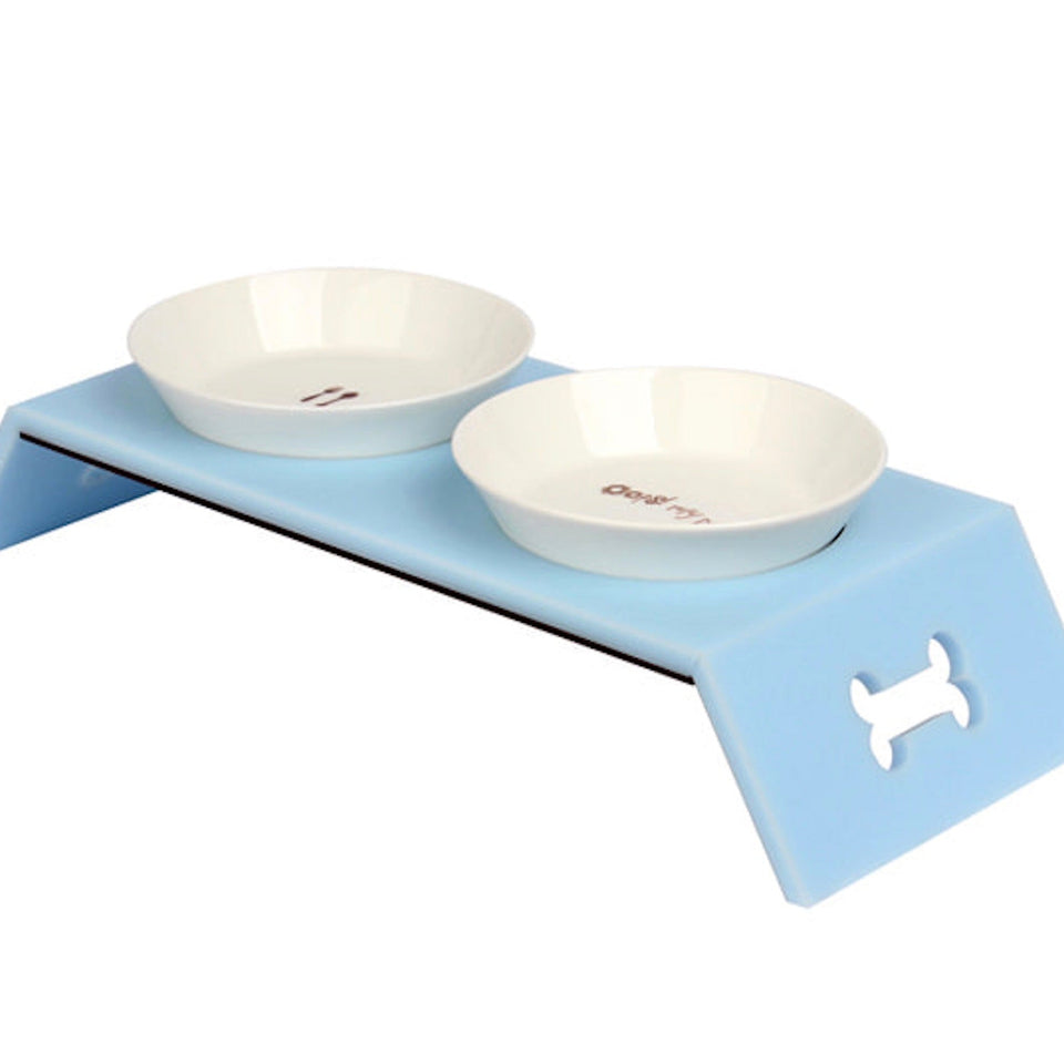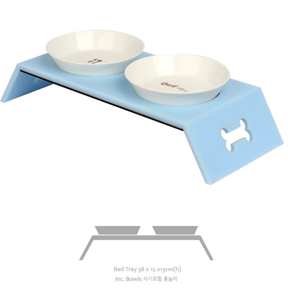 “ベッドトレイ”からインスピレーションを受けて誕生したBed Tray Blueは"OOPS! MY DOG"が独自開発した丈夫な素材のフードスタンドと高級ボーンチャイナ素材の食器2つセット。